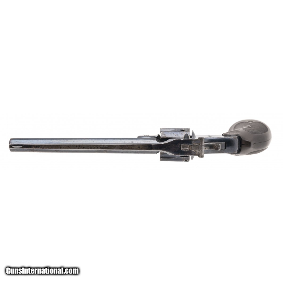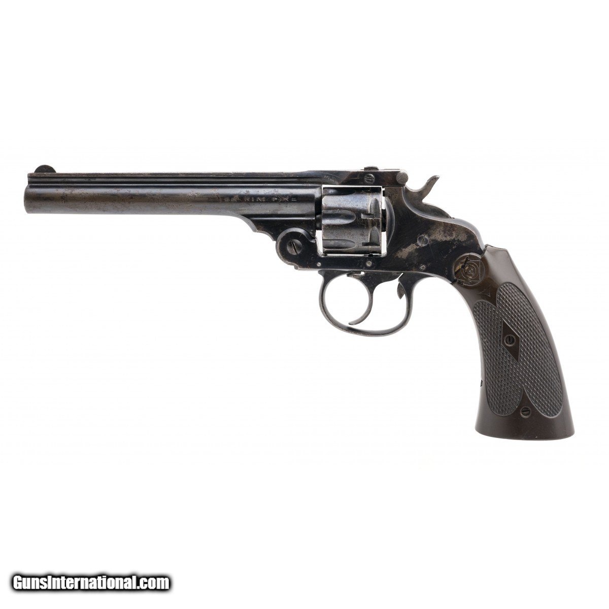 Description: " SN: 271188. Made before 1940 with a 7-shot cylinder chambered for the ""22 RIM FIRE"" cartridge, 5"" barrel and checkered plastic grips. Although there are spots of isolated oxidation on the frame, barrel & trigger, the gun carries its original factory finish across all metal parts. Consignment SOLD |