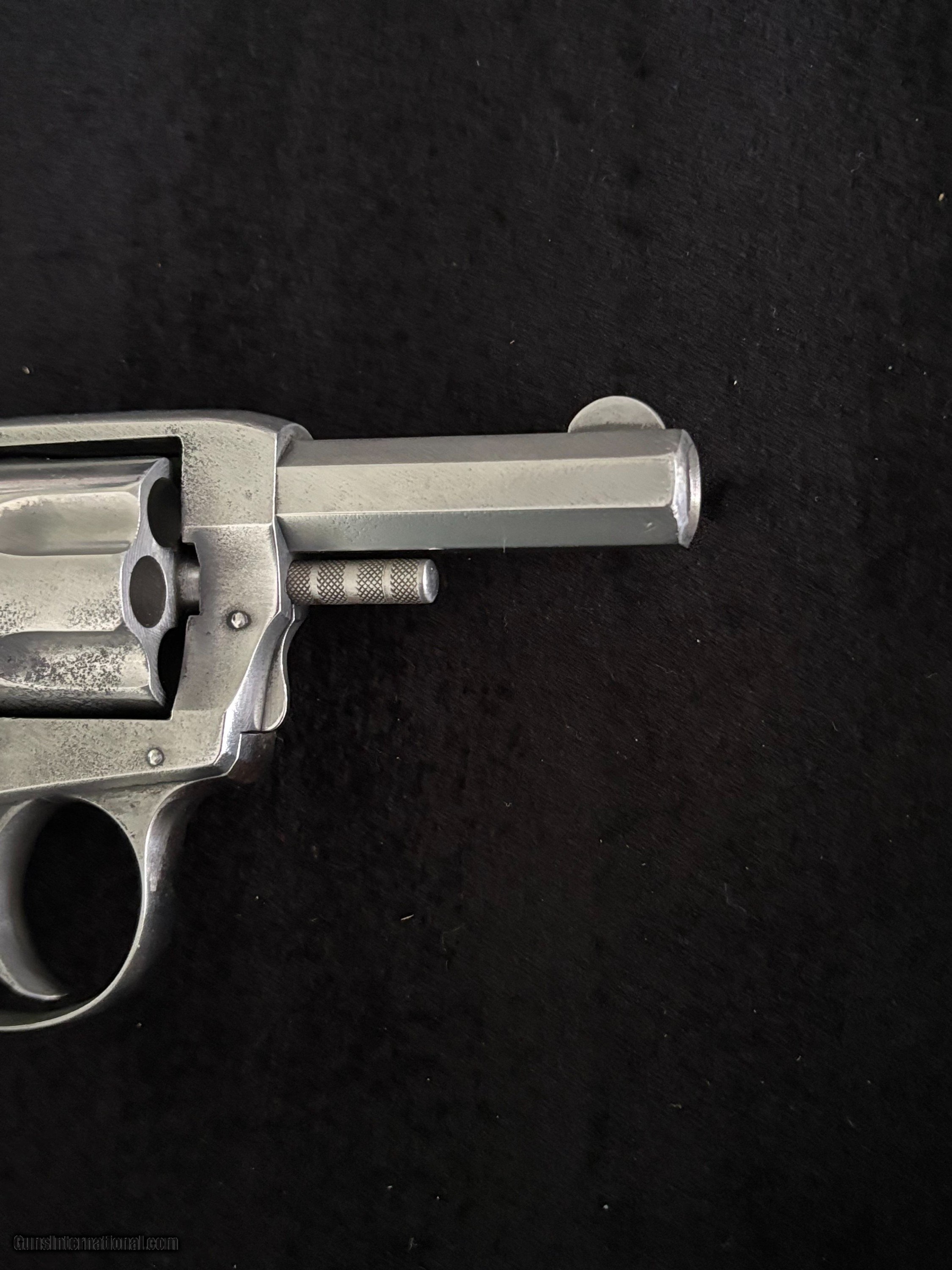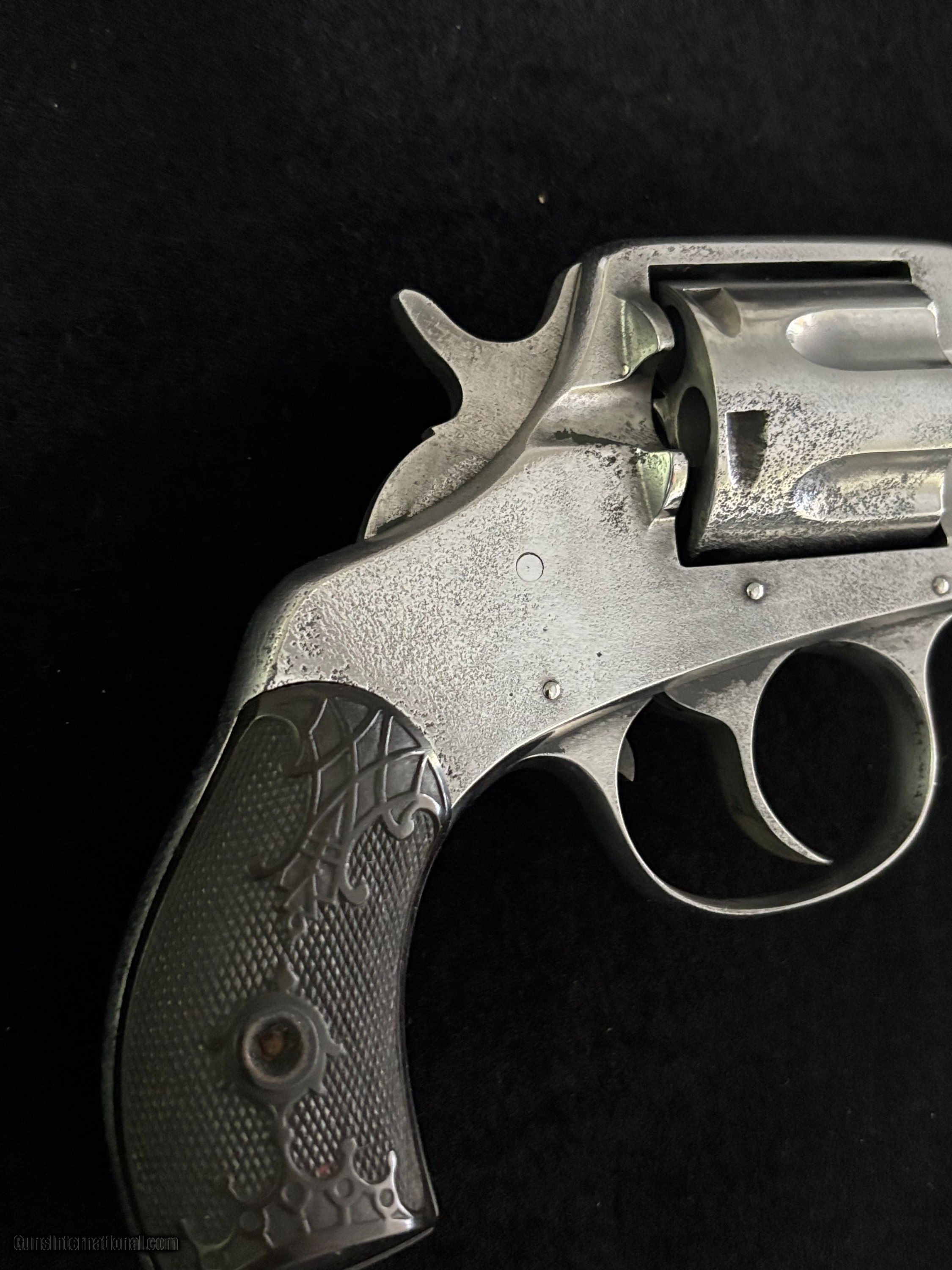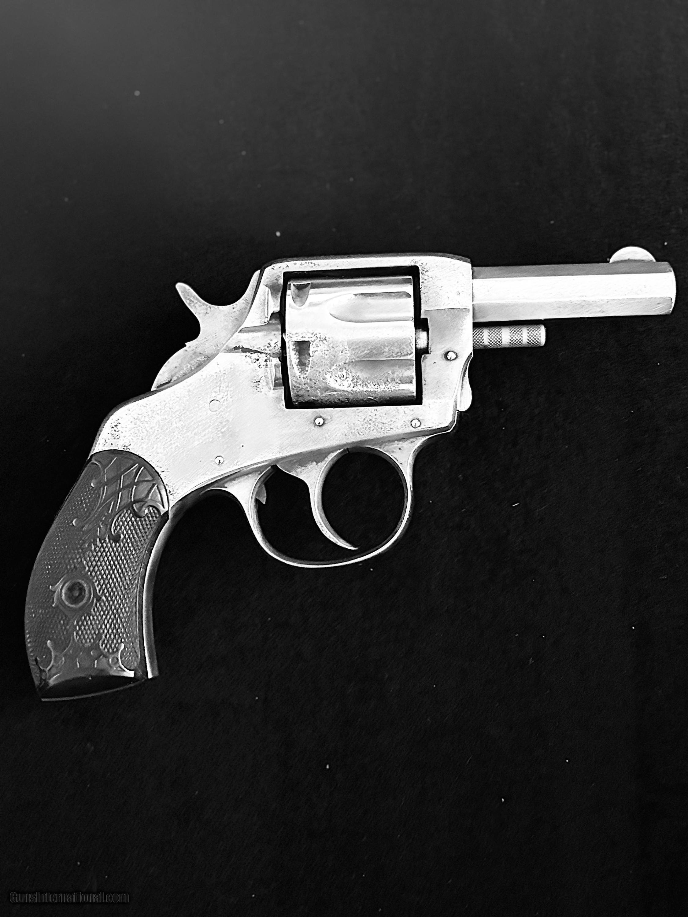 Description: H&R .32 S&W Double Action Top Break 1st Model Revolver. This is a very rare 1st model, 2nd variation, produced from 1888-1897. Serial #302 Looking for a classic piece of American firearms history? If you're looking for an addition to your Harrington & Richardson revolver collection, then this rare H&R .32 S&W Double Action Top Break 1st Model Revolver might just be what you're looking for. ANTIQUE H&R 1st model 2nd variation Revolver 6 shot .32 S&W Nickel finish 6 shot in .32 S&W. Trigger guard attached with thru pin in the rear and a screw in the front. Pull pin cylinder. Hard rubber grips. These were made for black powder cartridges. Top of Barrel marked: THE AMERICAN DOUBLE ACTION Condition: 2 ½” octagon barrel with a lightly frosted bore , very minor pitting from black powder use and still showing very nice rifling. The metal surfaces are still in good condition with most of the original nickel faded away with some very light freckling and pin-prick pitting in spots probably from staorage. Please judge from the photos. The original Hard rubber checkered grips rate excellent. Lock-up and timing appear to be good. Mechanically works very well in single and double action with a strong hammer spring. This is an antique and no FFL required. Just proof of age. Will ship USPS priority mail FREE SHIPPING included This gun is sold "as-is" as a collectible with no refund and no return. Payment can be made with bank check, postal money order, or personal check. If you prefer instant payment and shipping I can take venmo, Zelle or Cash App. please email or text me for account info. SOLD Antique: Yes Handgun Caliber: .32 S&W Long (.32 Colt New Police) Manufacturer: Harrington & Richardson Model: American Barrel Length: 3 |