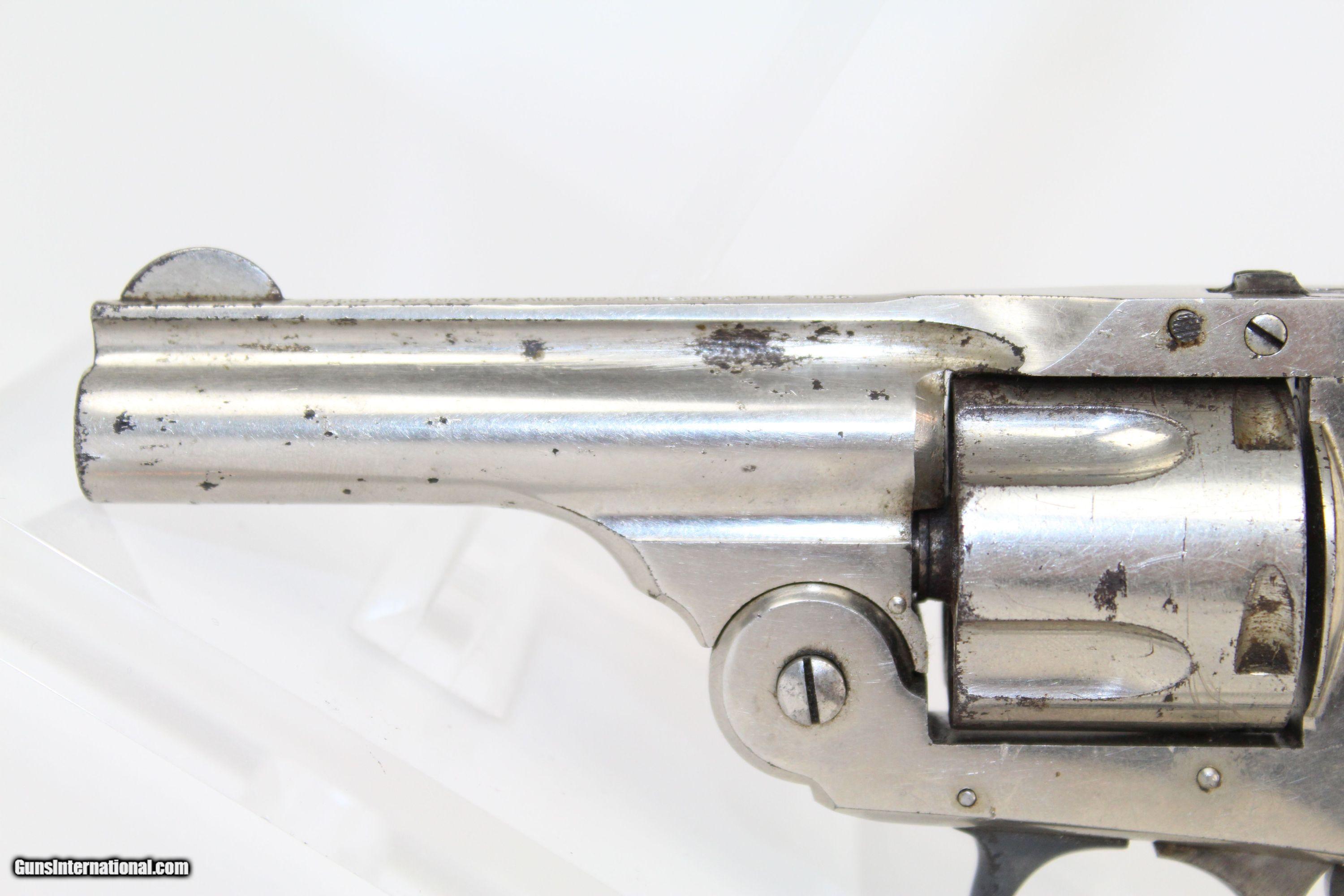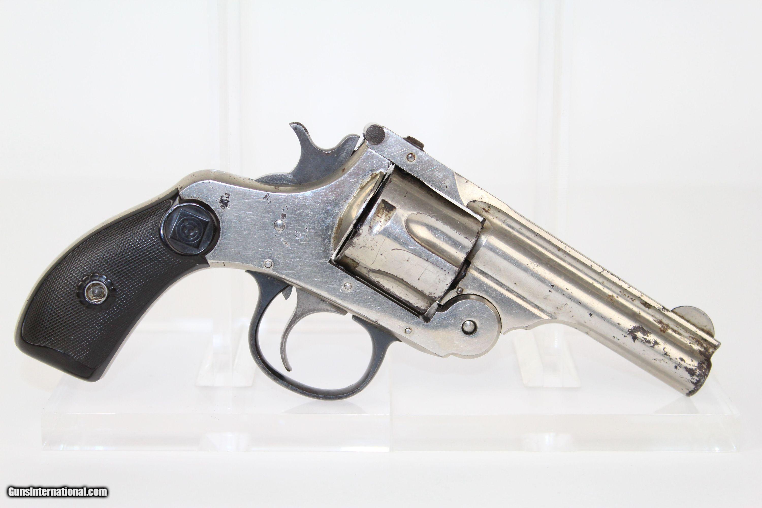 Description: C&R “HARRINGTON & RICHARDSON” Auto Eject Revolver Early 20th Century H&R +FREE SHIPPING & CC Here we present a Harrington & Richardson Automatic Ejector Top-Break Double Action Revolver in .38 S&W, made circa 1900 in Worcester, Massachusetts. This 5-shot, .38 S&W revolver would have been ideal to keep in a pocket or a small holster for self-defense. The overall condition is very good. The original nickel finish is 90%. The original blue finish on the trigger guard is 85%. The markings are clear. The serial numbers match. The original hard rubber grips bear the H&R trademark target and are in fine condition. The bore is dark with good rifling. The action is not functional as there is an issue in the interaction between hammer and trigger. This firearm is classified as a Curio & Relic. Barrel is 3-1/8 inches. Caliber: .38 S&W Overall condition as seen in photos. Very Fast. Very Safe. FREE SHIPPING. Will need to be sent to your local FFL or C&R licensee. This firearm is classified as a Curio & Relic. Guaranteed AUTHENTIC & Includes CERTIFICATE OF AUTHENTICITY. ancestryguns $325 #5493 SOLD Curio/Relic: Yes |