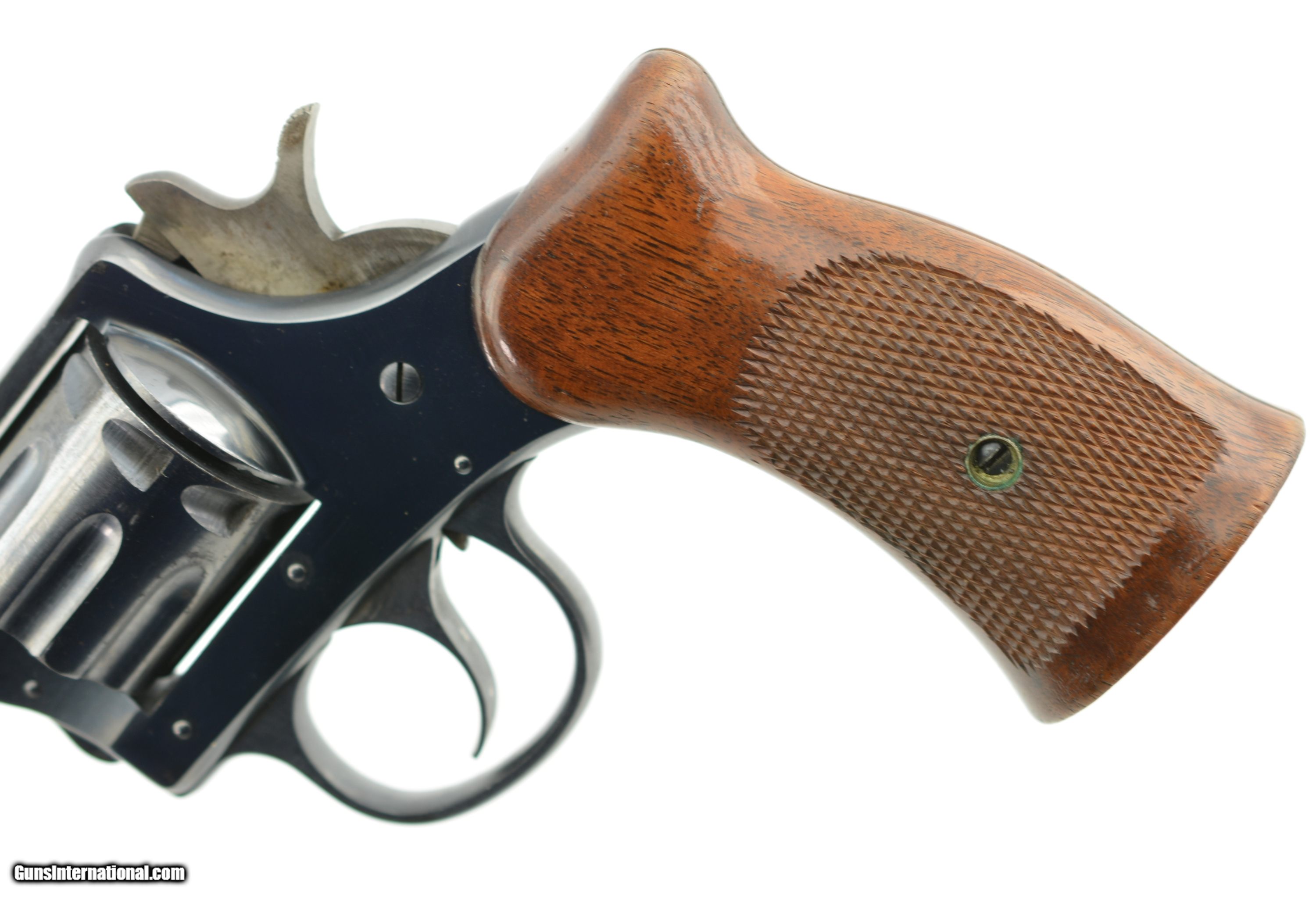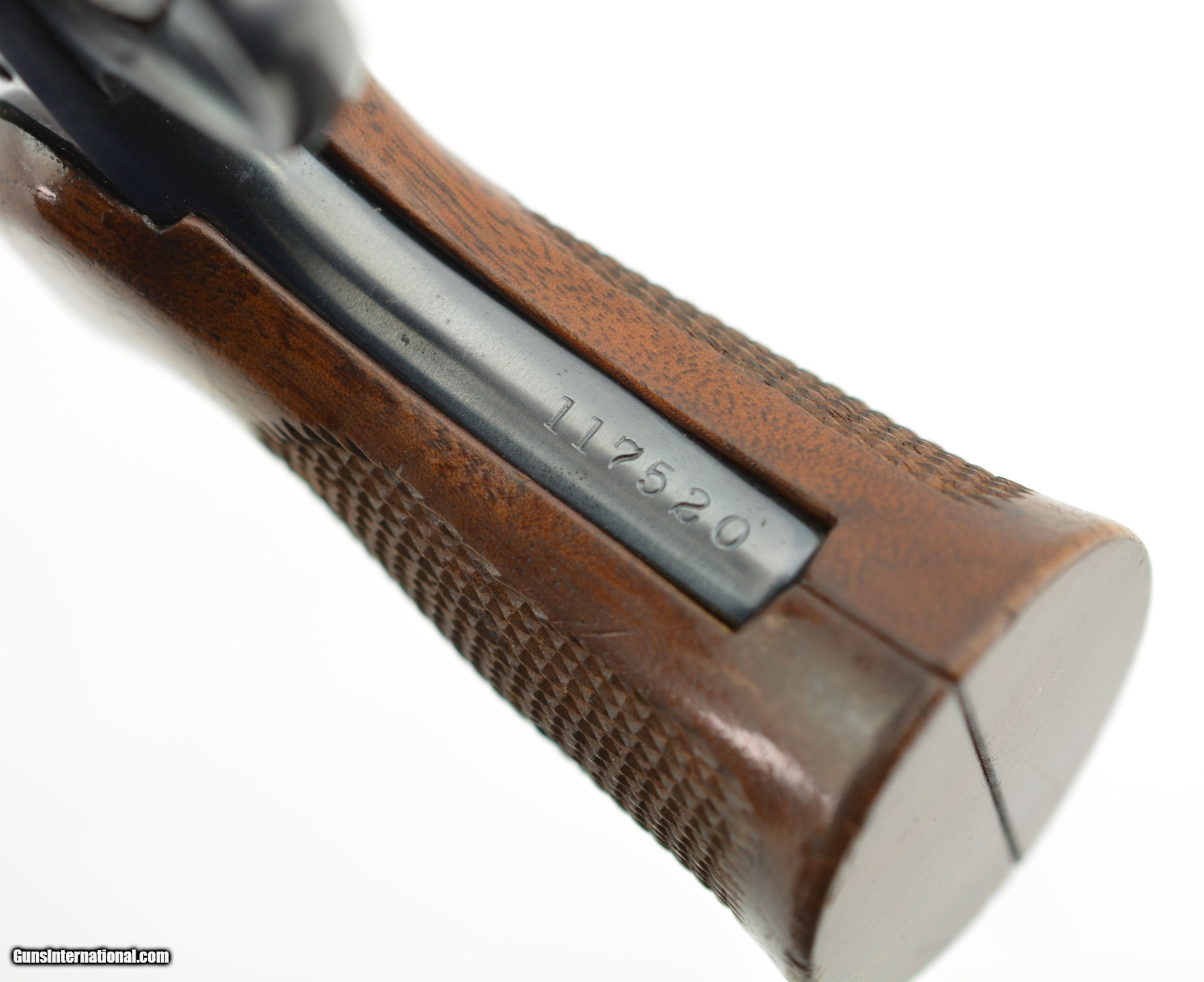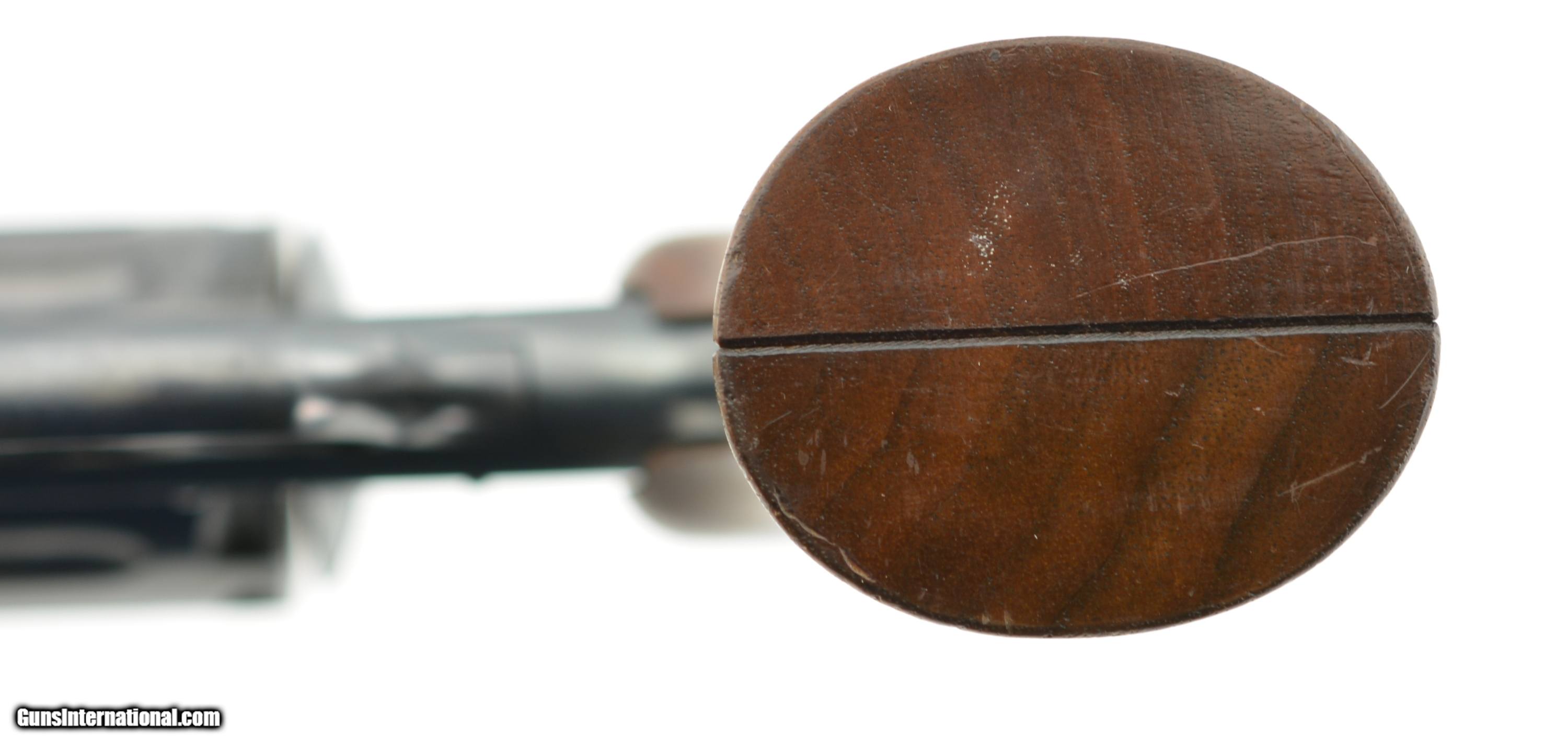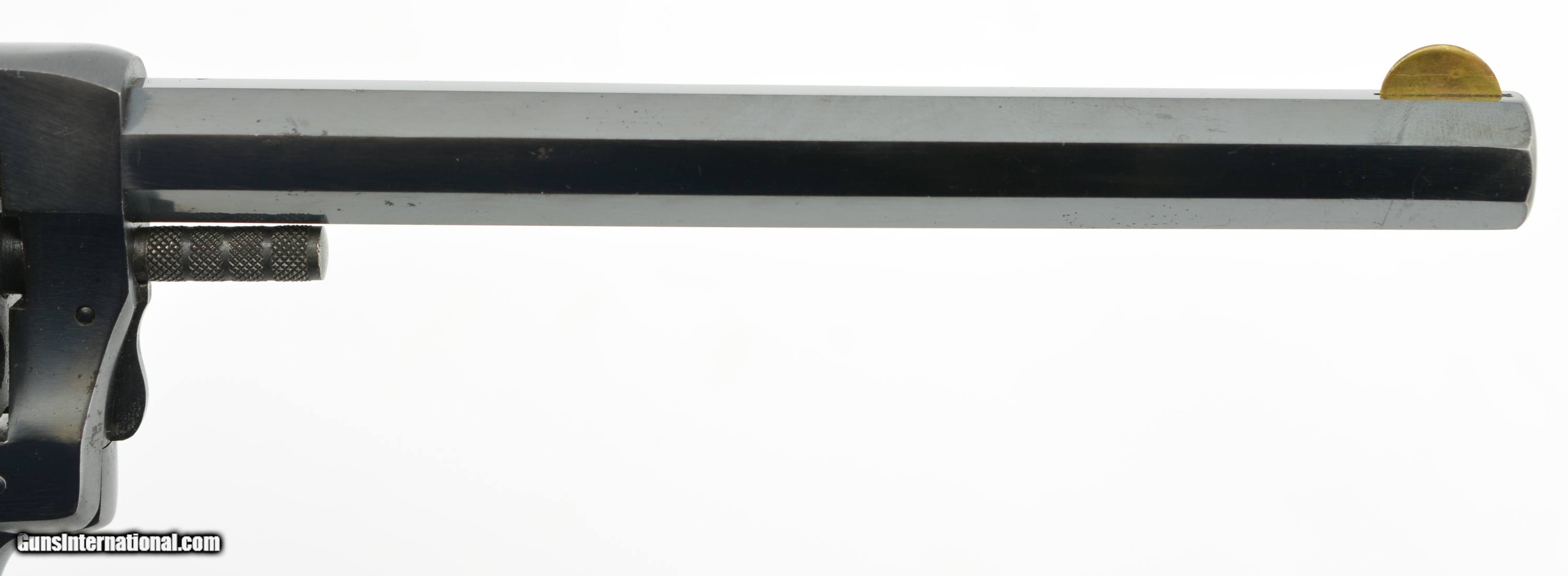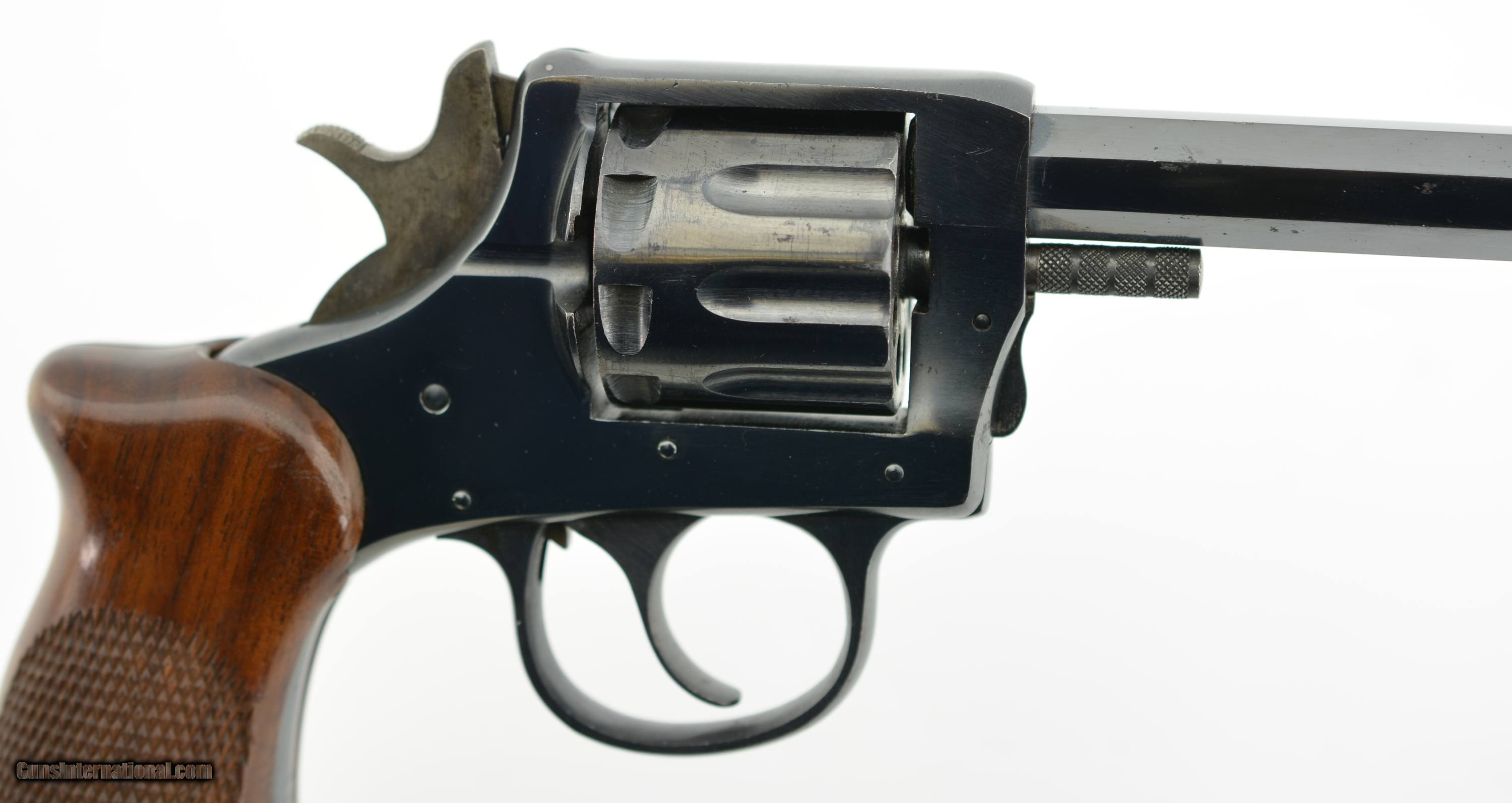Description: Serial #117520, 22 RF (S,L,LR), 6" octagon barrel with a bright excellent bore. This is an early Harrington & Richardson Model 922 1st model variation manufactured ffrom1927-1930 featuring a saw handled grip, gold plated front sight and gold-filled markings on the barrel advertised as being part of H&R's “Gold Front Sight Line." This early specimen is serial numbered lower that Bill Goforth has listed #125270 as the earliest known number in his H&R Arms Co. book page 212. The metal surfaces of this handsome revolver retain about 98% original bright blue showing just a few tiny freckles along the barrel and cylinder along with a couple other minor handling marks. The hammer shows somewhat muted smoky case-hardening and all markings remain intact and crisp, they show a gold-tone fill and the front sight blade is also gold-washed. The checkered walnut “saw handle" grips remain in excellent condition showing some areas of slightly worn finish along the edges, they are stamp-numbered “727" and their fit to the frame is excellent. An excellent, very early model 922 that would be hard to improve upon and will be an outstanding addition for the advanced H&R collector. FFL or C&R SOLD Curio/Relic: Yes Manufacturer: H&R Model: 922 Caliber Info: .22 LR Gauge Info: .22 LR |