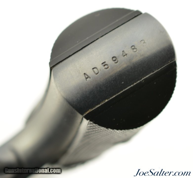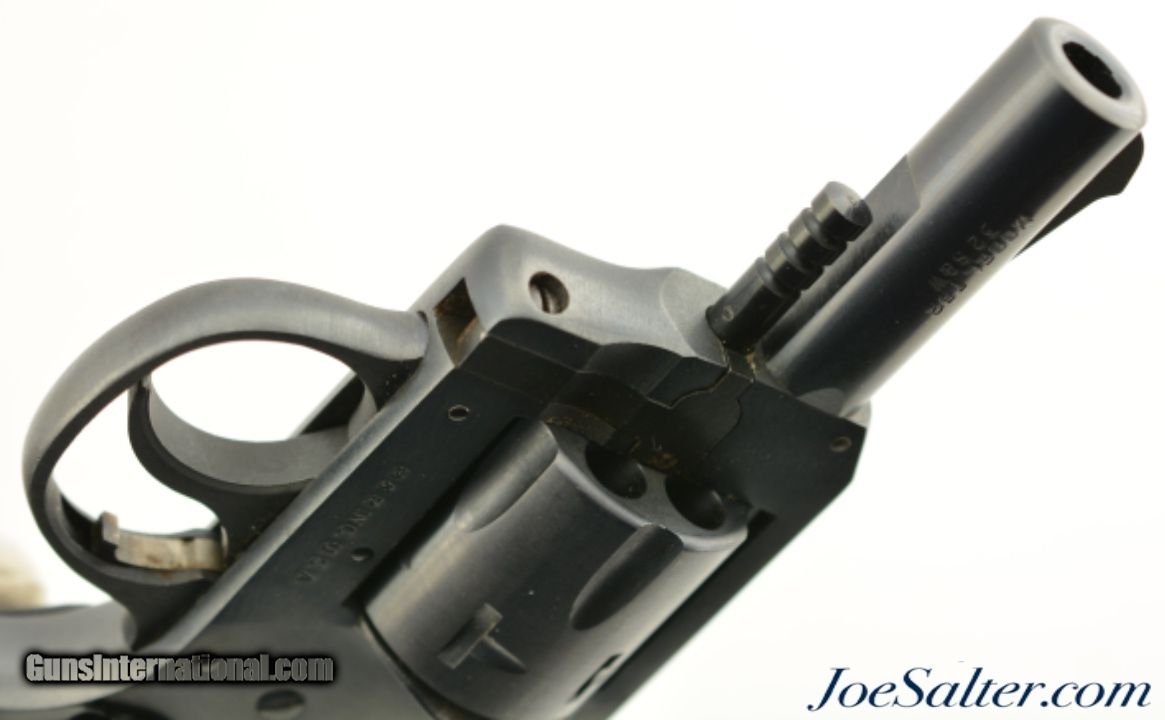 Description: Serial #AD59483, .32 S&W, 2 ?? inch barrel with a bright, excellent bore. This is the 4th Variation of the Harrington & Richardson Model 732 "Guardsman" revolver. Introduced in 1958 as a low cost, solid frame gun with a swing out cylinder this late 4th version was produced until 1973 when the second model was introduced with the new safety bar transfer system. In excellent condition it retains virtually all, 99% plus original blue finish on the barrel, frame and cylinder. The black two-piece Cycolac plastic grips are likewise excellent. The revolver does not appear to have seen much if any use and will make a great item for the H&R collector. FFL or C&R SOLD |