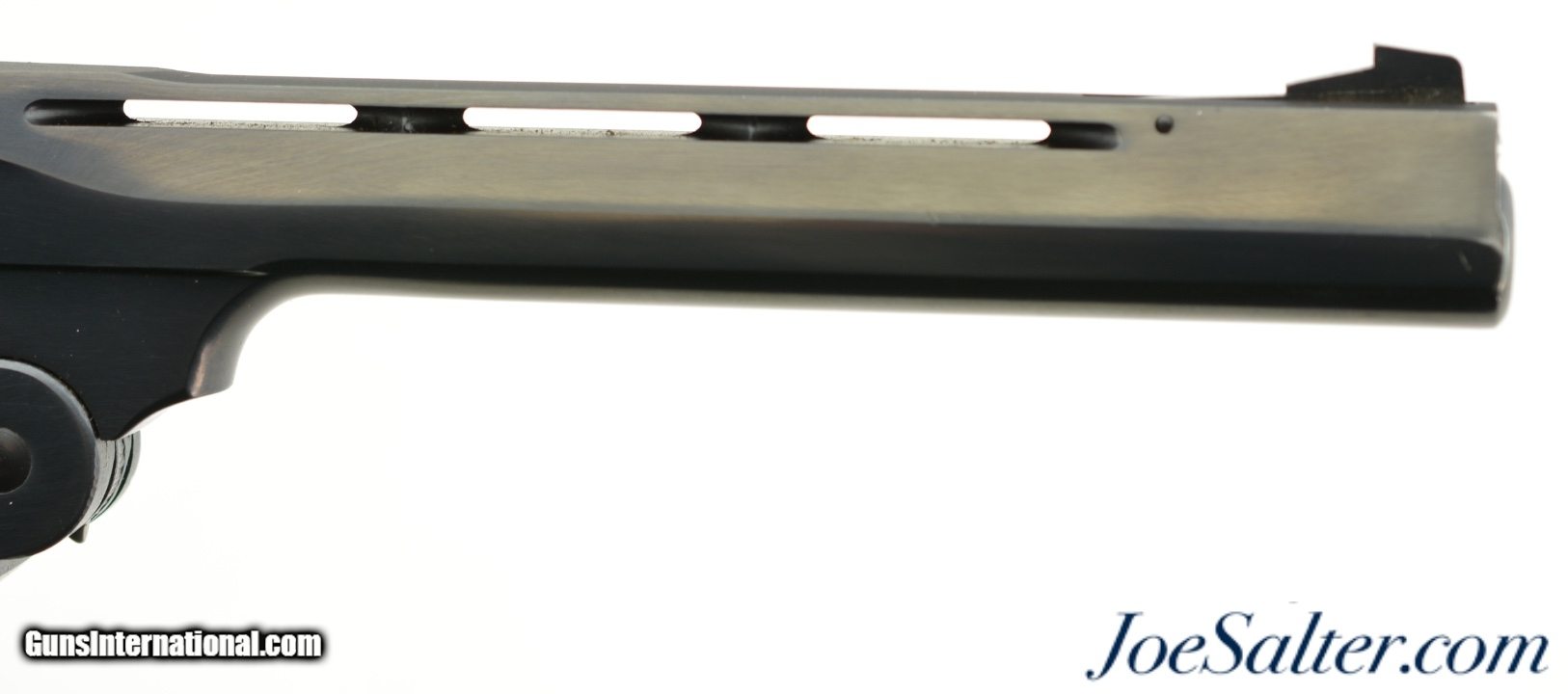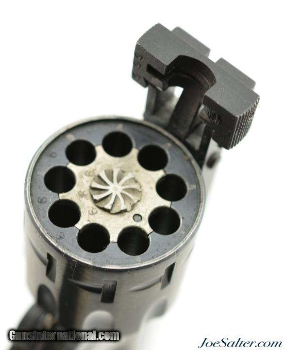 Description: Serial #AP146666, .22 LR, 6 inch vent ribbed barrel with a bright, excellent bore. This is the Harrington & Richardson Model 999 top break 3rd Model 1st variation "SPORTSMAN" revolver built in 1976. The classic H&R 9 shot revolver is in excellent plus condition retaining virtually all, 98-99% of the original blue finish on the barrel, frame and cylinder with a hint of wear at the muzzle and along the cylinder top edge. The original H&R grips are likewise excellent with minor storage and handling marks. It locks up tight and functions properly. An excellent example of a 3rd model with the improved transfer bar system and adjustable front and rear target sights. FFL SOLD |