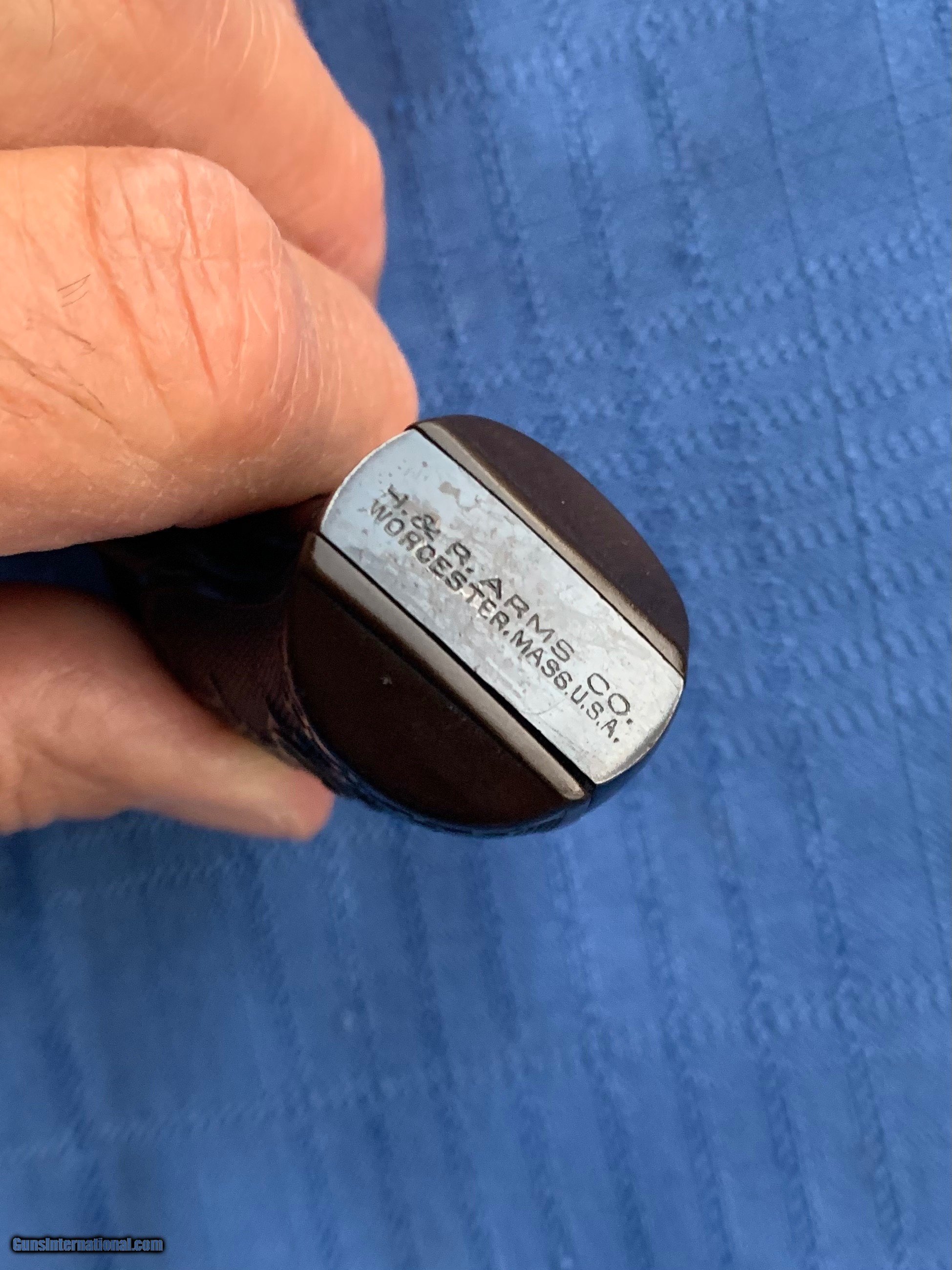 Description: Here's a Rare Bird ! H&R Bicycle Gun . Rare 22 caliber. 1" barrel . All of its Factory Original Blue Finish remaining. Excellent Example ! Bore and mechanics are in excellent condition. Gun locks up tight and is in excellent working Condition. Please review my photos and please email me with any questions ? 3 day inspection as allways! Thank you for looking, Little Jo SOLD Antique: Yes Handgun Caliber: .22 Short Manufacturer: H&R Model: 1st Model Bicycle Gun Barrel Length: 1” |