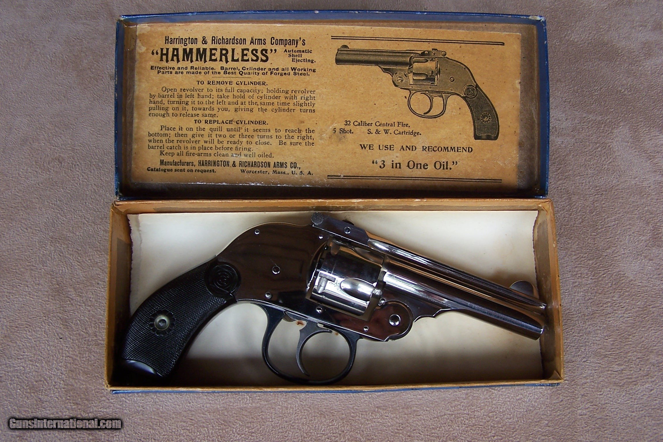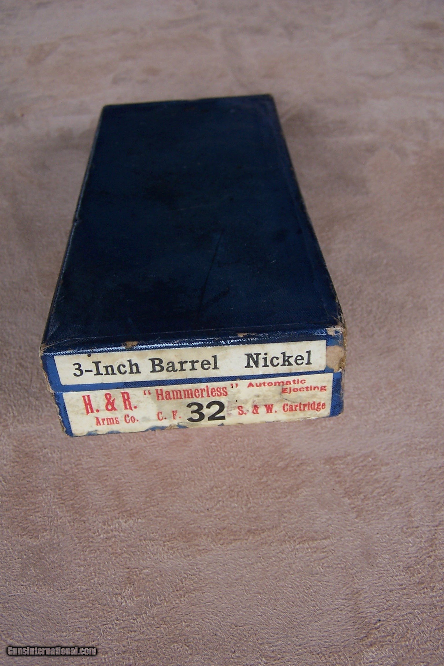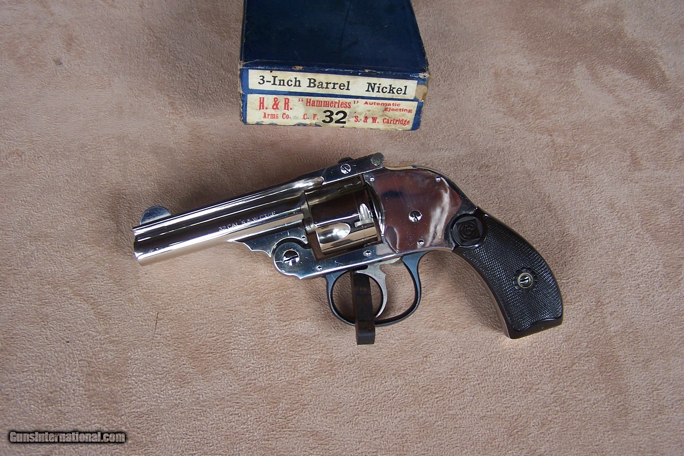 H&R 3” Nickel Hammerless .32 S&W Top Break Revolver with the Original Box in 99% Condition, Harrington & Richardson
