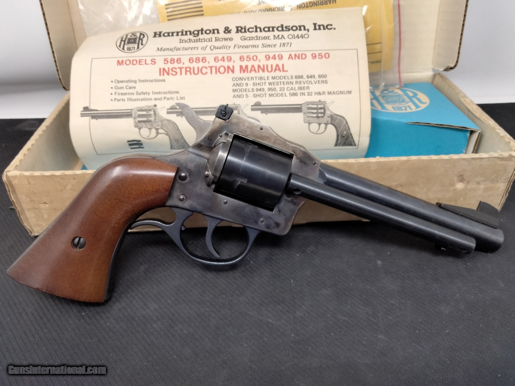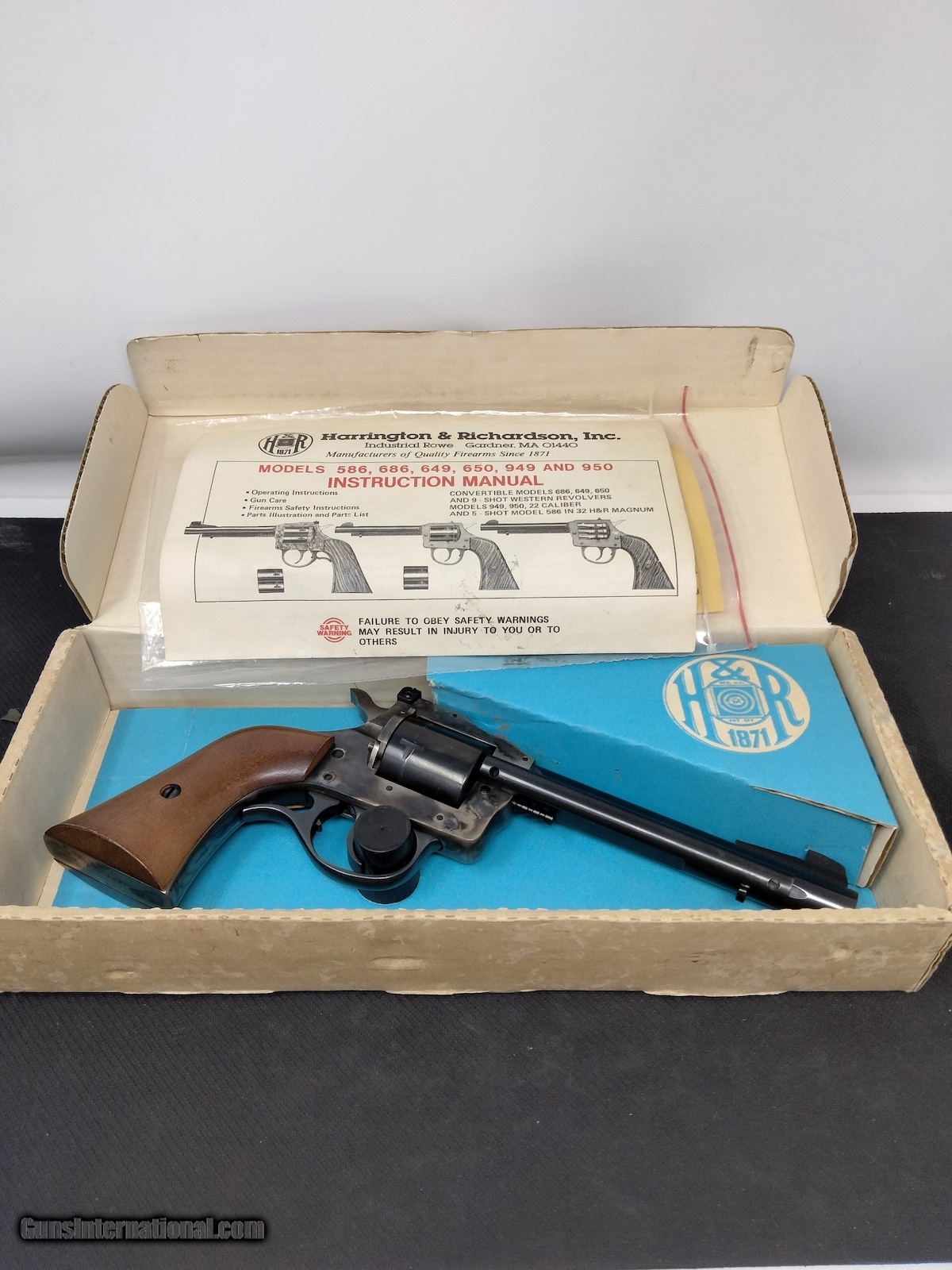 Description: Guns Listing ID: 582368 BEAUTIFUL OLD .32 H&R MAG IN ORIGINAL BOX WITH PAPER WORK SOLD Manufacturer: H&R Model: 586 Caliber Info: .32 H&R MAG Condition: Used - Non-Certified Barrels: 5.5 BARREL Finish: BLUE AND BLACK |