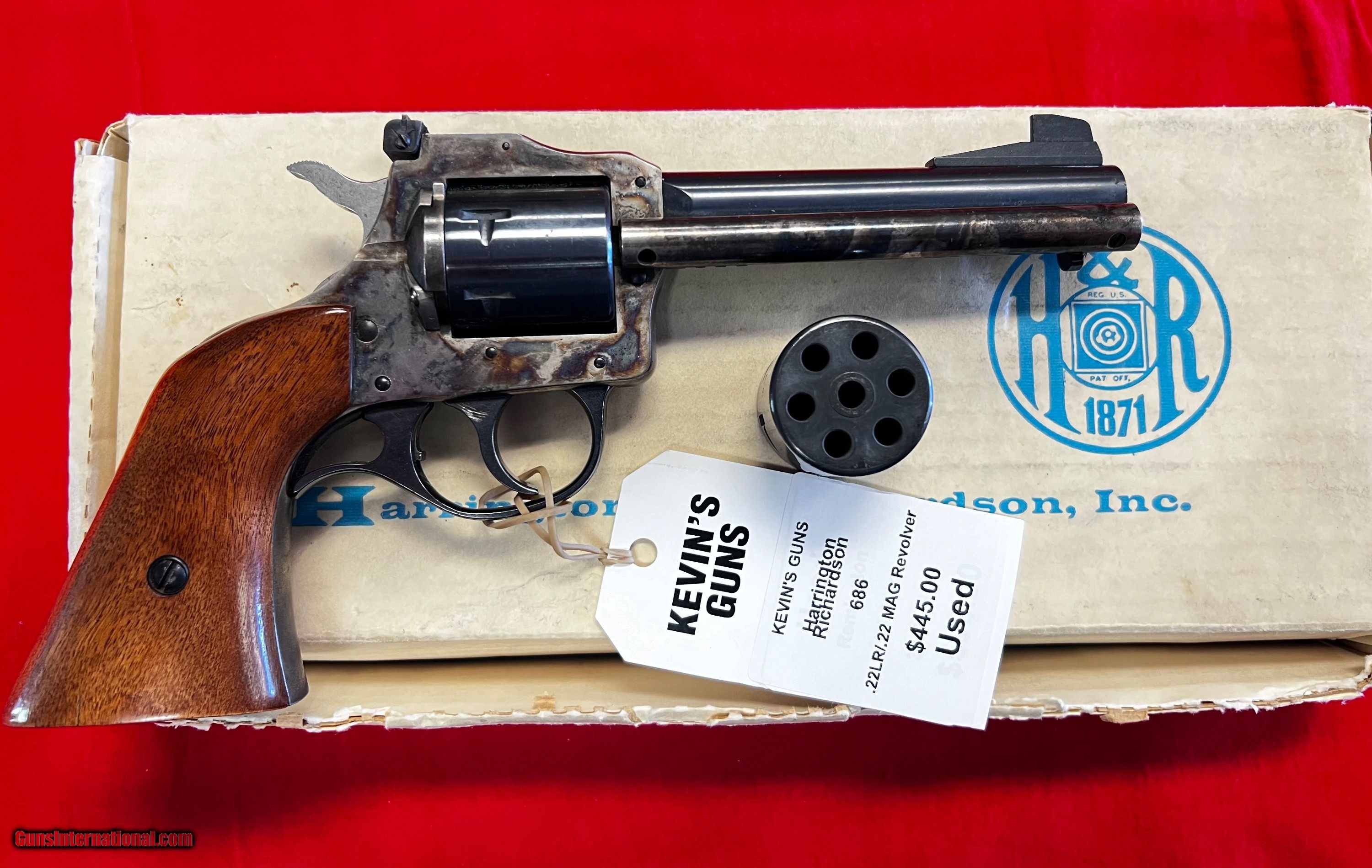 Description: Very nice H&R 686 .22/.22 mag revolver case hardened in factory box with period holster SOLD |