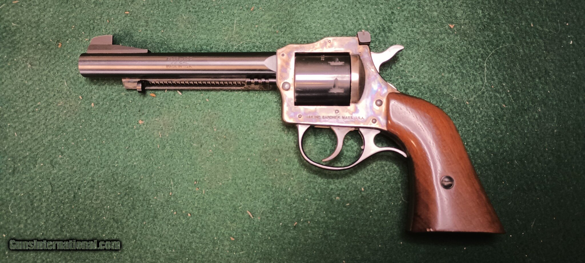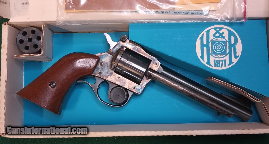 Description: Guns Listing ID: 304145 This beautiful Harrington & Richardson 686 has a 5.5\" barrel and comes with both 22LR and 22WMR cylinders. These cylinders holds 6 rounds each. Gun is in excellent condition in the original box with paperwork. SOLD Manufacturer: H&R Model: 686 Combo Caliber Info: .22LR/.22MAG Condition: Used - Non-Certified Barrels: 5.5 BARREL Action: REVOLVER Finish: CASE + HARDENED Weight: not specified |