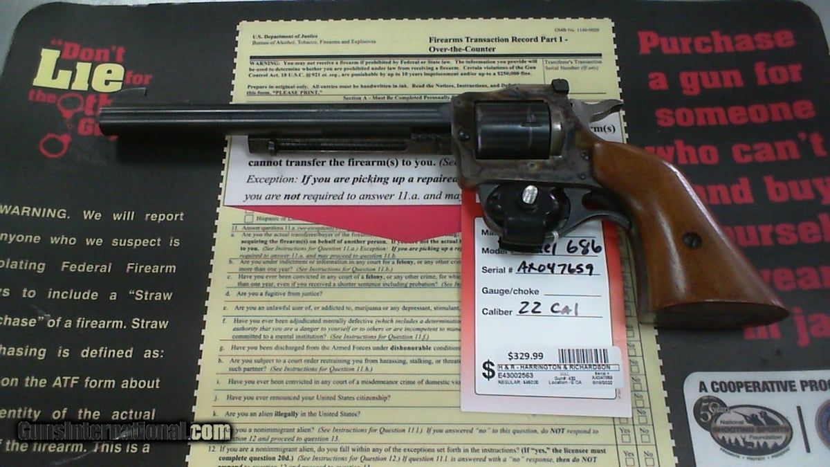 Description: Guns Listing ID: 603161 Lightly used H&R 686 .22 Cal SOLD Manufacturer: H&R Model: 686 Combo Caliber Info: 22 CAL Condition: Used - Non-Certified Barrels: 7 BARREL Finish: BLUE STEEL/BROWN LAMINATE |