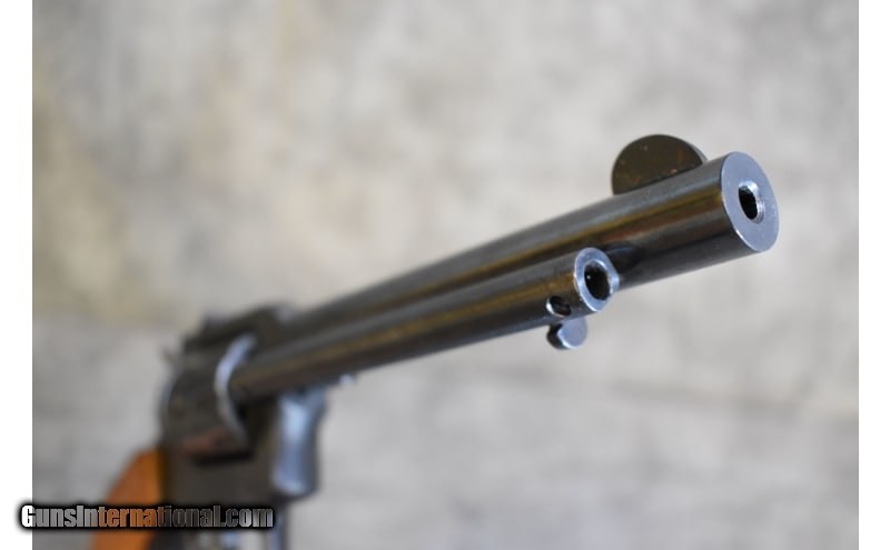 Description: This is an H&R Model 949 chambered in .22 LR. This gun is in good condition. Has some finish wear and light rust on the front sight post. The tab on the ejection port lever is broken off. .22 Long Rifle SOLD Chambers: .22 Long Rifle Metal Condition: Good Wood Condition: Great Bore Condition: Great Barrels: 5.5" Barrel Triggers: Single Action Weight: 2 lbs Item Location: Clarksville, IN |