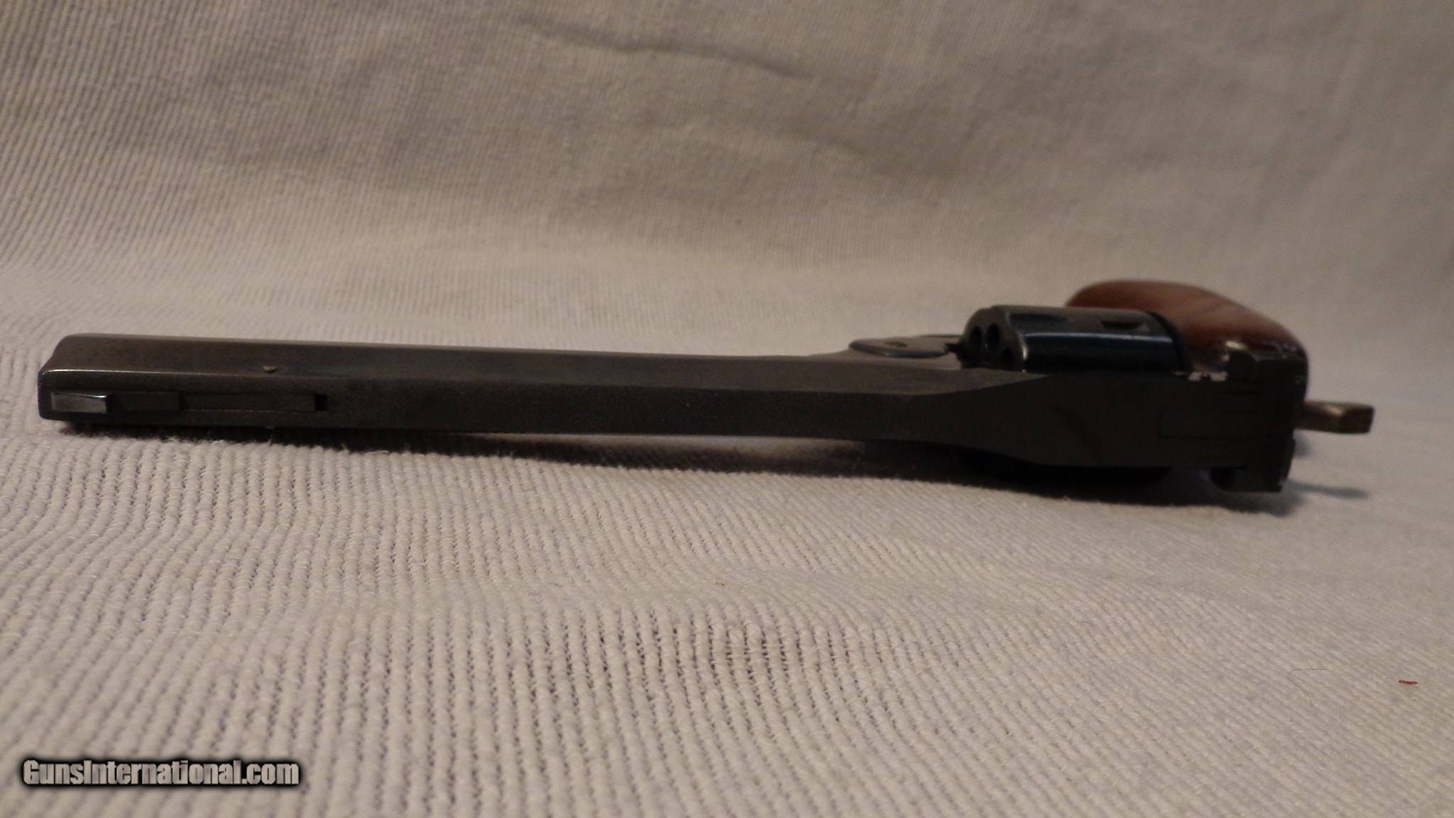 Description: Guns Listing ID: 714201 This revolver is in very good condition overall showing some light surface rust on the barrel and one small chip on the bottom right side of the grip. SOLD Manufacturer: H&R Model: 999 SPORTSMAN Caliber Info: 22 LR Condition: Used - Non-Certified Barrels: 6 BARREL Finish: BLUED |