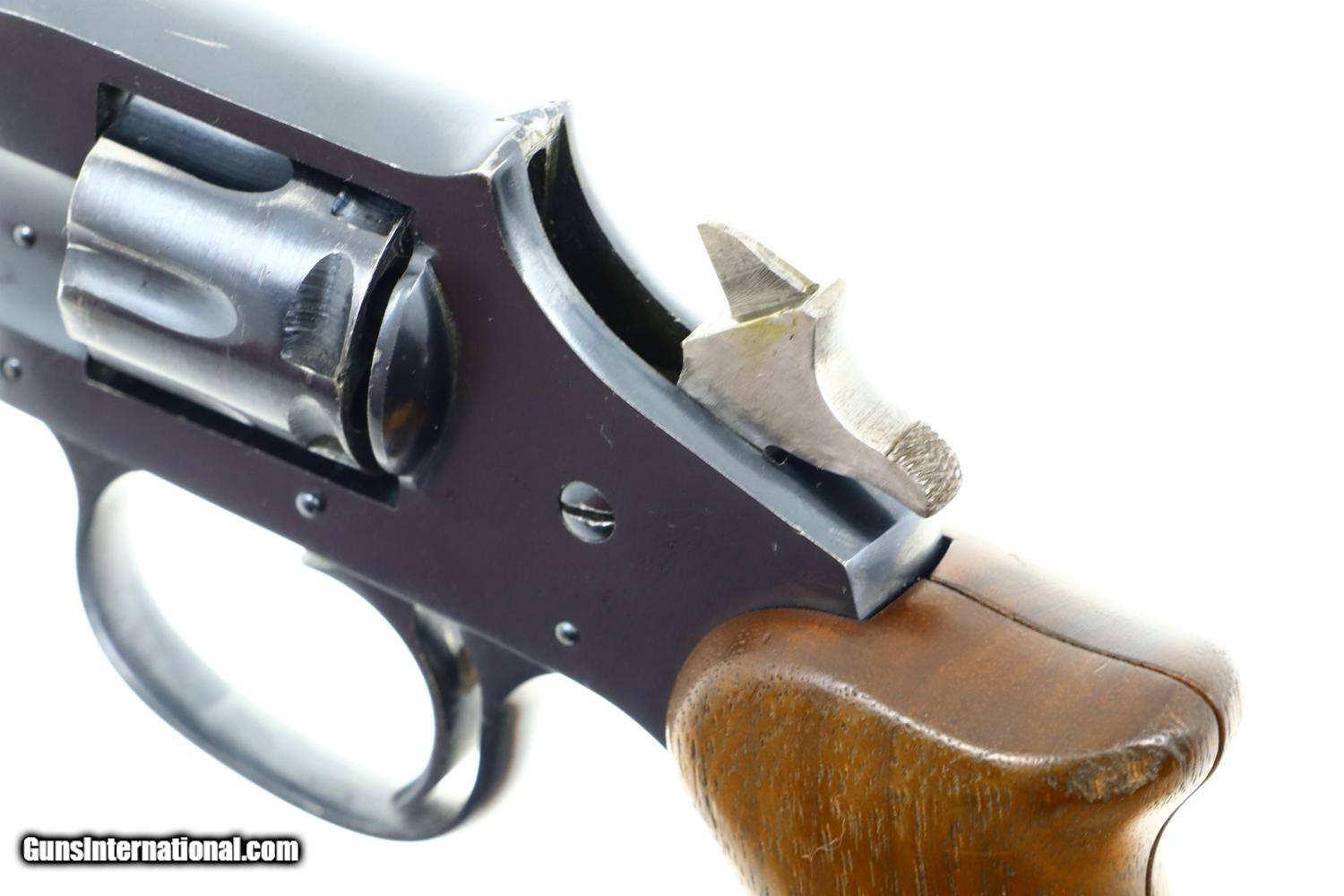 Description: Low production H&R Metropolitan Police Revolver, only 700 assembled between 1924-1926 with that particular marking, characteristics otherwise as per the more familiar Trapper. This example has a 6” octagon barrel with a half moon front sight and a notched rear sight. The model markings and caliber appearing on the left side. Full serial number on front strap with the last two digits repeated at rear of cylinder. Fitted with two piece checkered wood grips secured with a single screw. Synopsis: Very Scarce H&R, Metropolitan Police Revolver, .22 LR, 125882, A-1607 Condition: Approximately 97% original blue. Sides and top of the case hardened hammer have been freshened. Near excellent grips. Bright bore with sharp rifling. Cylinder indexes properly. A very unusual appearing revolver, especially by today’s standards, particularly when marking a 22 caliber revolver for the Metropolitan Police! ~~Insured shipping fee of $45; most packages shipped using FedEx 2nd Day.~~ SOLD Manufacturer: H&R Serial Number: 125882 Caliber Info: .22 LR |