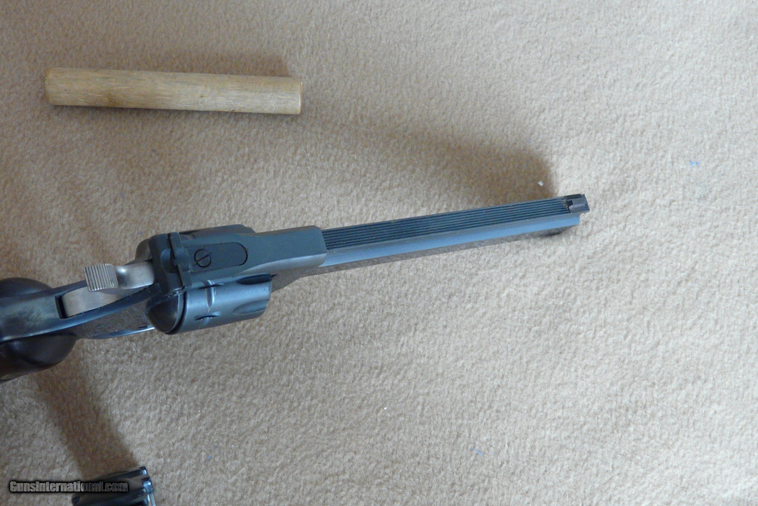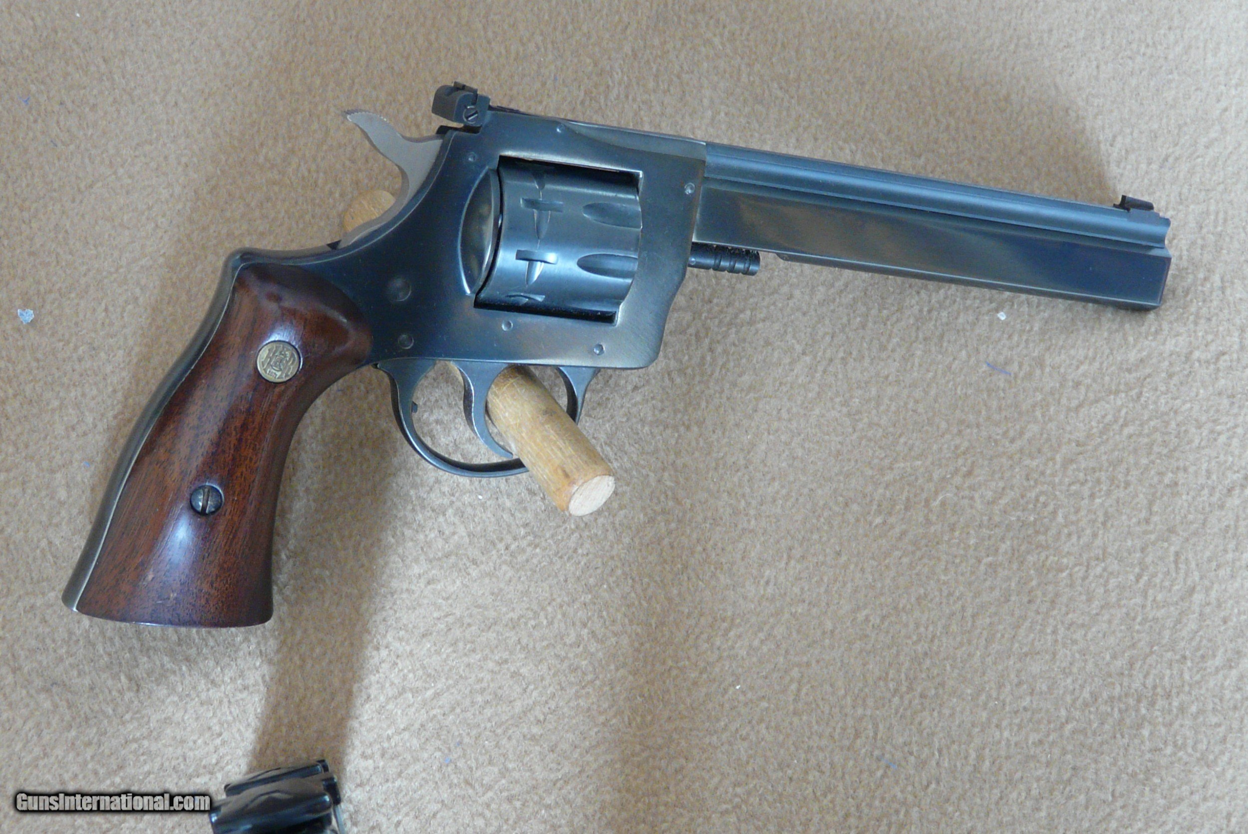 Description: Made for 3 years 80 to 83, with Flatside 6" bbl, with swing out cylinder, 9 shot 22 LR, 99% original condition, had very little use, Great accurate field gun. SOLD |