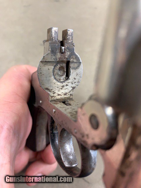 Description: We see quite a few H&R Revolvers, many of them antique (pre 1898), but not very many at all in .22lr cal. This little cutie holds 7 rounds of .22lr ammo (the black powder kind). Action funcitons well in both double and single action modes. Grips are functional but with chips. Very good to excellent bore and chambers. A great little pocket revolver coveted by every woman at the turn of the century. SOLD Curio/Relic: Yes Antique: Yes Handgun Caliber: .22 Long Rifle |