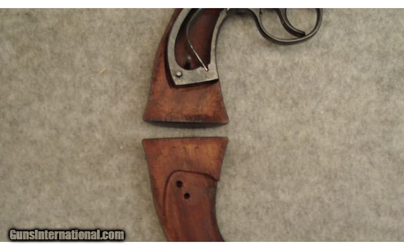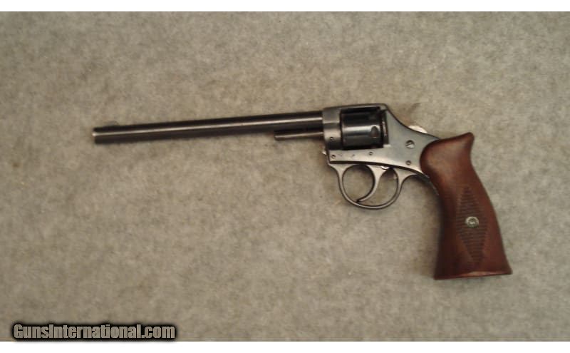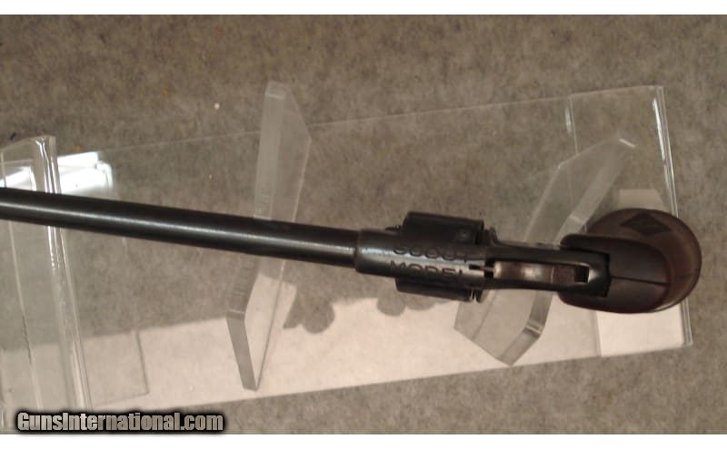 Description: H&R Scout revolver that apparently was produced as a private run of 100 revolvers for a particular hardware store. It has a 6" round barrel vs. the octagonal barrel of the Hunter and Trapper models. It has an unfluted cylinder unlike the other revolvers mentioned. The walnut saw-handle grips are number matched to the serial number . The only markings on this revolver are the serial # and the "Scout Model" on the top strap. Intended for catalog and hardware store sales. From what I've been able to find out - the SCOUT model was ordered by ? Belknap Hardware of Louisville Kentucky? in the 1920s, in the total of 100 pieces. It apparently was intended to be a "give-away" or "premium" or "kid's gun" - as there is no rear sight, it doesn't seem to be intended for serious shooting endeavors. I've seen only one other example and on that one the front sight was not inverted in the barrel. In any case. Overall condition is good. Barrel has some minor pitting. Wood grips are in very good condition. .22 Short SOLD Chambers: 7 Metal Condition: Good Wood Condition: Good Bore Condition: Good Barrels: 6 Triggers: Double Action Weight: 2 lb Item Location: Sun Prairie, WI |