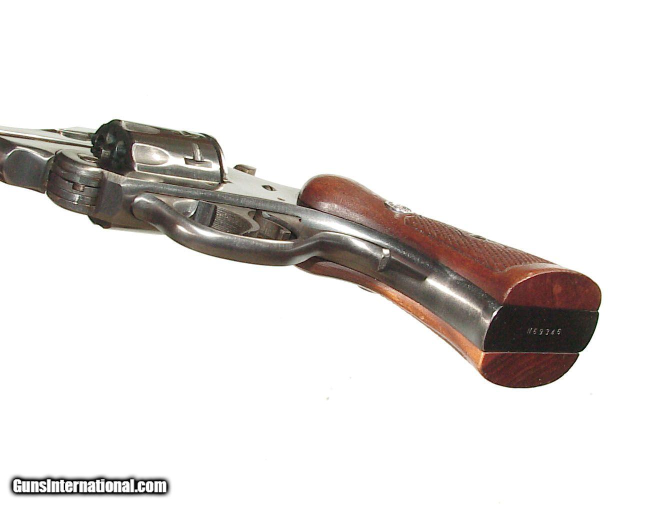 Description: .22 rimfire, 6" barrel with adjustable rear sight. Break-top double action with 9 shot cylinder. Checkered diamond checkered grips. In as new and what appears to be unfired original condition. 1947 mfg. SOLD Curio/Relic: Yes |