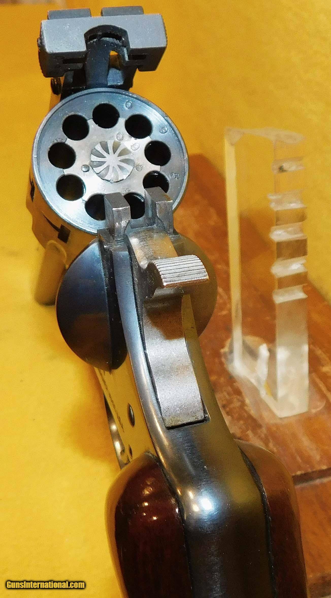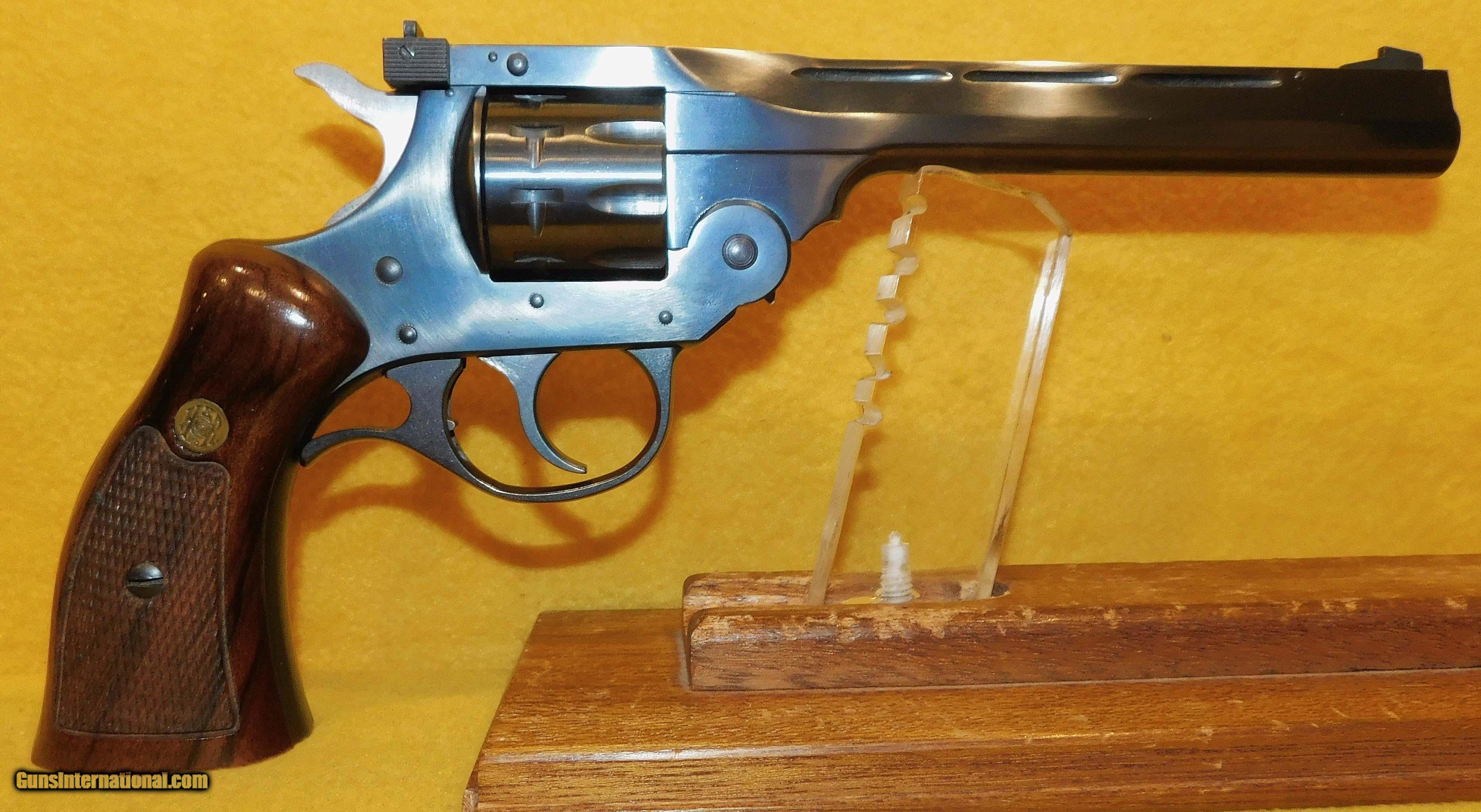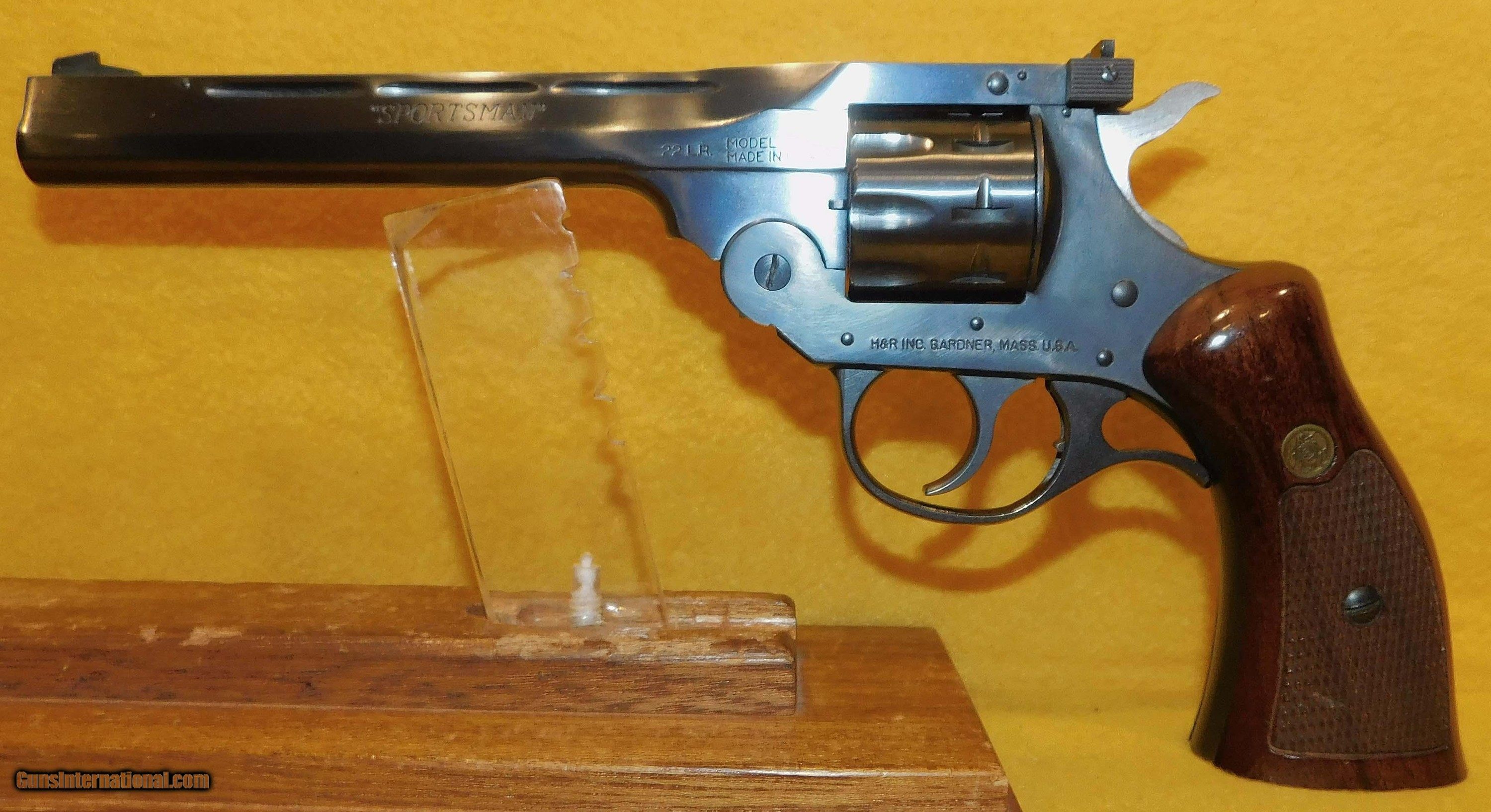 Description: H&R SPORTSMAN 999 IN .22 L.R. CAL., WITH 6" BARREL. COLOR BLUE. CONDITION 98%. SERIAL NUMBER AX157095. HARINGTON AND RICHARDSON MODEL SPORTSMAN 999 (NINE SHOT) (GARDNER MASS.), VENT RIB MIRROR BORE BARREL, CHECKERED WALNUT ROPER GRIPS EXCELLENT, ADJUSTABLE FRONT AND REAR SIGHTS, 98% OVERALL CONDITION, OUR STOCK # D3687 SOLD |