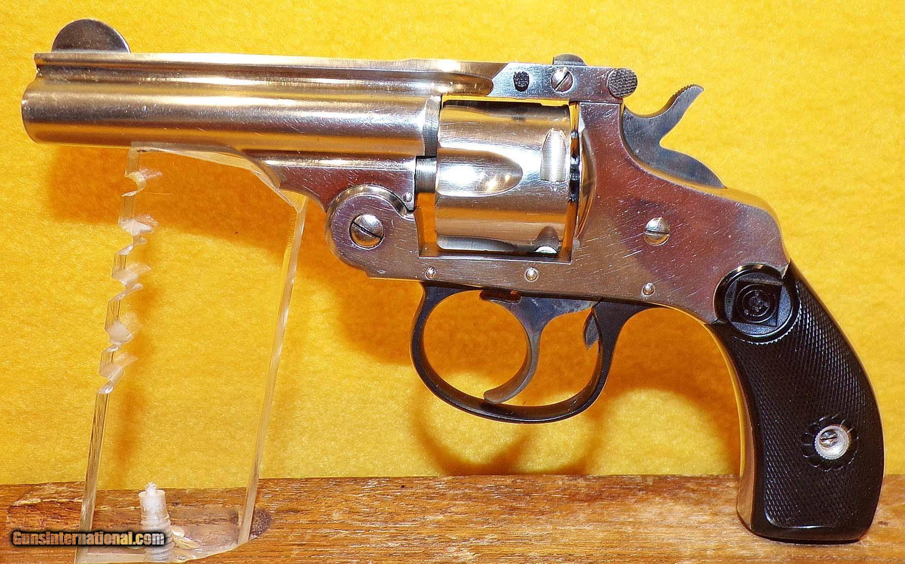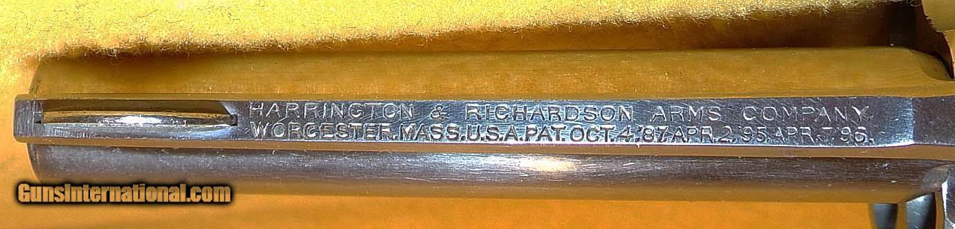 Description: H&R TOP BREAK IN .32 S&W WITH 3" BARREL. COLOR NICKEL. CONDITION 97%. SERIAL NUMBER 9512. H&R MODEL TOP BREAK IN .32 S&W CALIBER, GRIPS EXCELLENT, BRIGHT SHINY BORE, NICKEL FINISH EXCELLENT, APPEARS NOT TO HAVE BEEN FIRED, 97% OVERALL CONDITION, OUR STOCK # D1778. OUR OLD STOCK # YA13311 SOLD |
