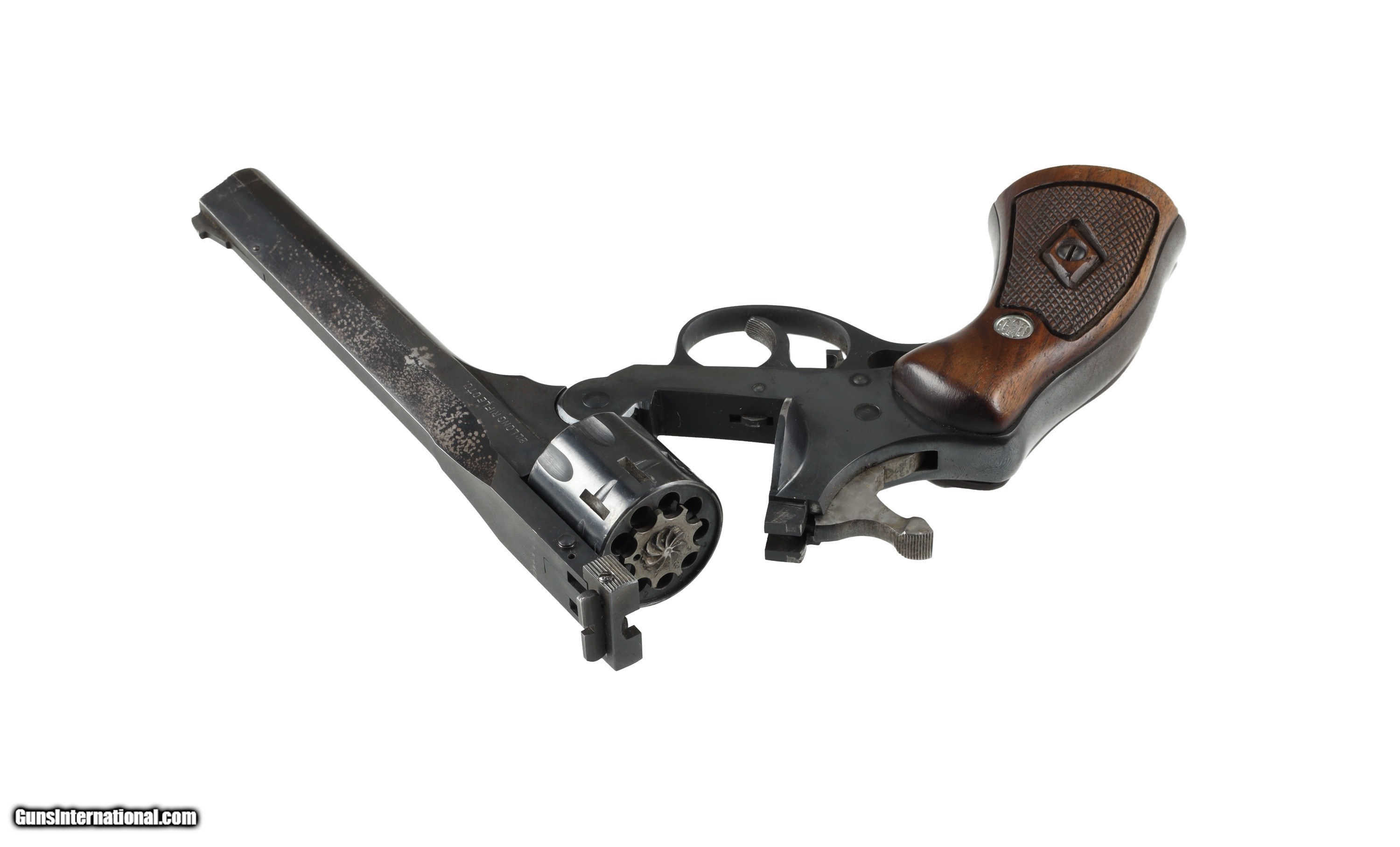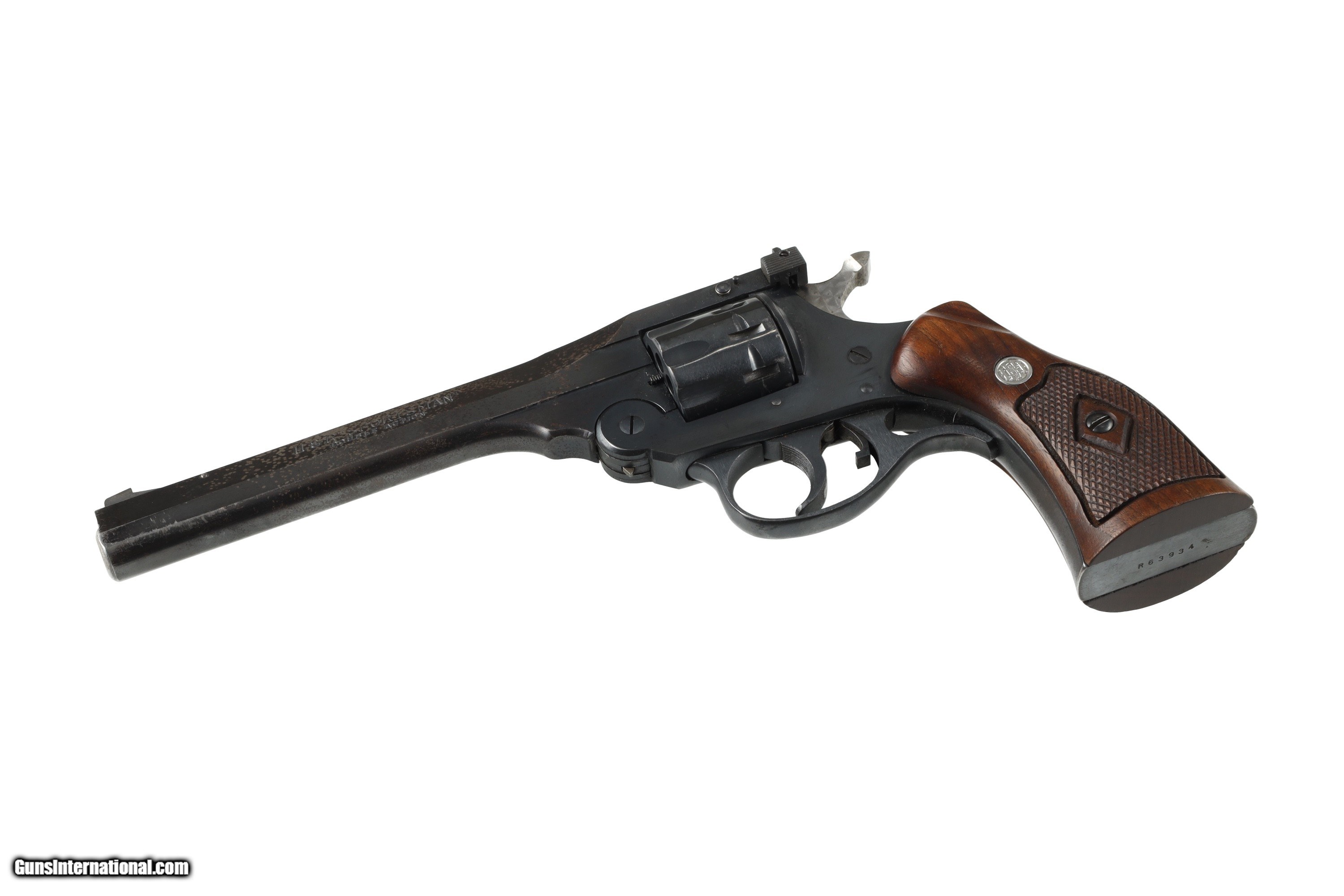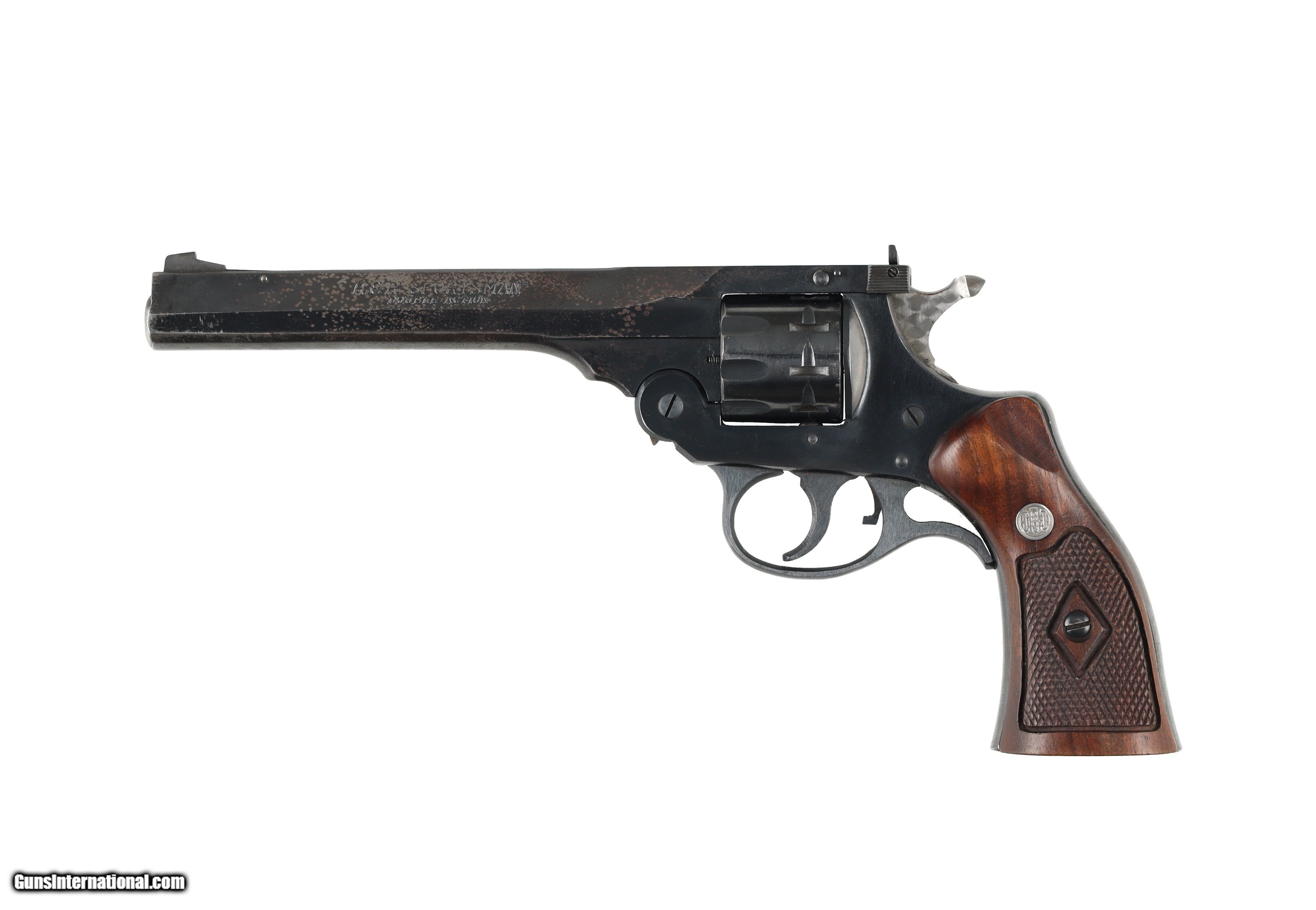 Description: Fully functional revolver with some heavy pitting on the exterior barrel, bore is clean. SOLD Handgun Caliber: .22 Long Rifle Manufacturer: H&R Model: Sportsman Barrel Length: 6 Condition: G Metal Condition: G Wood Condition: G Bore Condition: G Case: No |