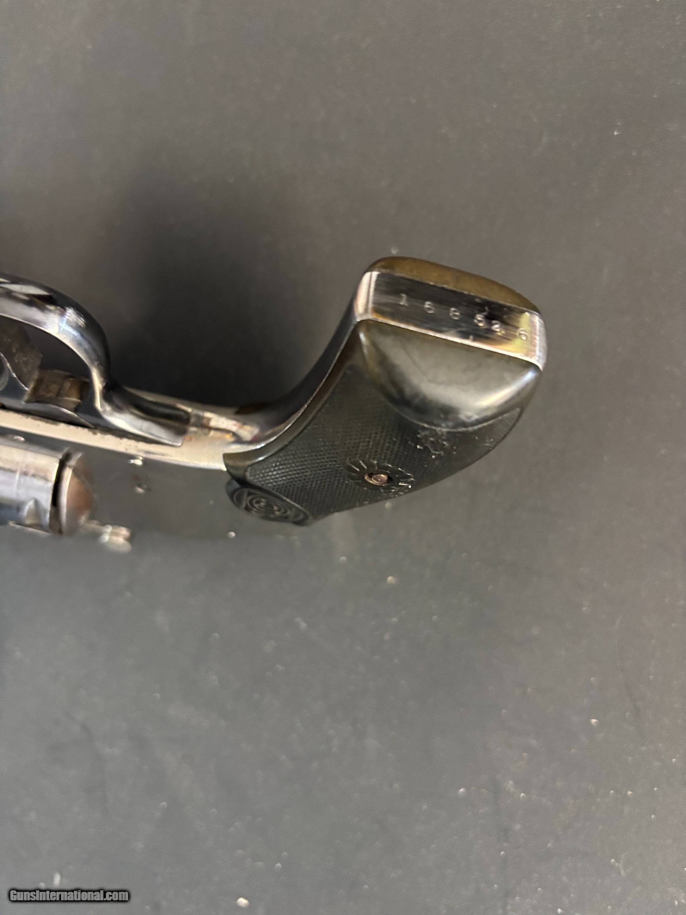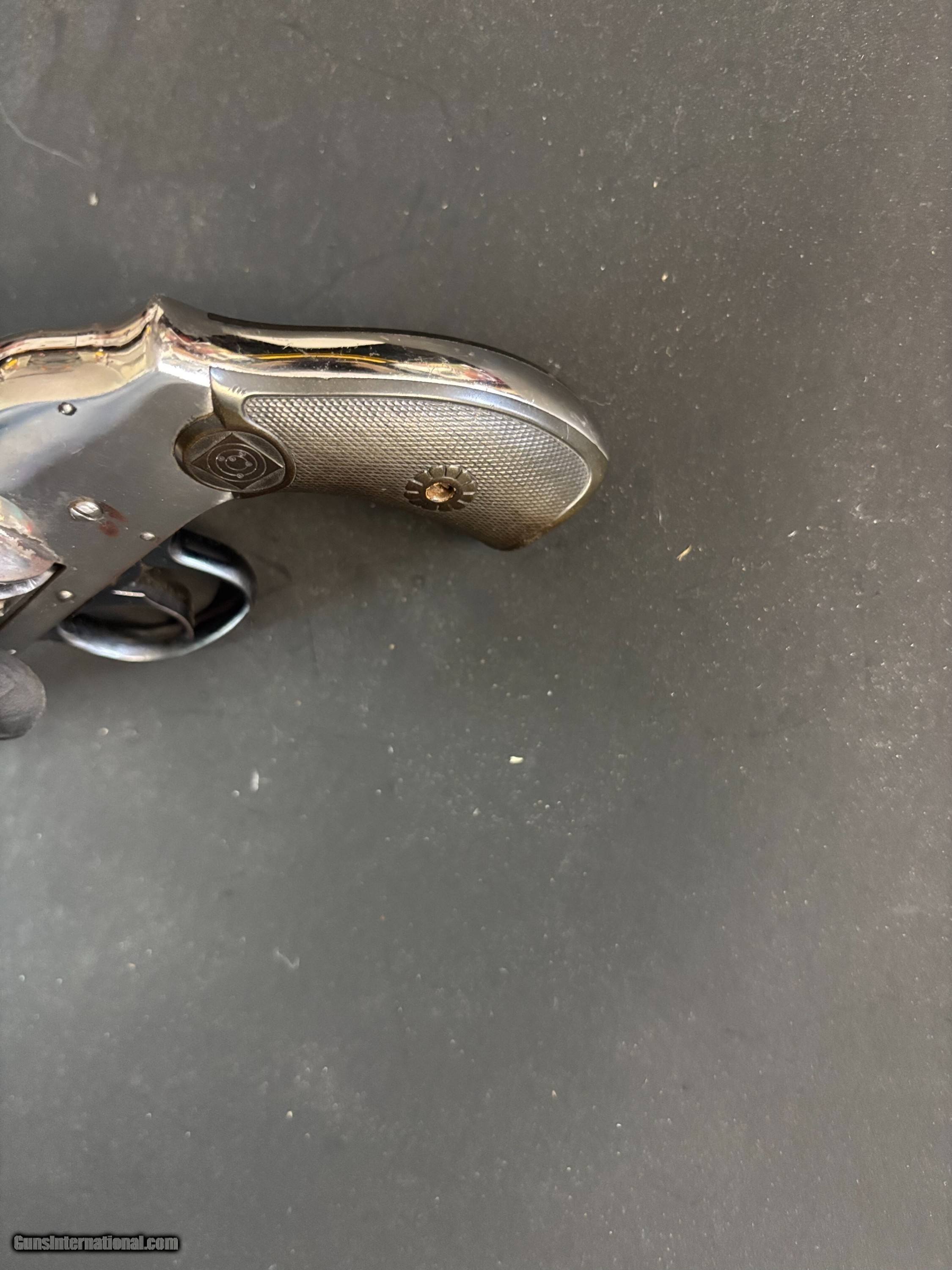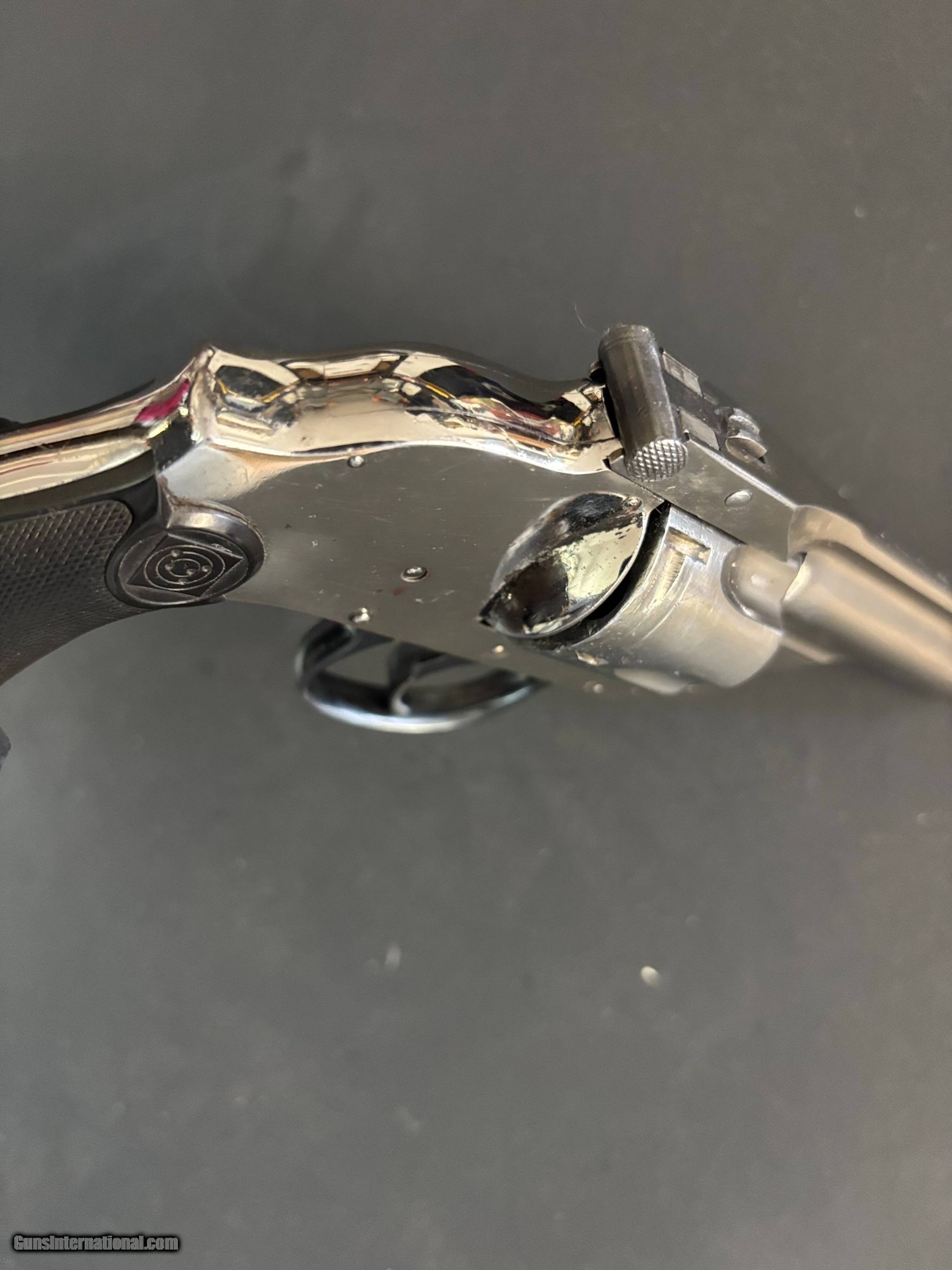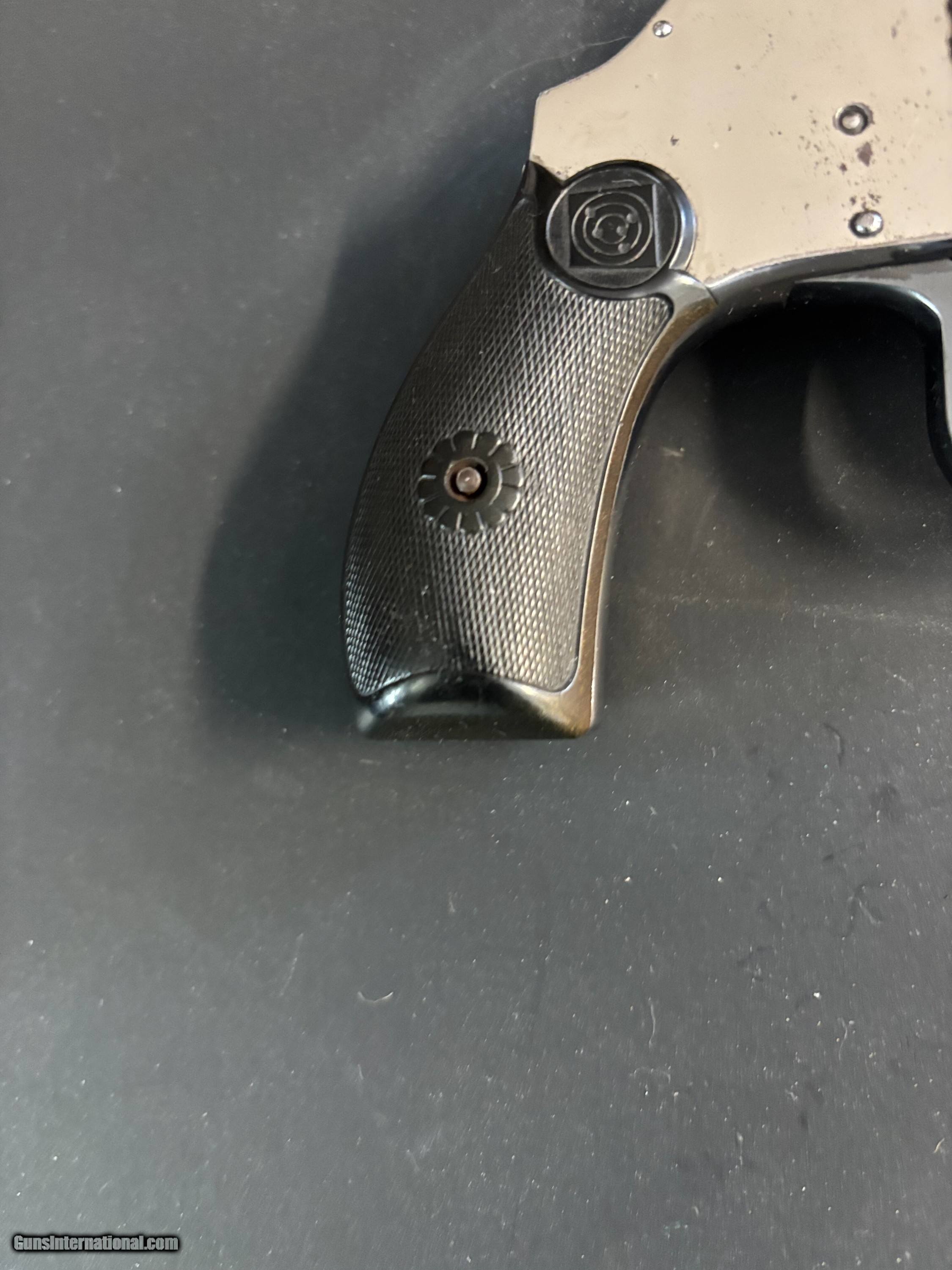 Description: Harrington & Richardson 2nd model Hammerless large frame .38 S&W revolver. **C&R** Looking for a classic piece of American firearms history? If you're looking for an exceptional addition to your Harrington & Richardson or Top Break revolver collection, then this Very nice condition H&R Second model .38 Double Action Top Break Hammerless Revolver might just be what you're looking for. This is a 2nd model , 5th variation, Type 19 produced from 1916 - 1924. Serial number 168526. Serial number range from 160,000 to 190,000. Serial number indicates it was manufactured in 1916 Large frame double action revolver Top break 5 shot Nickel finish Matching numbers Double top post barrel latch auto shell ejecting .38 S&W Smokeless powder Top of Barrel marked: HARRINGTON & RICHARDSON ARMS CO WORCESTER MASS. U.S.A. Left side of barrel: 38 S&W CTGE Condition: 3 ¼”” raised rib barrel with a oxidized bore and mild pitting. Front and rear fixed sights. The small parts retain original bright blue. The metal surfaces retain about 90% of the original nickel with some very light edge wear, a couple small blemishes and very light handling marks. The original hard rubber checkered grips include the H&R target logo with a rosette around the screw escutcheons. The grips are scratch numbered to the gun and are in excellent condition. All the correct parts, barrel, cylinder, ejector, and frame are serialized to the gun. All barrel markings are clear and legible. Barrel to frame fit is tight and mechanically works very good with very good timing and lock-up The current condition of the item listed has been described to the best of my ability . Please examine the photos , text thoroughly and make sure to ask any and all questions prior to . This firearm is a very good example of a rare and historically significant firearm from the late 19 century and would make an exceptional addition to any collection. Don't miss your chance to own a piece of history – Whether you're a firearms collector, a history buff, or just looking for a unique piece to add to your gun collection, this H&R top break 100 + year old revolver is sure to impress. This firearm may ship to a C&R or an FFL who will accept my C&R license. FREE USPS priority shipping will be provided. This gun is sold "as-is" as a collectible with no refund and no return. Payment can be made with bank check, postal ,money order, personal check and must be sent within 7 days of close. For instant payment please contact me for account info I can take Zelle, Venmo, or Cash App. The item will be shipped as soon as funds are receive. An email with tracking number will be sent as soon as item is shipped. Curio/Relic: Yes Handgun Caliber: .38 S&W (.38 Colt New Police, .38 Super Police) Manufacturer: Harrington & Richardson Model: hammerless Serial Number: 168526 Barrel Length: 3 1/4 Price: $375.00 Buy Now Pay with