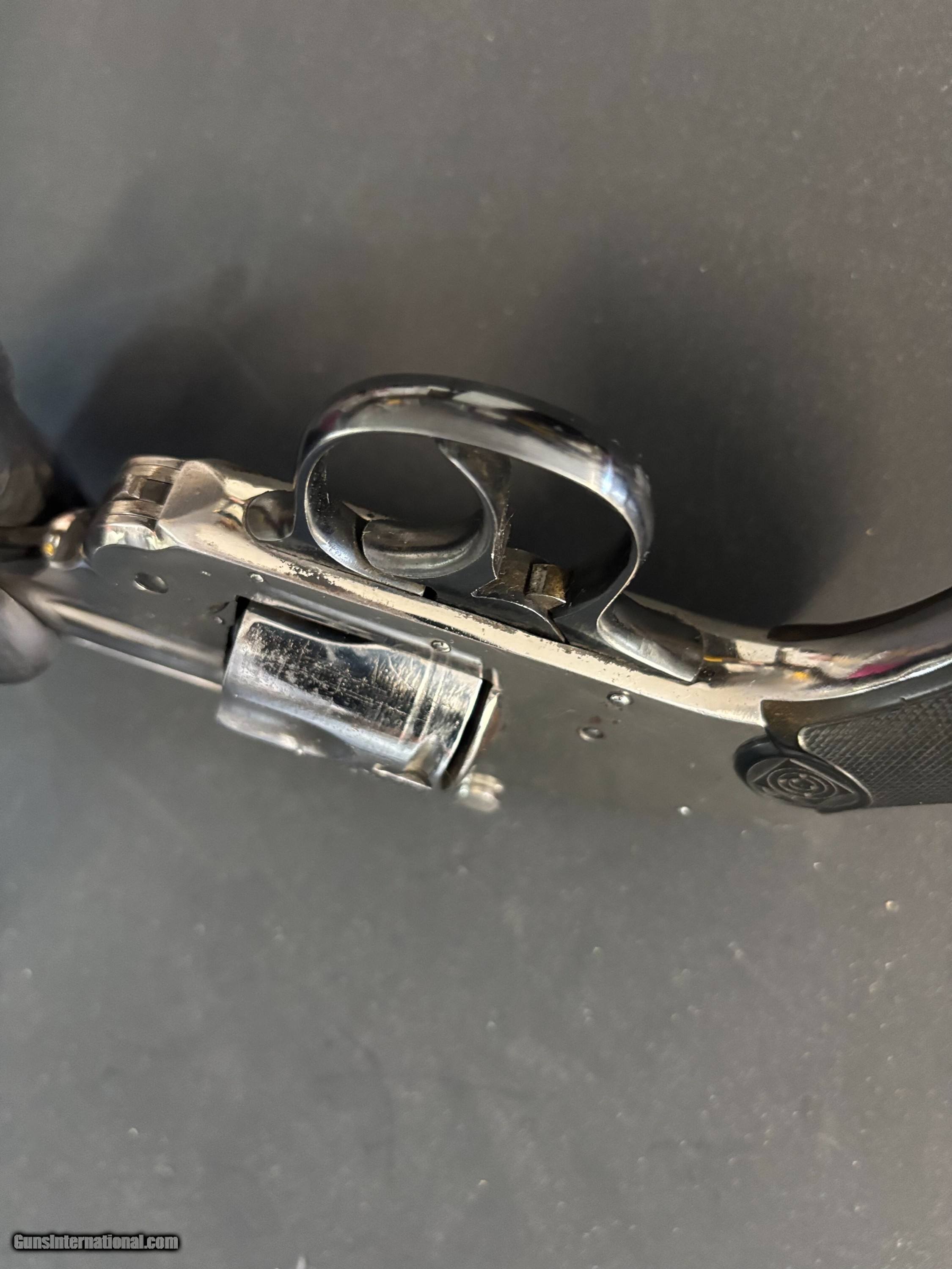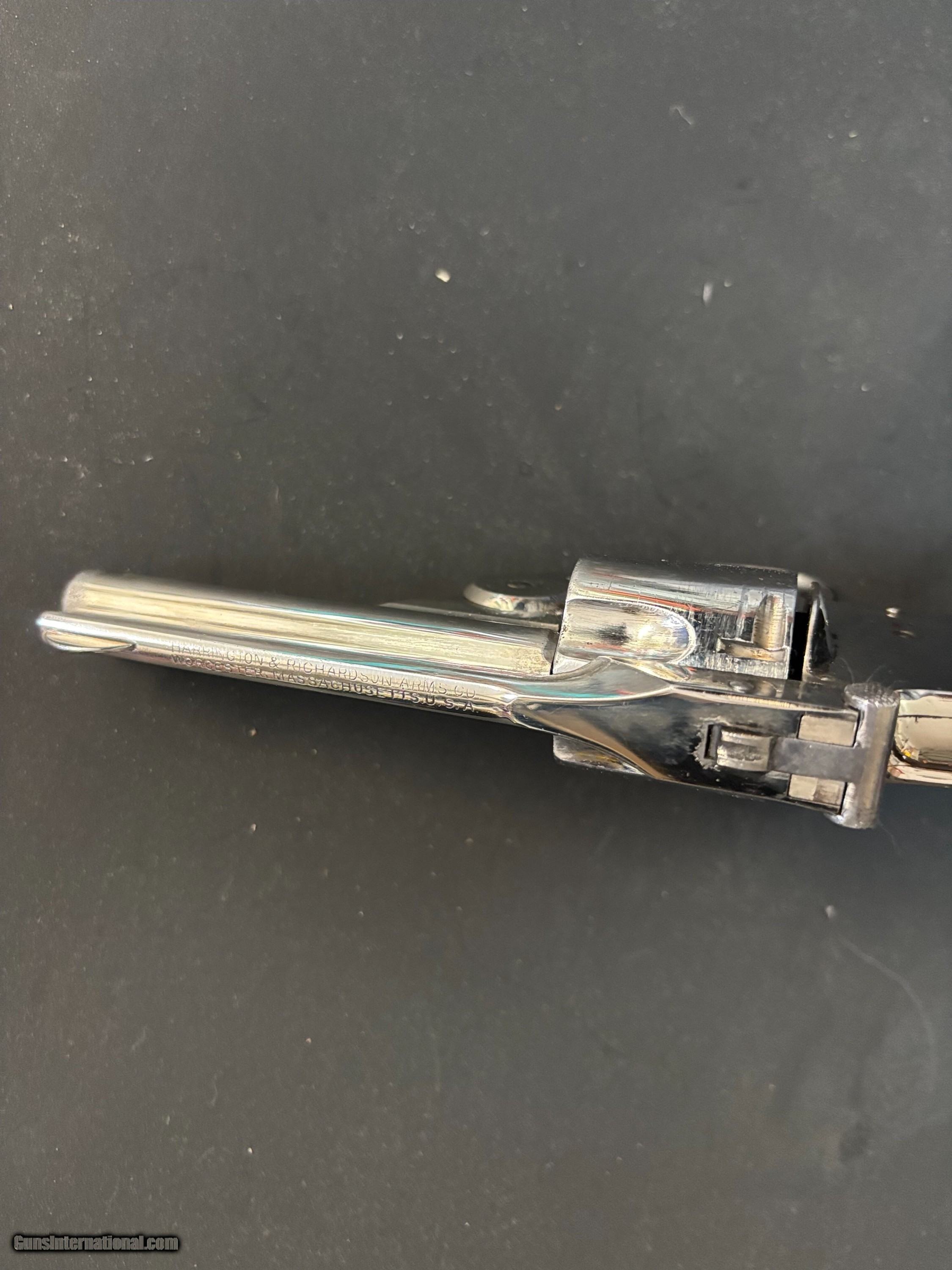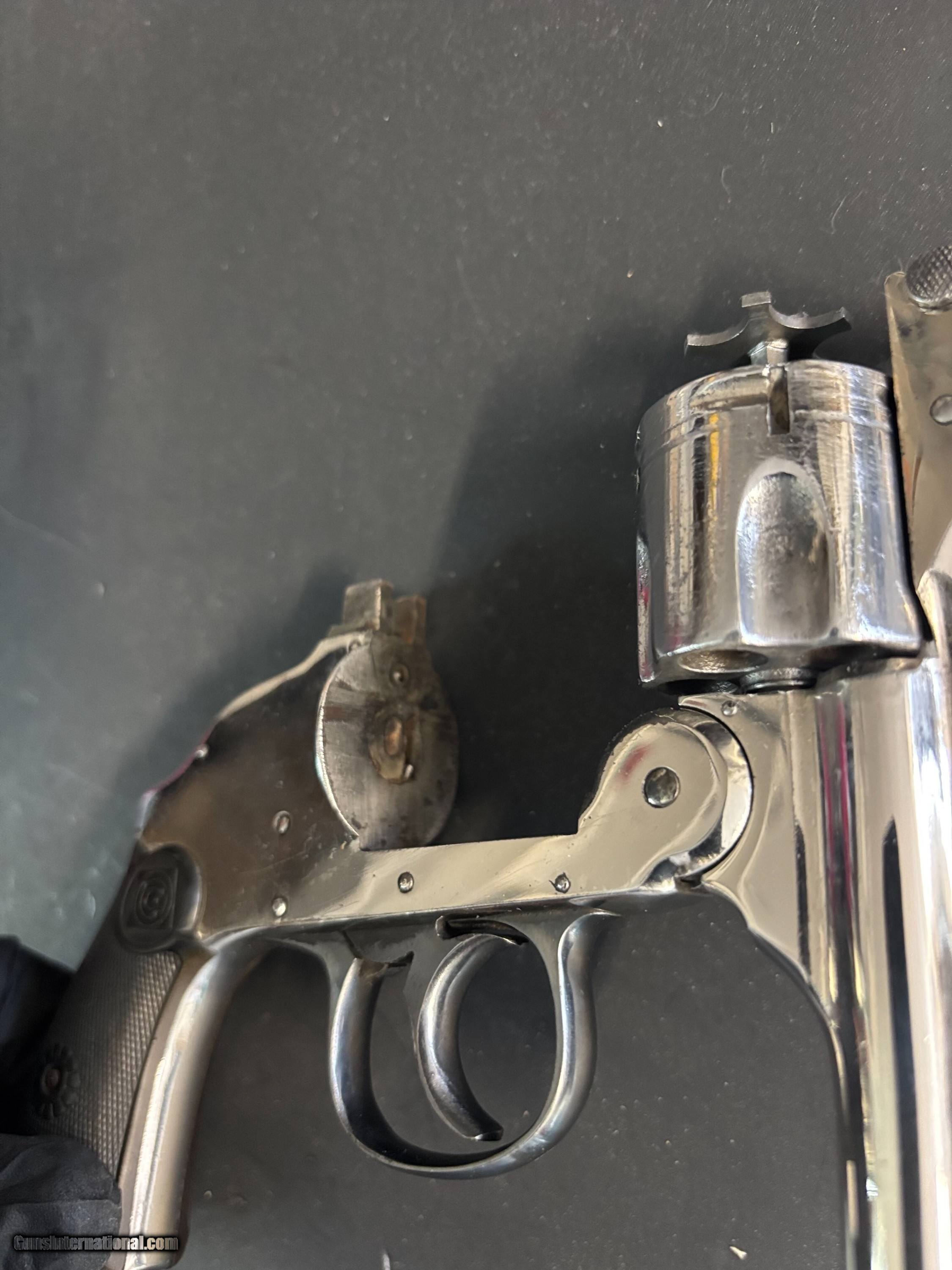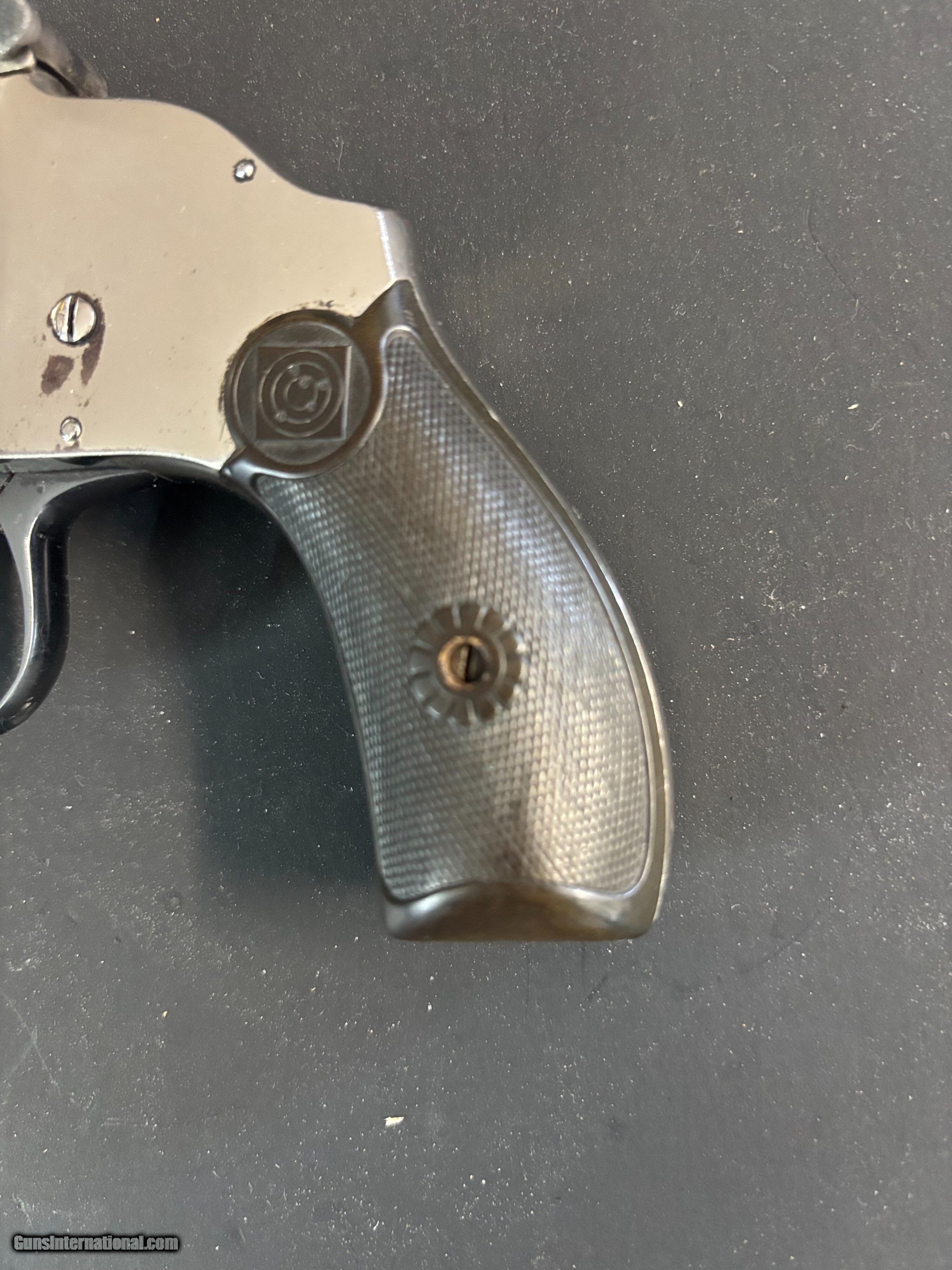 Description: Harrington & Richardson 2nd model Hammerless large frame .38 S&W revolver. **C&R** Looking for a classic piece of American firearms history? If you're looking for an exceptional addition to your Harrington & Richardson or Top Break revolver collection, then this Very nice condition H&R Second model .38 Double Action Top Break Hammerless Revolver might just be what you're looking for. This is a 2nd model , 5th variation, Type 19 produced from 1916 - 1924. Serial number 168526. Serial number range from 160,000 to 190,000. Serial number indicates it was manufactured in 1916 Large frame double action revolver Top break 5 shot Nickel finish Matching numbers Double top post barrel latch auto shell ejecting .38 S&W Smokeless powder Top of Barrel marked: HARRINGTON & RICHARDSON ARMS CO WORCESTER MASS. U.S.A. Left side of barrel: 38 S&W CTGE Condition: 3 ¼”” raised rib barrel with a oxidized bore and mild pitting. Front and rear fixed sights. The small parts retain original bright blue. The metal surfaces retain about 90% of the original nickel with some very light edge wear, a couple small blemishes and very light handling marks. The original hard rubber checkered grips include the H&R target logo with a rosette around the screw escutcheons. The grips are scratch numbered to the gun and are in excellent condition. All the correct parts, barrel, cylinder, ejector, and frame are serialized to the gun. All barrel markings are clear and legible. Barrel to frame fit is tight and mechanically works very good with very good timing and lock-up The current condition of the item listed has been described to the best of my ability . Please examine the photos , text thoroughly and make sure to ask any and all questions prior to . This firearm is a very good example of a rare and historically significant firearm from the late 19 century and would make an exceptional addition to any collection. Don't miss your chance to own a piece of history – Whether you're a firearms collector, a history buff, or just looking for a unique piece to add to your gun collection, this H&R top break 100 + year old revolver is sure to impress. This firearm may ship to a C&R or an FFL who will accept my C&R license. FREE USPS priority shipping will be provided. This gun is sold "as-is" as a collectible with no refund and no return. Payment can be made with bank check, postal ,money order, personal check and must be sent within 7 days of close. For instant payment please contact me for account info I can take Zelle, Venmo, or Cash App. The item will be shipped as soon as funds are receive. An email with tracking number will be sent as soon as item is shipped. Curio/Relic: Yes Handgun Caliber: .38 S&W (.38 Colt New Police, .38 Super Police) Manufacturer: Harrington & Richardson Model: hammerless Serial Number: 168526 Barrel Length: 3 1/4 Price: $375.00 Buy Now Pay with