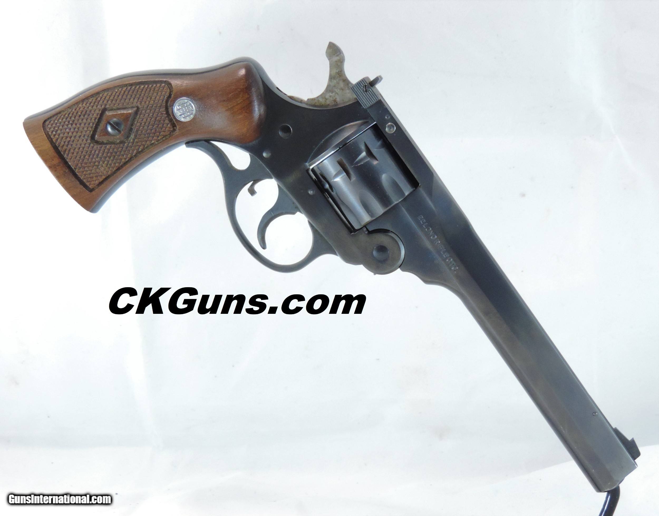 Description: Inv. 7625 Harrington & Richardson, (H & R) Sportsman. Cal. .22 LR, ser R 496XX. Minty condition. Truly, this estate "Attic Queen" gun shows now evidence of being fired. The factory finish is at the least, 99.99+%. The only loss is from the tiniest cylinder hairline drag ring. There isn't a blemish anywhere that we can find. All parts are proper. The grip straps show no sign of graying. The gun cocks, locks, indexes, and fires perfectly. The jeweled hammer is without a blemish as are the checkered S & W style medallion grips. The force cone, cylinder face, and recoils shield show no wear. The barrel is pristine like the rest of the gun. The bore is mirror bright with razor sharp rifling and with no frost. This "Attic Queen" only needs a box to pass for NIB. It's a great find for the investor/collector or for real fun at the camp...Shipped....$495.*** ***Purchase Satisfaction Guaranteed. To purchase this firearm or if you want to request more information contact us at: Email ckguns[at]ymail[dot]com Phone 201-512-0002 Cell 201-575-6838 FAX 201-215-4759 We accept most major credit cards. Prices shown are Discounted 3% for Cash or Check. The buyer must be familiar with all the laws governing the purchase and the ownership of firearms in their own city and state. The Yankee Armorer, Inc is not responsible for any failure to comply with or observe these laws. The Yankee Armorer, Inc will only ship after full payment and receipt of all required documents. Shipping: Add $35.00 for handguns, $45.00 for long guns. New Jersey buyers are subject to a 7% sales tax. The Yankee Armorer, Inc offers a 3 day inspection period with full refund upon return of intact firearm and in the original condition. The Yankee Armorer, Inc offers a no interest lay away program - 25% down; 25% in 30 days; 25% in 60 days; and full payment in 90 days. Any violation of this policy is subject to restocking and forfeiture of all payments. Any variation from this policy must be agreed to in advance. Unshipped Cancelled sales are subject to a 20% restocking fee. Be advised that all firearms sold by The Yankee Armorer, Inc. or the Gun Exchange, LLC (SELLER) are sold as collector’s items. They have not been fired or tested for safety and must be examined by a license gunsmith prior to use. By purchasing any item from the (SELLER), you are agreeing to hold the (SELLER) free from any damages or lawsuits of any nature. Any item left for transfer or storage will be charged to $25.00 per month, per item from the day of its receipt. Any variation from this policy must be agreed to in advance. Store hours 10:00 am to 5:00 pm Tuesday -Saturday. It's always best to call for appointment. Store 201-512-0002, cell 201-575-6838. SOLD |