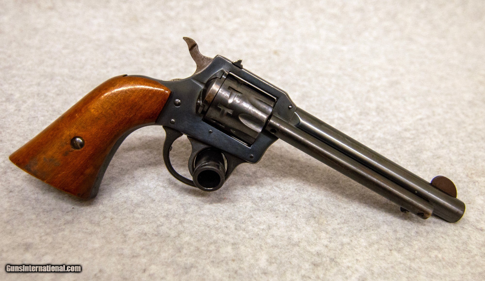 Description: Harrington & Richardson 949, chambered in .22 LR. Features include: 5 1/2 in. barrel, DA, solid frame, 9 shot, side load and Western style ejection, adj. rear sight, walnut grips. Some light speckling is present on the barrel along with small amount of bluing loss on the frame and cylinder. Grips have some black residue, probably from a holster, along with various scratch and scuff marks. .22 Long Rifle Chambers: .22 LR Metal Condition: Very Good Wood Condition: Good Bore Condition: Excellent Barrels: 5.5'' Sights: Fixed Item Location: Fort Mill, SC Price: $149.99 Contact Seller |
