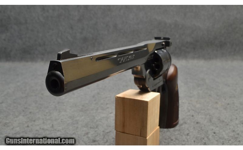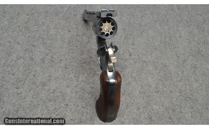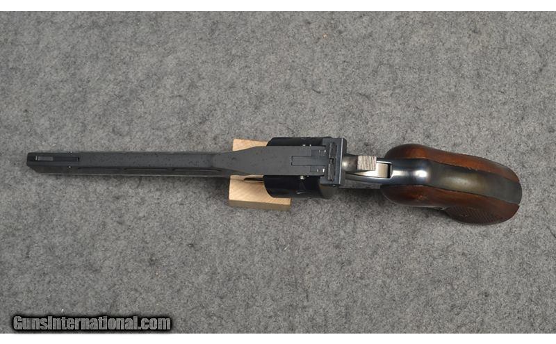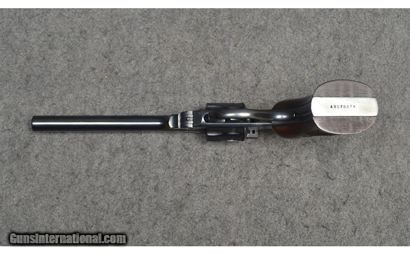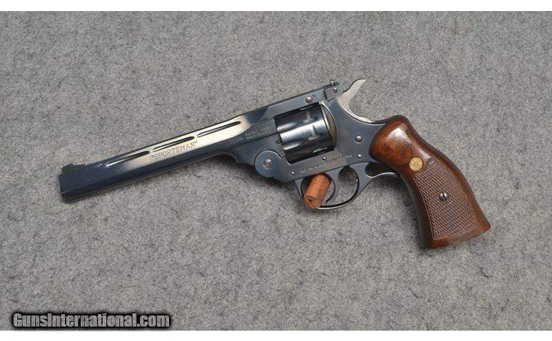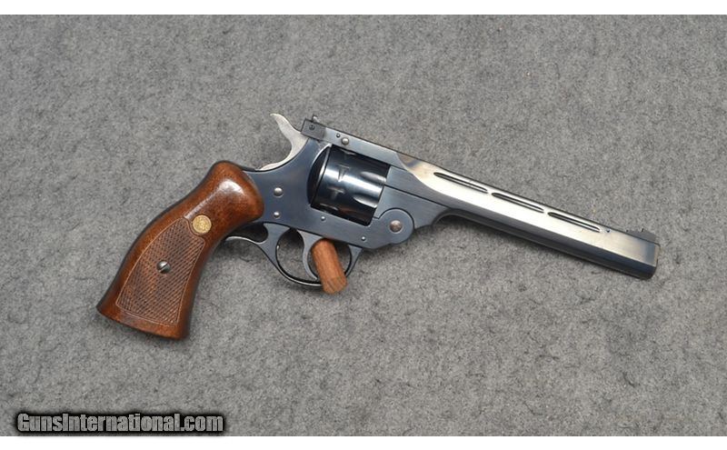 Description: This double action revolver is a Harrington & Richardson 999 Sportsman chambered for .22 Long rifle. This revolver features a 9 shot cylinder, checkered wood grips, and a polished hammer. This revolver is in overall very good condition, aside from a few small scratches near the muzzle, and some light rust spotting on the top of the barrel. Comes with factory cardboard box. .22 Long Rifle SOLD Metal Condition: Overall very good condition Wood Condition: Overall very good condition Bore Condition: "Bright and shiny, crisp rifling Barrels: 6in Fore End: Checkered walnut grips Weight: 2 lbs Sights: Iron sights Item Location: Wichita, KS |