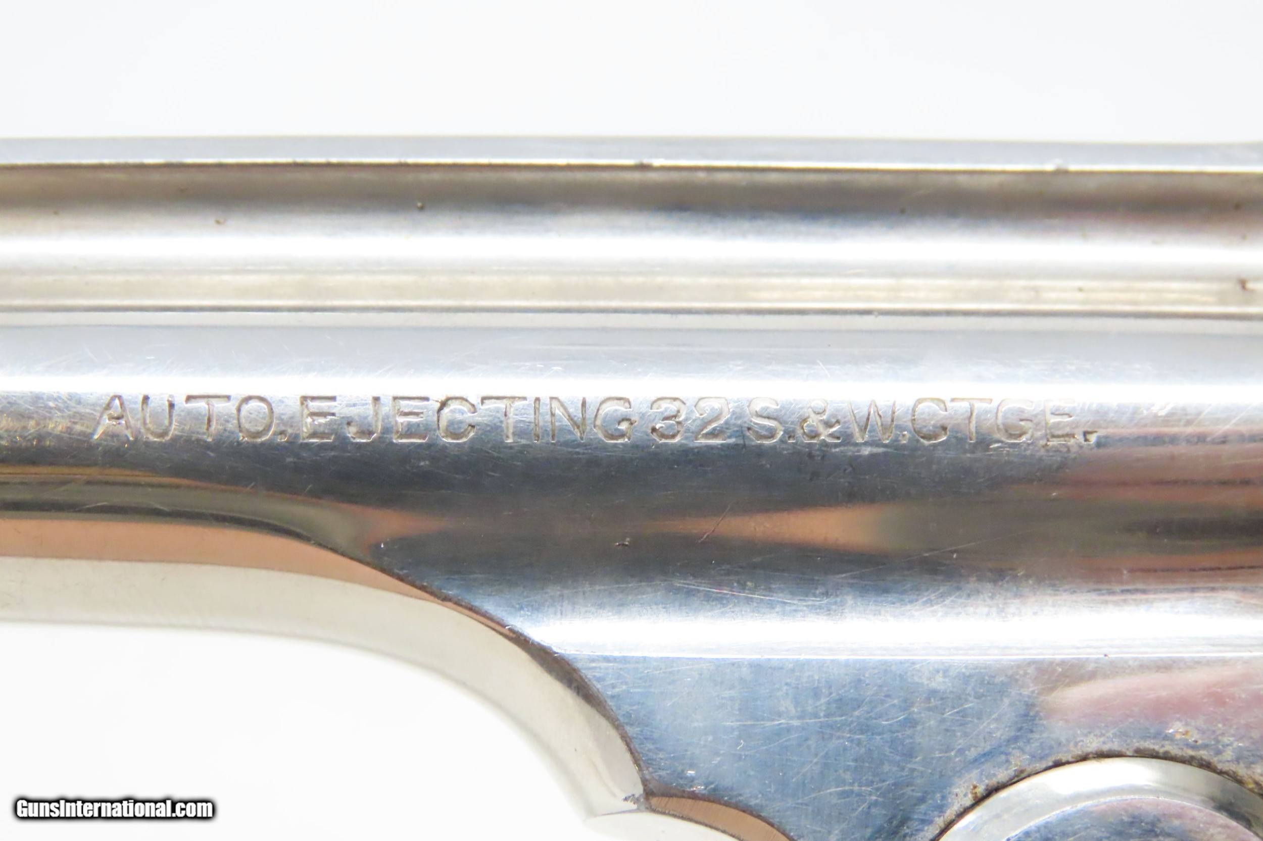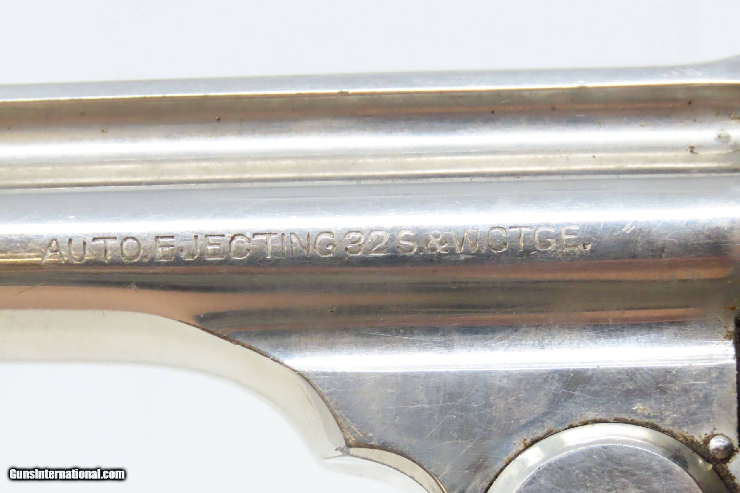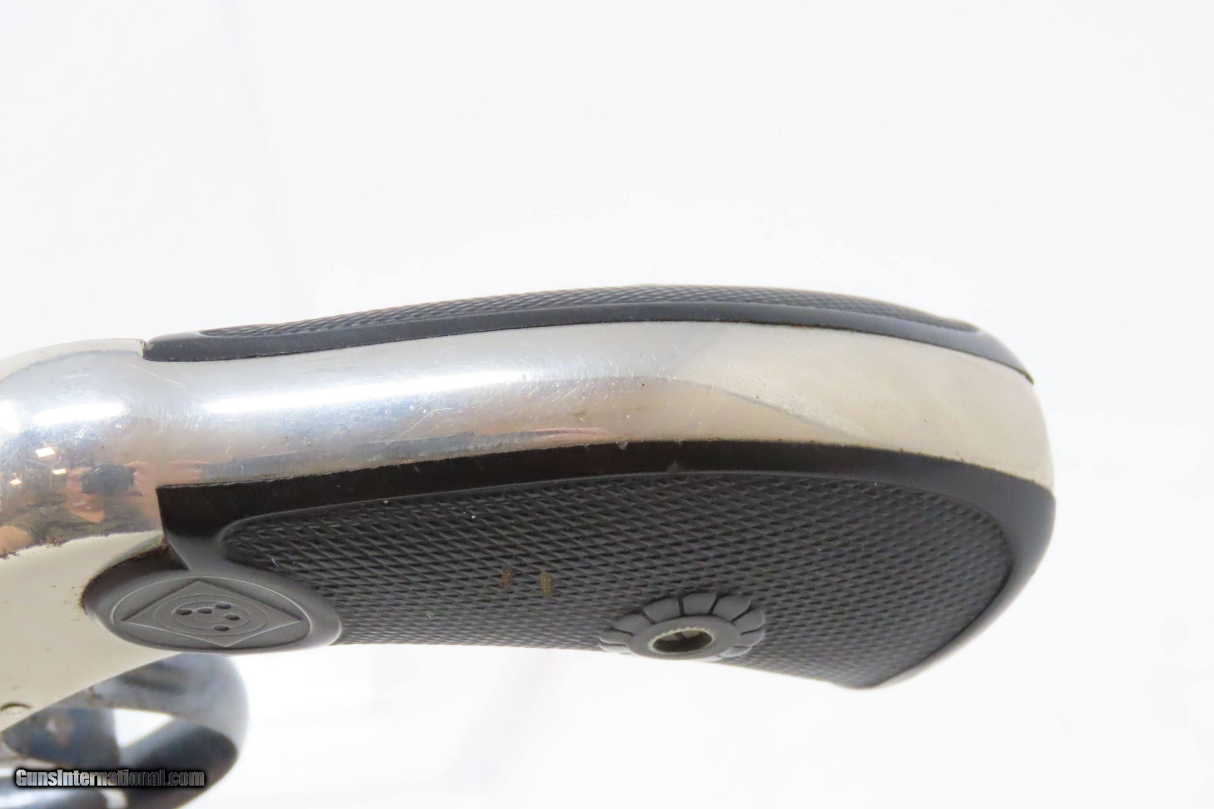 Description: HARRINGTON & RICHARDSON Auto-Ejecting TOP BREAK .32 Caliber DA Revolver C&R Early 20th Century CONCEAL & CARRY Revolver Here we present a C&R Harrington & Richardson Third Variation Auto Ejecting Double Action Top Break Revolver, made circa 1913-1915 in Worcester, Massachusetts. In 1875 Gilbert Harrington and former Frank Wesson employee, William Augustus Richardson, formed the new Harrington & Richardson Company. In 1888 the firm was incorporated as The Harrington & Richardson Arms Company. Their original capital investment was $75,000. Harrington was president, Richardson was treasurer, and George F. Brooks was secretary. This revolver was designed to be small and concealable for self-defense. It is chambered for 6 shots of .32 S&W, making it a small, concealable and effective self-defense revolver. The “jazz age” was filled with gangsters and career thugs. Here we have a great example of a self-defense revolver that would have helped fend off those criminals! This little six-shot revolver came with an auto-ejecting mechanism, hard rubber grips, a nickel finish, and barrel lengths of 2-1/2, 3-1/4 (standard), and 4, 5, & 6 inch barrels available. The top of the barrel markings includes the company name and address, and the early production guns also included the patent dates. On the Third Models, as is this example, the left side of the barrel is marked “AUTO EJECTING .32 S&W CTGE” and was manufactured for smokeless powder. The first variation (1905-1908) had four patent dates, the model name, and caliber on the left side of the barrel. The second variation (1909-1912) had two patent dates, the model name, and caliber on the left side of the barrel. The third variation (1913-1915) had no patent dates and the name of the state is marked MASS. The fourth variation (1916-1924) the state of MASSACHUSETTS was spelled out. The fifth variation _1925-1941) had the new grip frame which is the same size as the rest of the frame with no step down for the grip panel. After 1931 this revolver was listed in the catalog as “H&R AUTOMATIC” No. 10 in .32 S&W Caliber with 6 shots and “H&R AUTOMATIC” No. 25 in .38 S&W Caliber with 5 shots. The overall condition is fine. Original nickel finish. Strong, tight action. The bore is bright. Both grips are in good shape with less than expected wear. Sharp markings. Numbers match. This firearm is classified as a Curio & Relic. Barrel is 5 inches. Caliber: .32 S&W Overall condition as seen in photos. Very Fast. Very Safe. FREE SHIPPING. Will need to be sent to your local FFL or C&R licensee. This firearm is classified as a Curio & Relic. Guaranteed AUTHENTIC & Includes CERTIFICATE OF AUTHENTICITY. ancestryguns $1050 #226165 SOLD Curio/Relic: Yes |