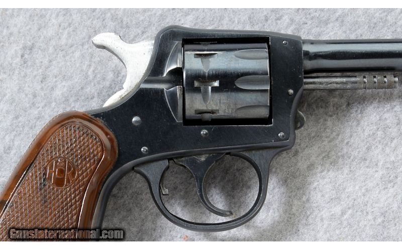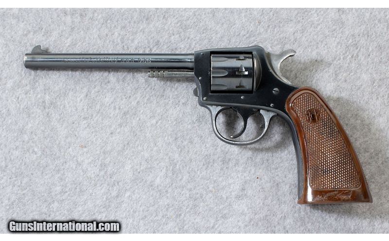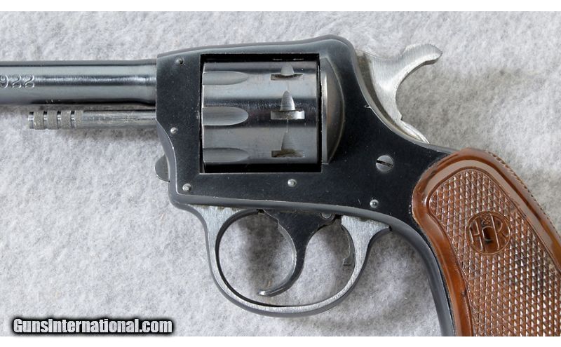 Description: The nine shot Harrington & Richardson Arms Model 922 is a great revolver for plinking and small game haunting. Manufactured 1949. .22 Long Rifle SOLD Metal Condition: "Very good, with finish wear on the muzzle and some sharp edges Bore Condition: Very good Barrels: 6 inch barrel Triggers: Double action Weight: 27 oz. Sights: Fixed square notch rear sight with blade front Item Location: Lehi, UT |