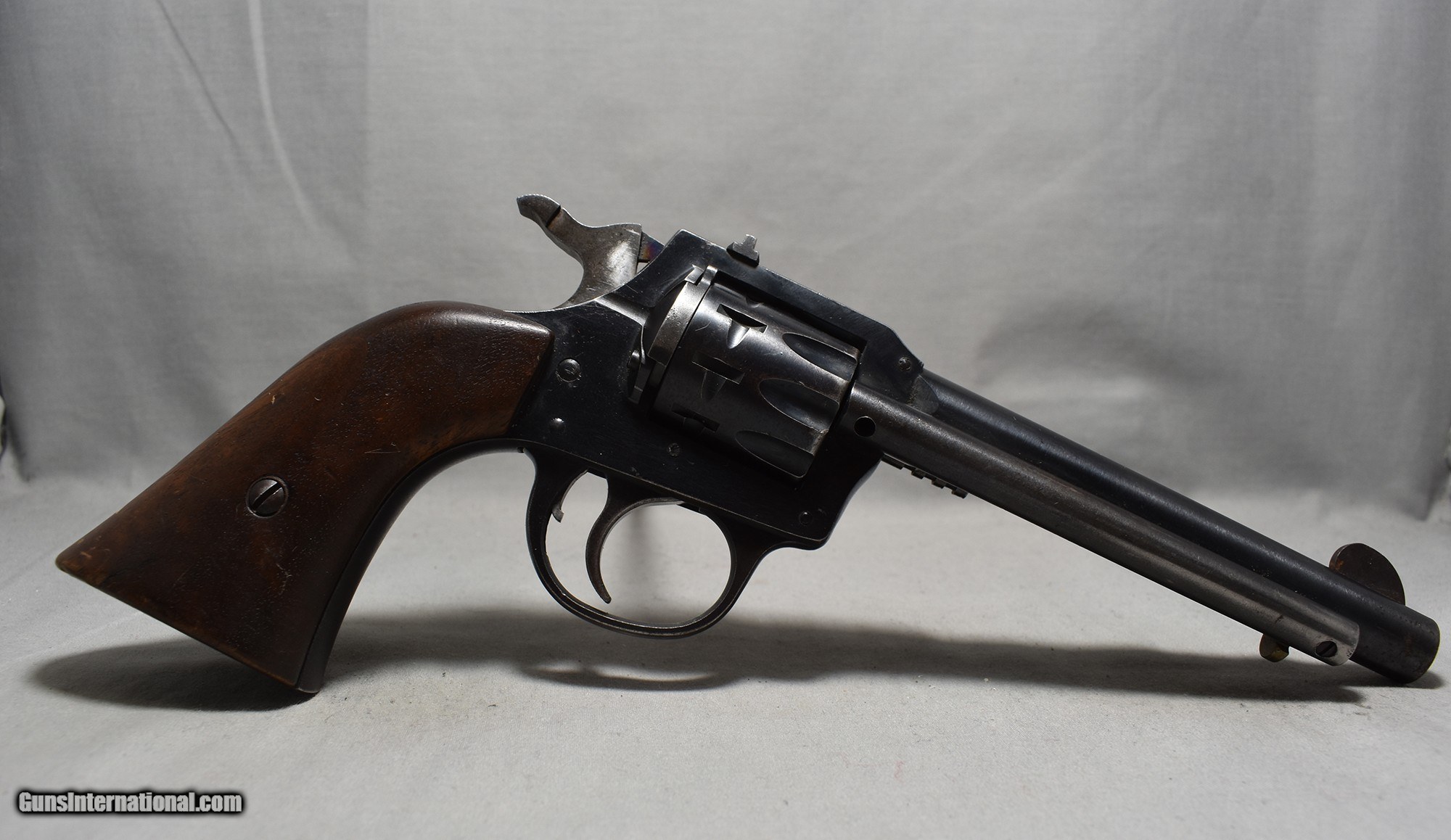 Description: This Harrington & Richardson Model 949 .22 LR is in good condition. It has some small scratches on the barrel and the frame but no rust. The grips show some wear but no visible cracks. Still a plinker for a fair price. .22 Long Rifle Chambers: .22 with a 9 round cylinder Metal Condition: Good Wood Condition: Good Bore Condition: Good Barrels: 5.5 Weight: 2 Sights: Adjustable Rear Item Location: Kansas City, KS Price: $129.99 Contact Seller |