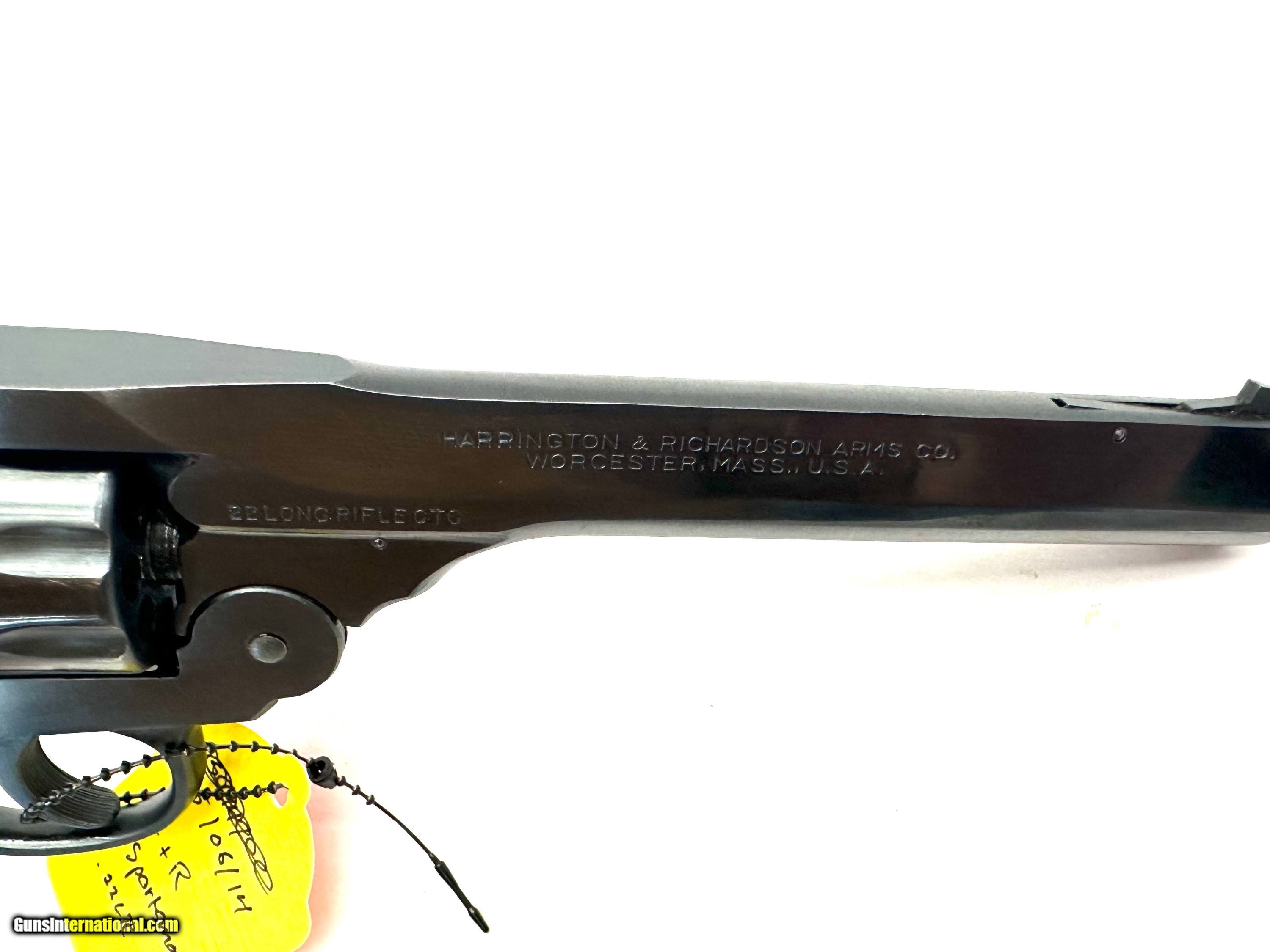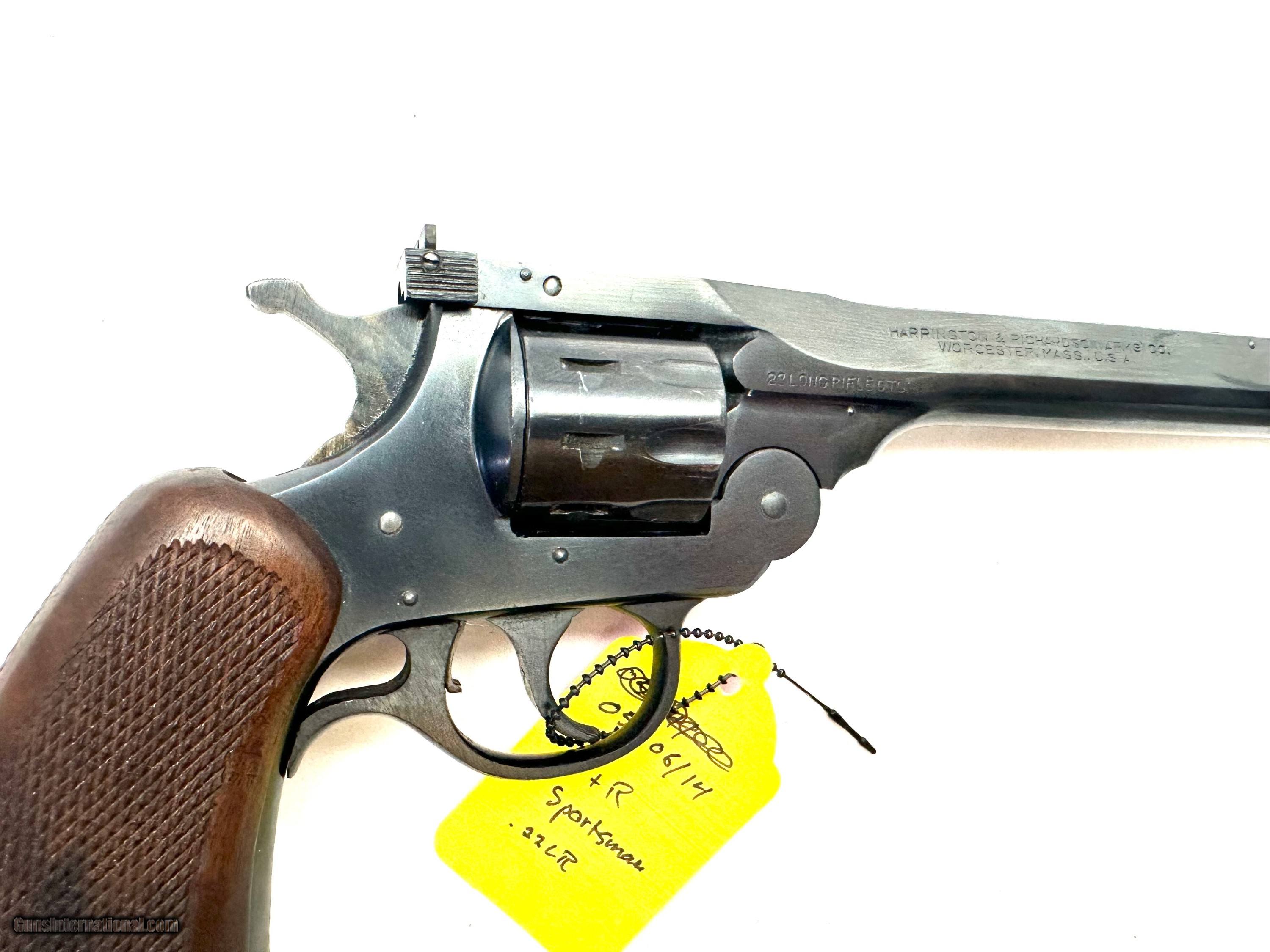 Description: Very Nice Harrington & Richards Sportsman Revolver chambered in .22LR 9 shot. Very good bluing except for some muzzle holster wear. Stong Case coloring on the hammer. Very nice piece. Flat 25.00 shipping fee No Credit Card Fees SOLD Handgun Caliber: .22 Long Rifle Manufacturer: Harrington & Richardson Model: Sportsman Barrel Length: 6 Condition: Very Good Action: Double / Single Action Finish: Blued Item Location: Buxton Maine |