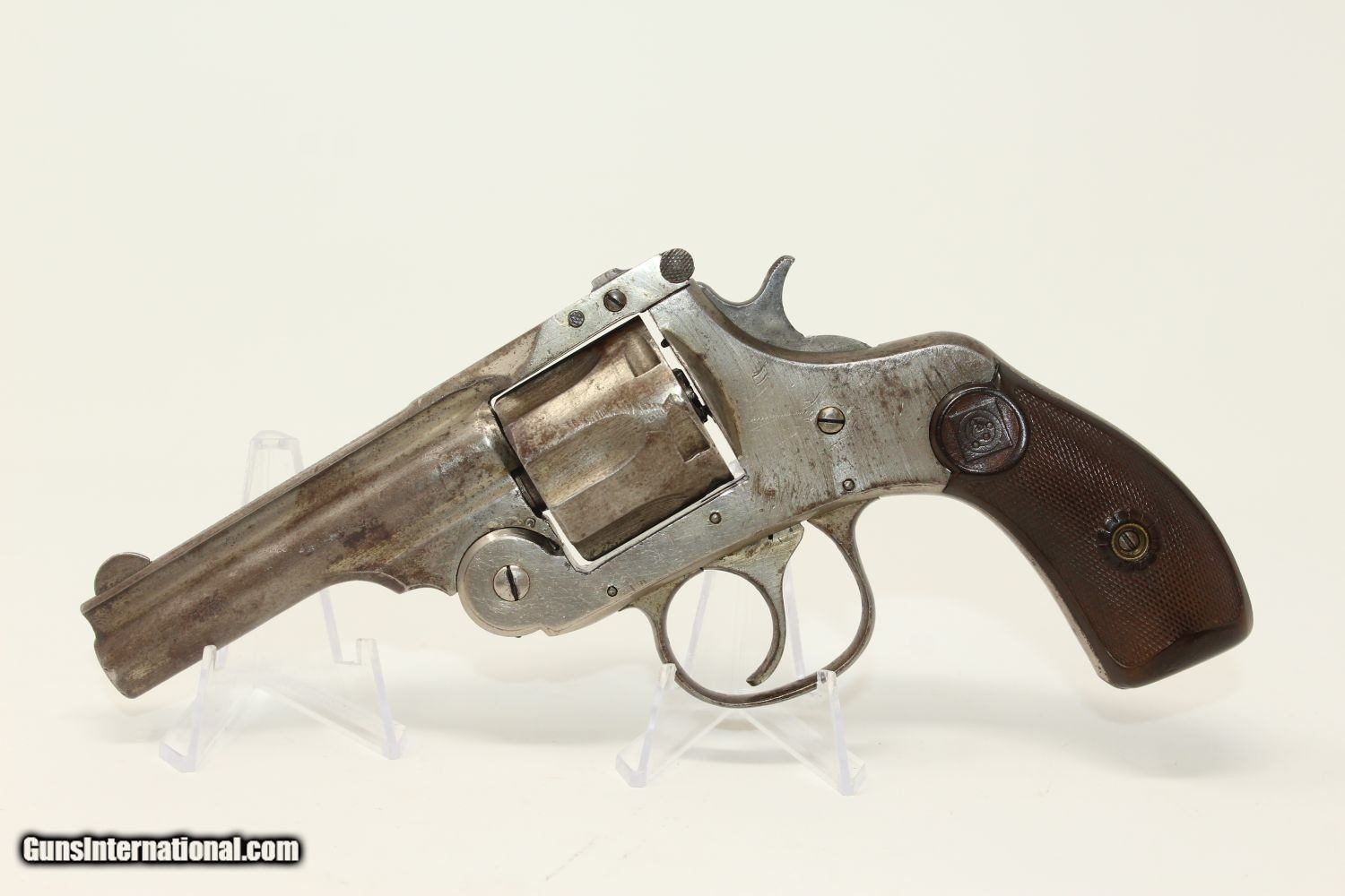 Description: HARRINGTON RICHARDSON Top Break .32 Revolver C&R Early 20th Century H&R + FREE SHIPPING & CC Here we present a Harrington & Richardson Top Break Double Action Revolver chambered in .32 S&W made in Worcester, Massachusetts circa the early 1900s. In 1875 Gilbert Harrington and former Frank Wesson employee, William Augustus Richardson, formed the new Harrington & Richardson Company. In 1888 the firm was incorporated as The Harrington & Richardson Arms Company. Their original capital investment was $75,000. Harrington was president, Richardson was treasurer, and George F. Brooks was secretary. This 6-shot revolver would have been ideal to keep in a pocket or a small holster for self-defense in the turbulent early 20th Century. This revolver has been there and done that. The nickel finish is about 20%. The markings are clear. The grip on the right is missing a piece at the bottom of the grip. The bore is in good shape. The action is not currently functional. The hammer slips as the trigger is pulled and the cylinder does not revolve. Here is one of the favored small frame revolvers of the early-20th Century! This firearm is classified as a Curio & Relic. Barrel is 3-1/4 inches. Caliber: .32 S&W Overall condition as seen in photos. Very Fast. Very Safe. FREE SHIPPING. Will need to be sent to your local FFL or C&R licensee. This firearm is classified as a Curio & Relic. Guaranteed AUTHENTIC & Includes CERTIFICATE OF AUTHENTICITY. ancestryguns $295 #190516 SOLD Curio/Relic: Yes |