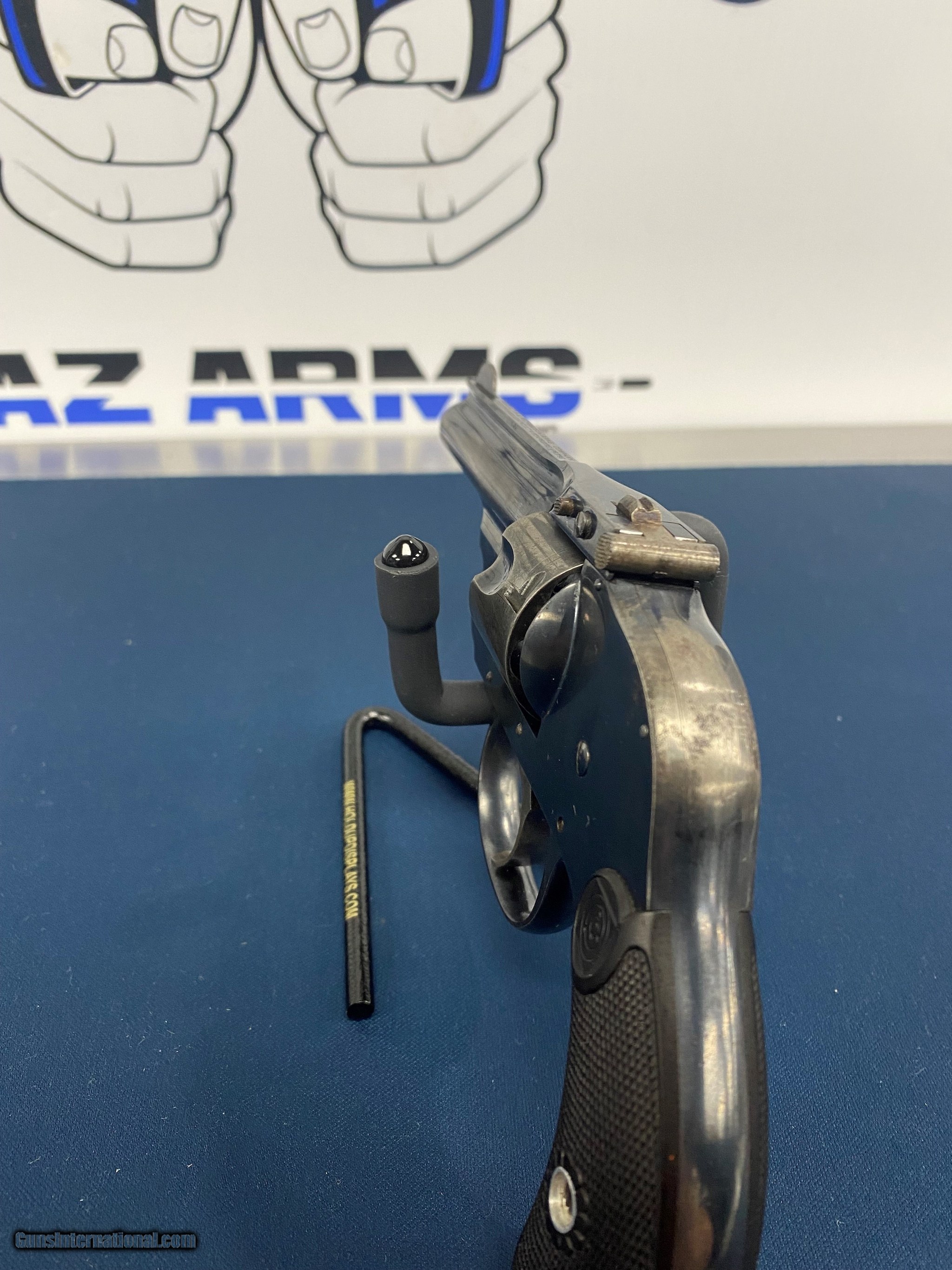 Description: Guns Listing ID: 514423 Black checkered hard rubber grip with H&R trademark target logo. Blued finish and a smooth trigger SOLD Manufacturer: HARRINGTON & RICHARDSON Model: TOP BREAK Caliber Info: .32 S&W Condition: Used - Non-Certified Barrels: 3 BARREL Finish: BLUED |