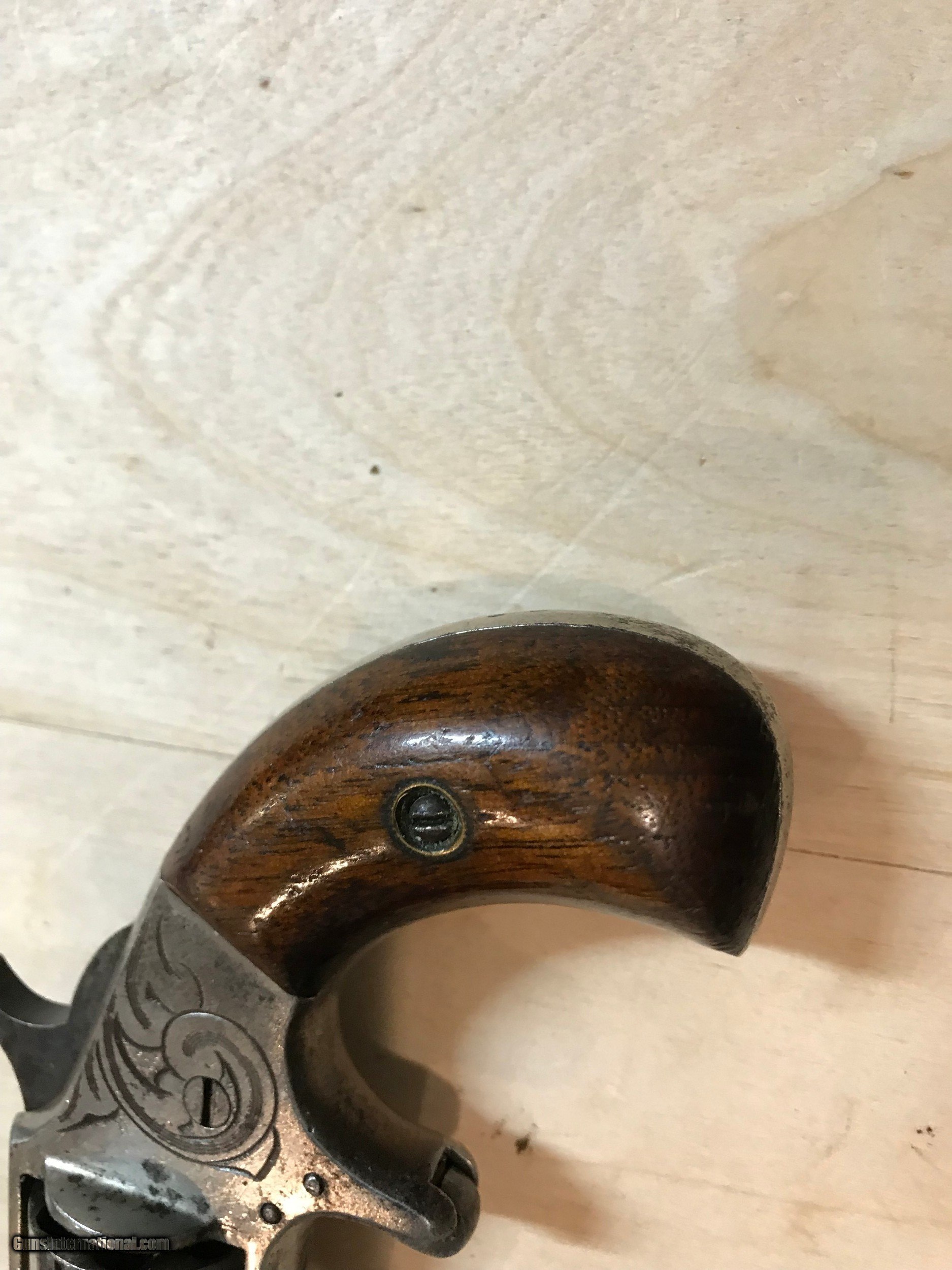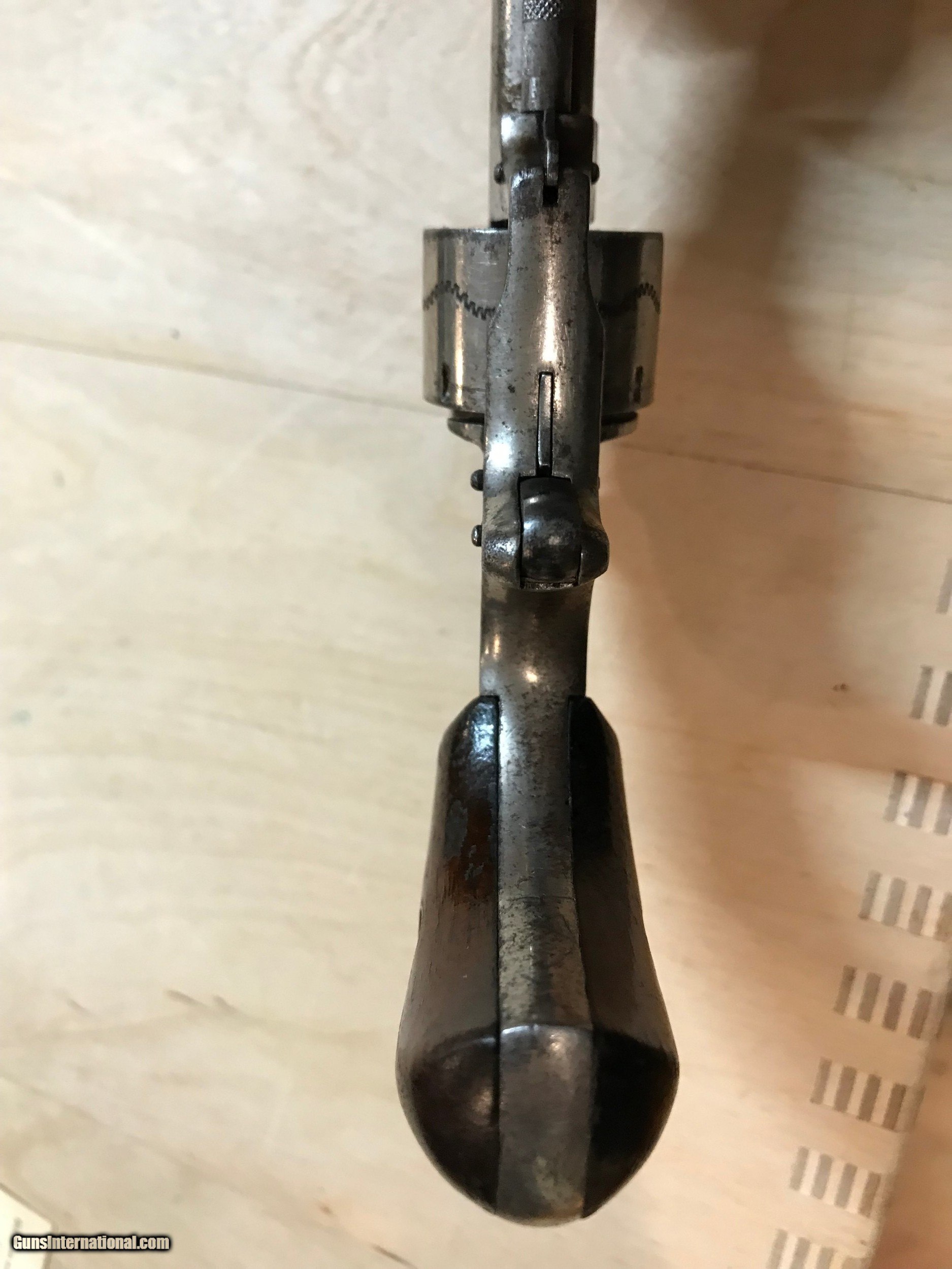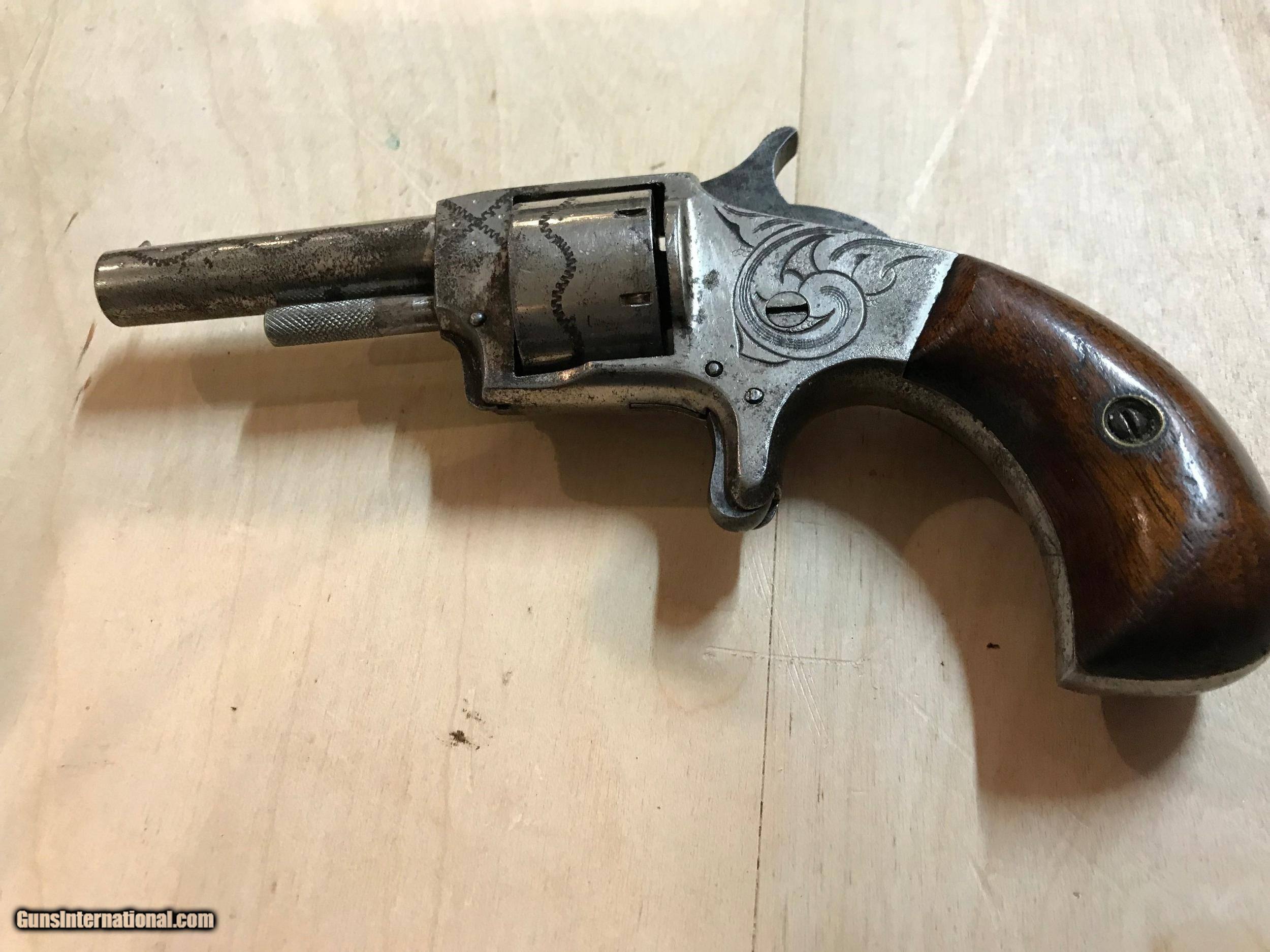 Description: Seven shot 22 short revolver. Nickel plated with simple engraving. Fully functioning. 2" barrel. ANTIQUE NO FFL SOLD Antique: Yes |