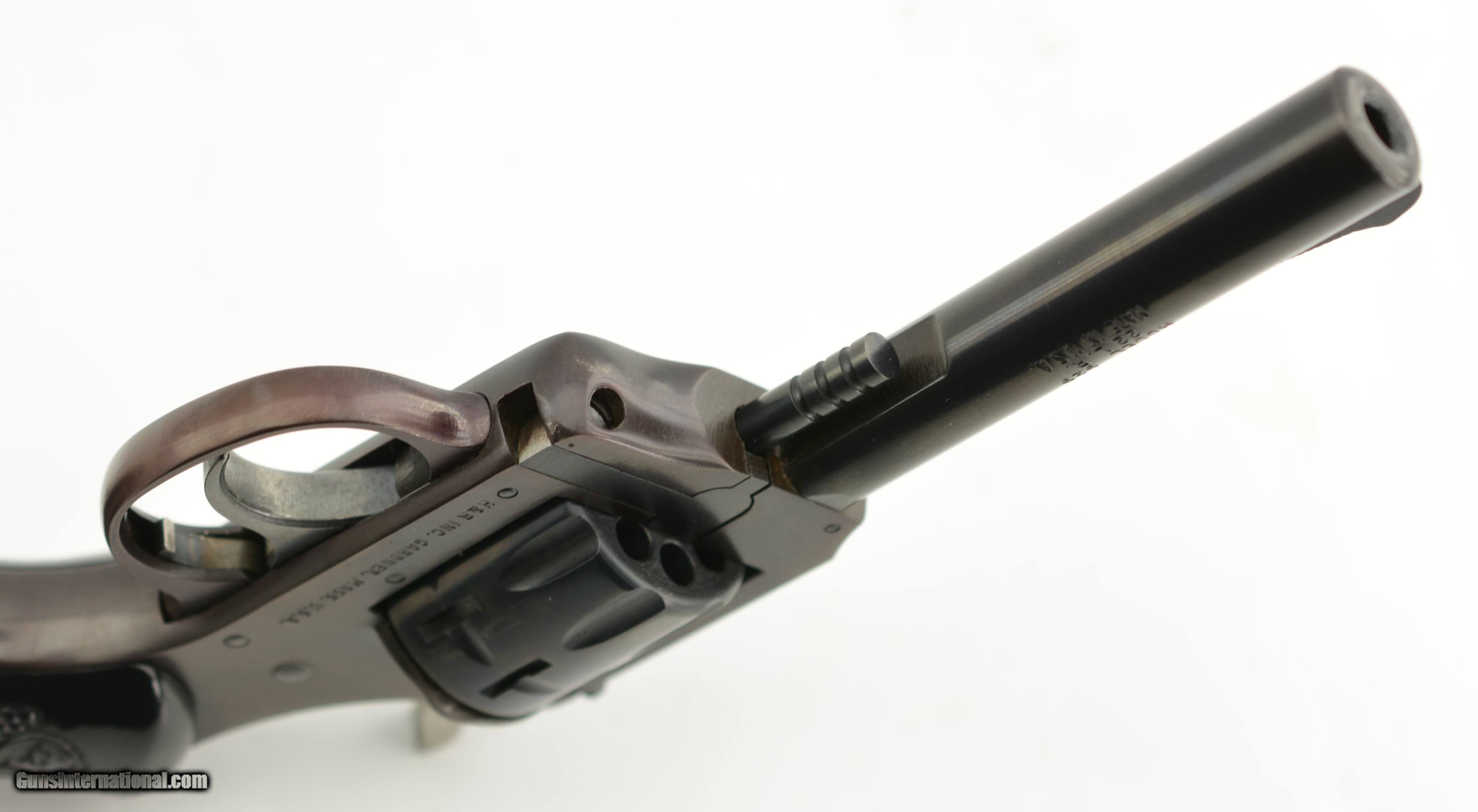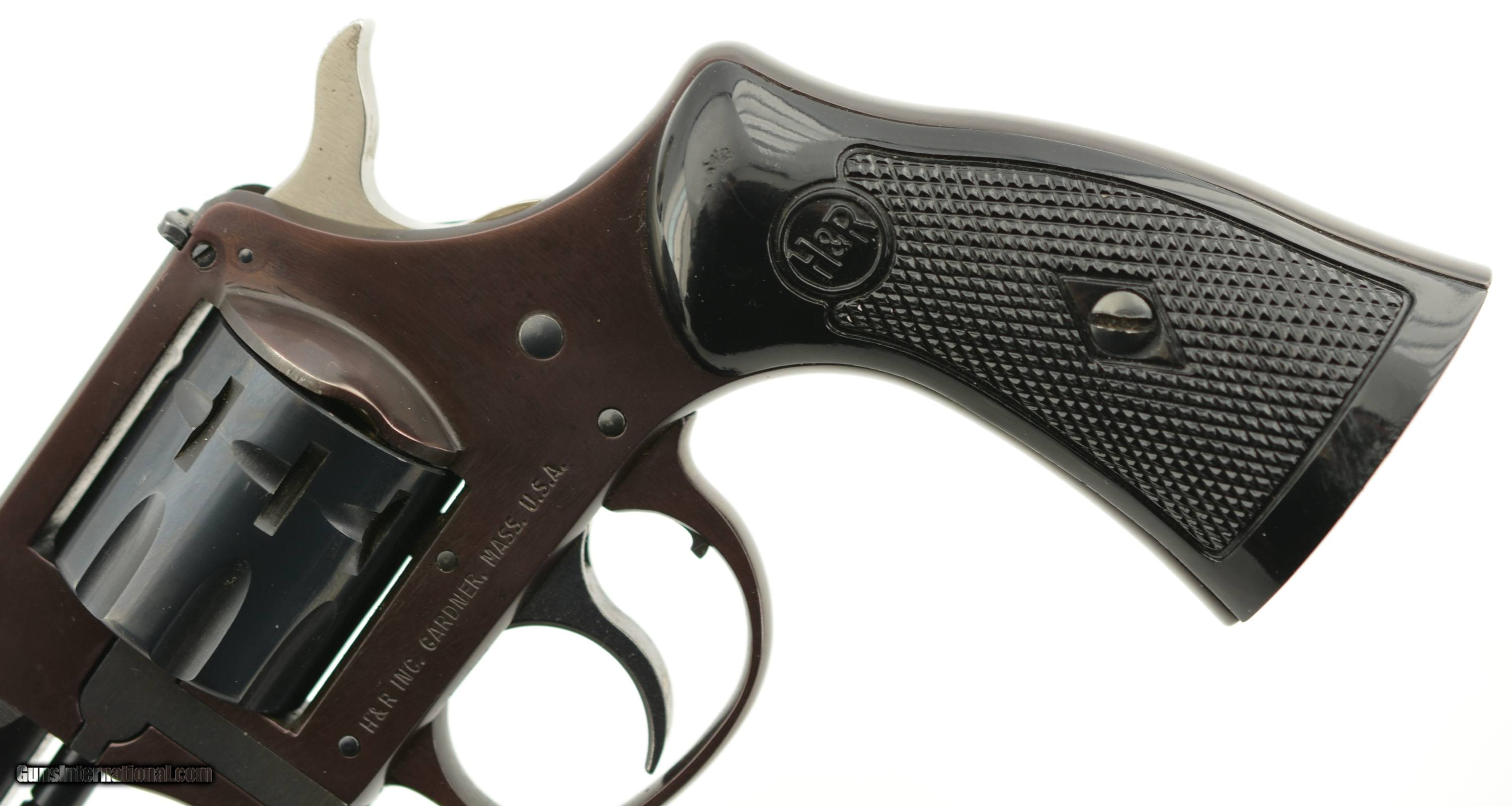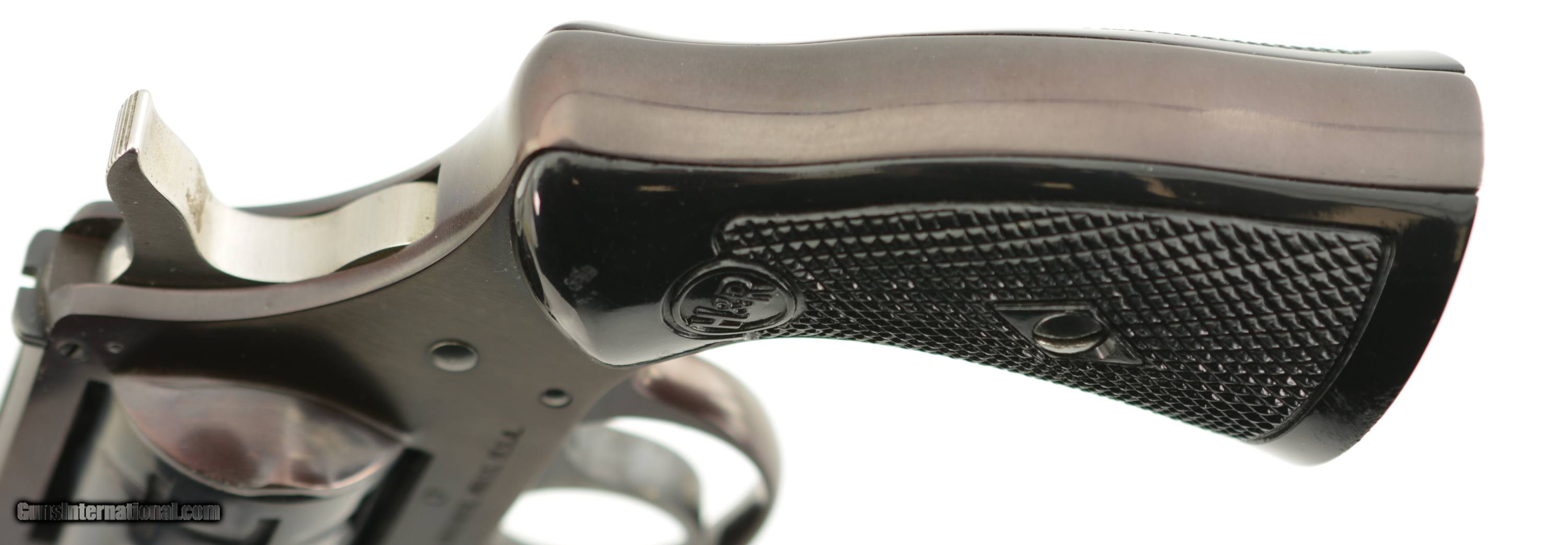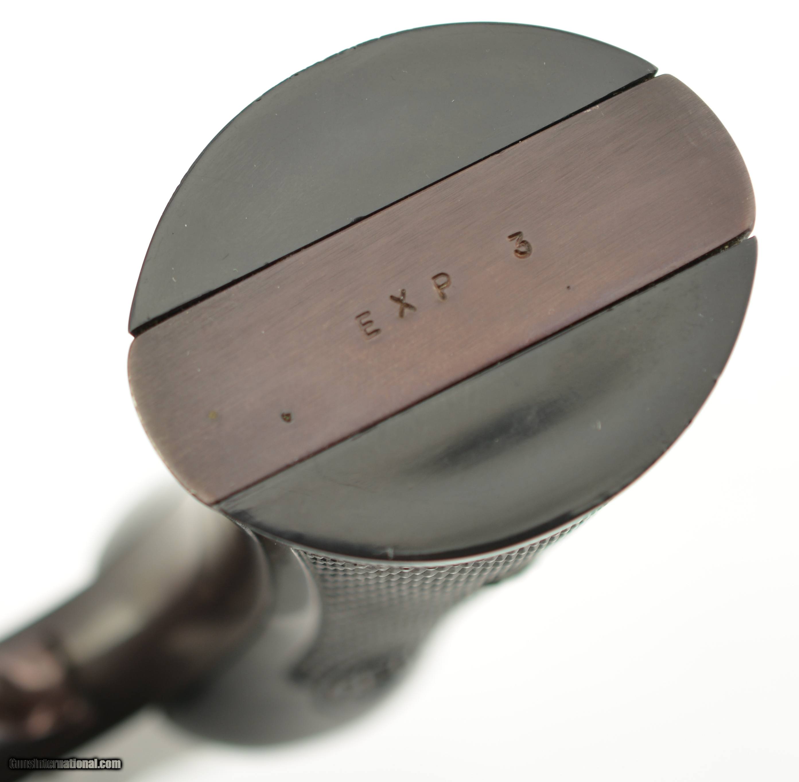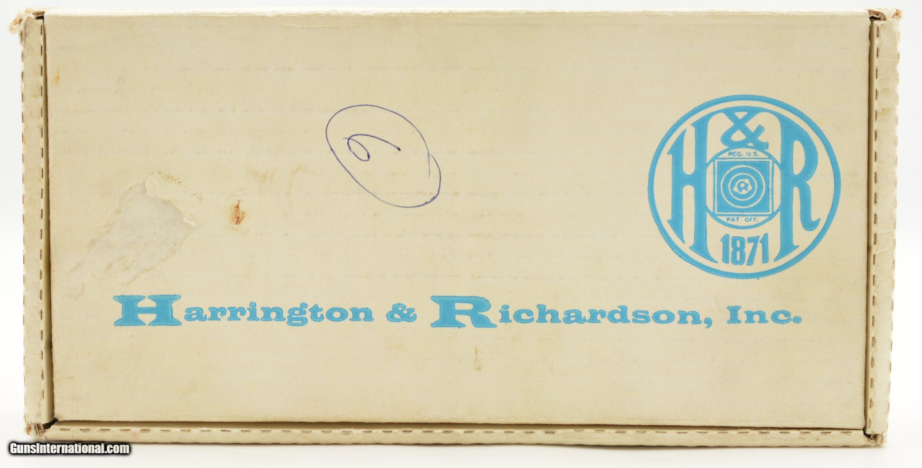 Description: Serial #EXP3, .22 LR, 4" round barrel with a bright, excellent bore. This is a rare experimental model 929 revolver manufactured by H&R with a special steel alloy. This unique solid frame, swing out cylinder revolver is in excellent plus condition retaining about 99% plus original blue showing some scattered mild handling marks and a tiny scuff mark or ding on the left edge recoil shield and one cylinder flat that is unobtrusive. Made with an experimental composition steel frame, it has taken on the deep plum tone commonly seen with high nickel content steel alloys. The hammer remains polished bright and all markings are crisp and clear, the base of the grip stamped with factory experimental serial number. The black checkered plastic “Cycolac" grips remain in near excellent condition, the left panel with some scuffs along the high edges. The action functions well mechanically. It comes in a white, one-piece, factory cardboard box with light blue markings that remains in very good plus condition showing some mild scuffs and edge wear, the sides of the box show numerous internal factory codes and marker writing matched to the gun and an old hang tang marked in pen “SPECIAL STEEL FRAME" is also present. An excellent and interesting factory experimental revolver for the advanced H&R collector. FFL SOLD Manufacturer: H&R Model: 929 Serial Number: EXP3 Caliber Info: .22 LR Gauge Info: .22 LR |