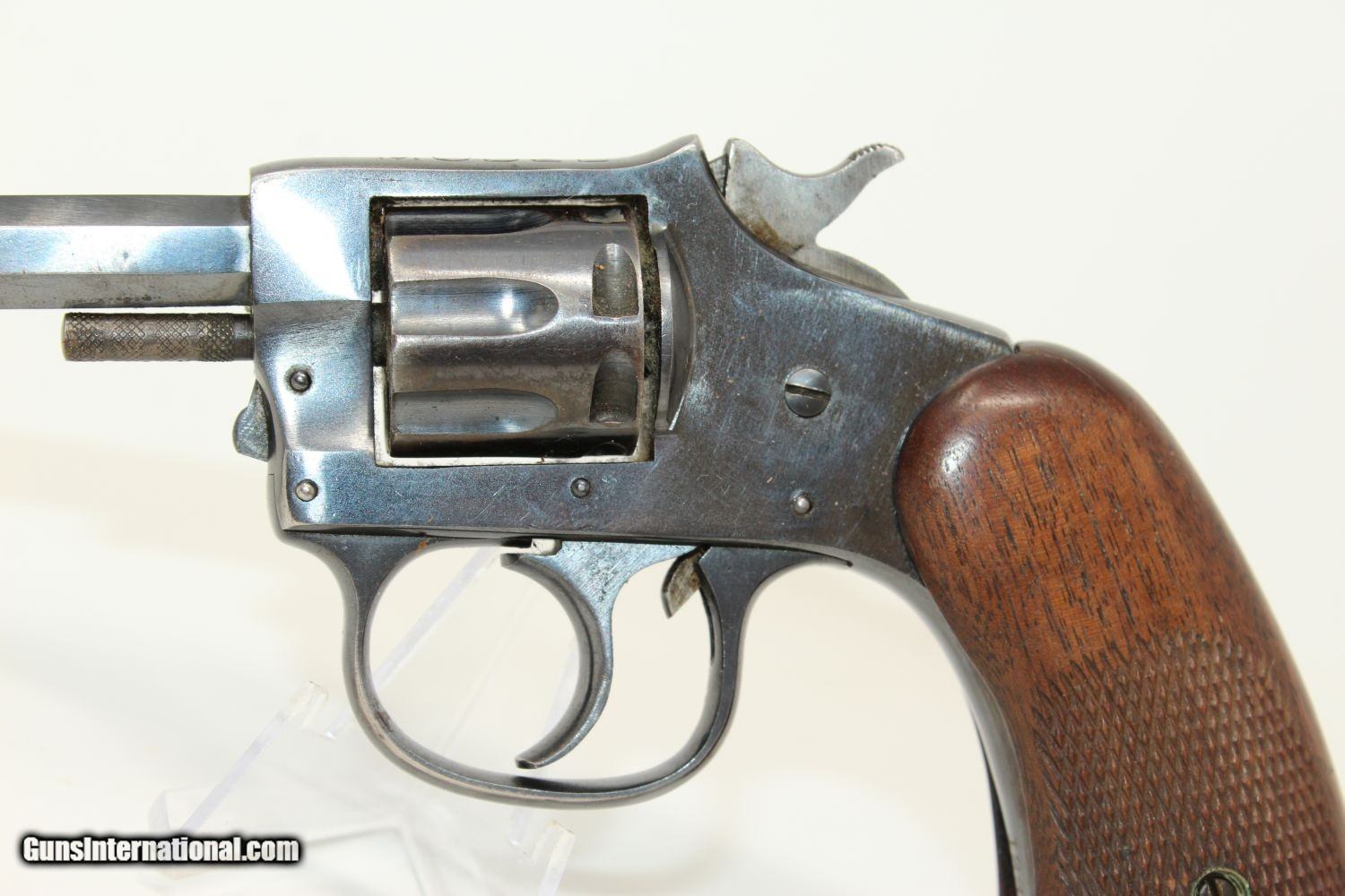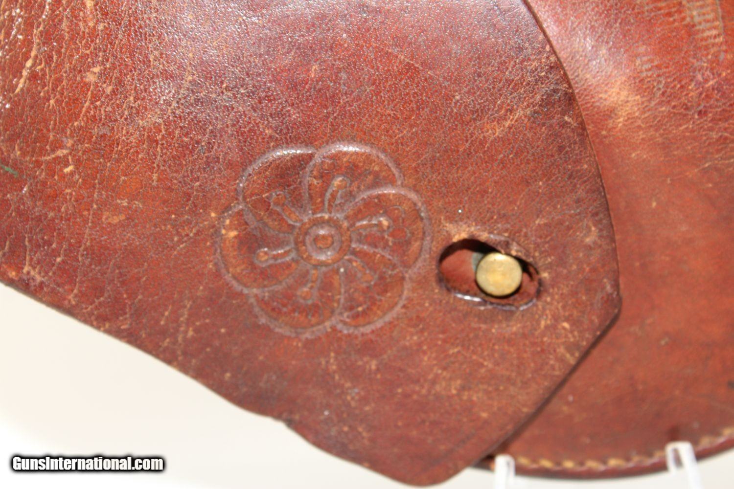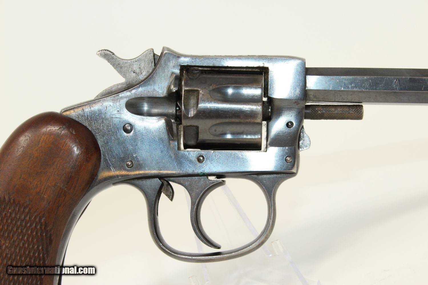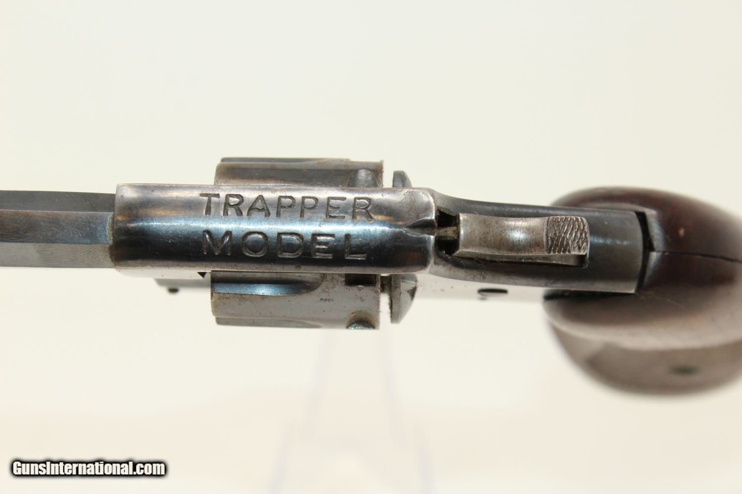 Description: TRAPPER MODEL .22LR Revolver EMBOSSED HOLSTER H&R Solid Frame Double Action .22 Long Rifle C&R Here we present a Harrington & Richardson Trapper Model Double Action Revolver in .22 Long Rifle with its original Embossed Leather Flap Holster, made circa 1924-30 in Worcester, Massachusetts. This rare little revolver holds 7 shots of .22 Long Rifle. It would have been used for going afield and “Plinking” in the early 20th Century. In fact, period company advertisements read: “For Trappers and Campers. An accurate and reliable revolver shooting inexpensive ammunition for target practice and vacation use. Checked walnut grip.” The top strap is marked “TRAPPER MODEL.” and the barrel is marked “H&R ARMS COMPANY/WORCESTER MASS. U.S.A.” and “22 RIM FIRE”. It features the two piece, rounded walnut grip Overall condition is very fine. 95% of the original blue finish remains. The markings are clear. The walnut grip is in fine shape. The bore is bright with sharp rifling. The action is excellent, strong and crisp. The holster is also in fine condition. A very neat little gun from the 1920s! This firearm is classified as a Curio & Relic. Barrel is 6 inches. Caliber: .22 LR, L, S Overall condition as seen in photos. Very Fast. Very Safe. FREE SHIPPING. Will need to be sent to your local FFL or C&R licensee. Guaranteed AUTHENTIC & Includes CERTIFICATE OF AUTHENTICITY. ancestryguns $595 #190218 SOLD Curio/Relic: Yes |
