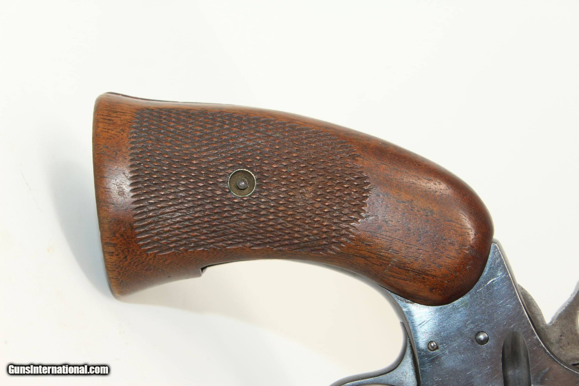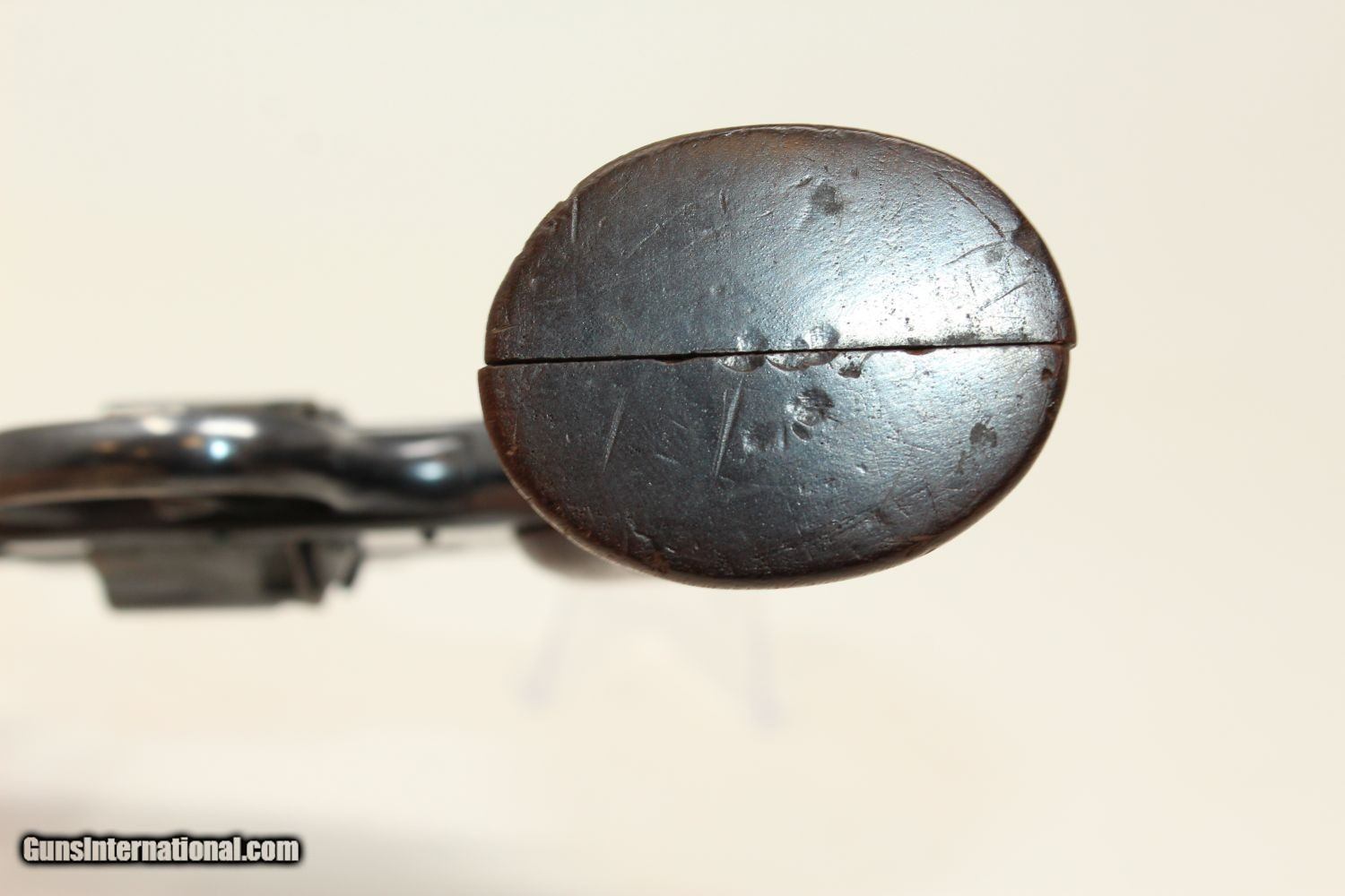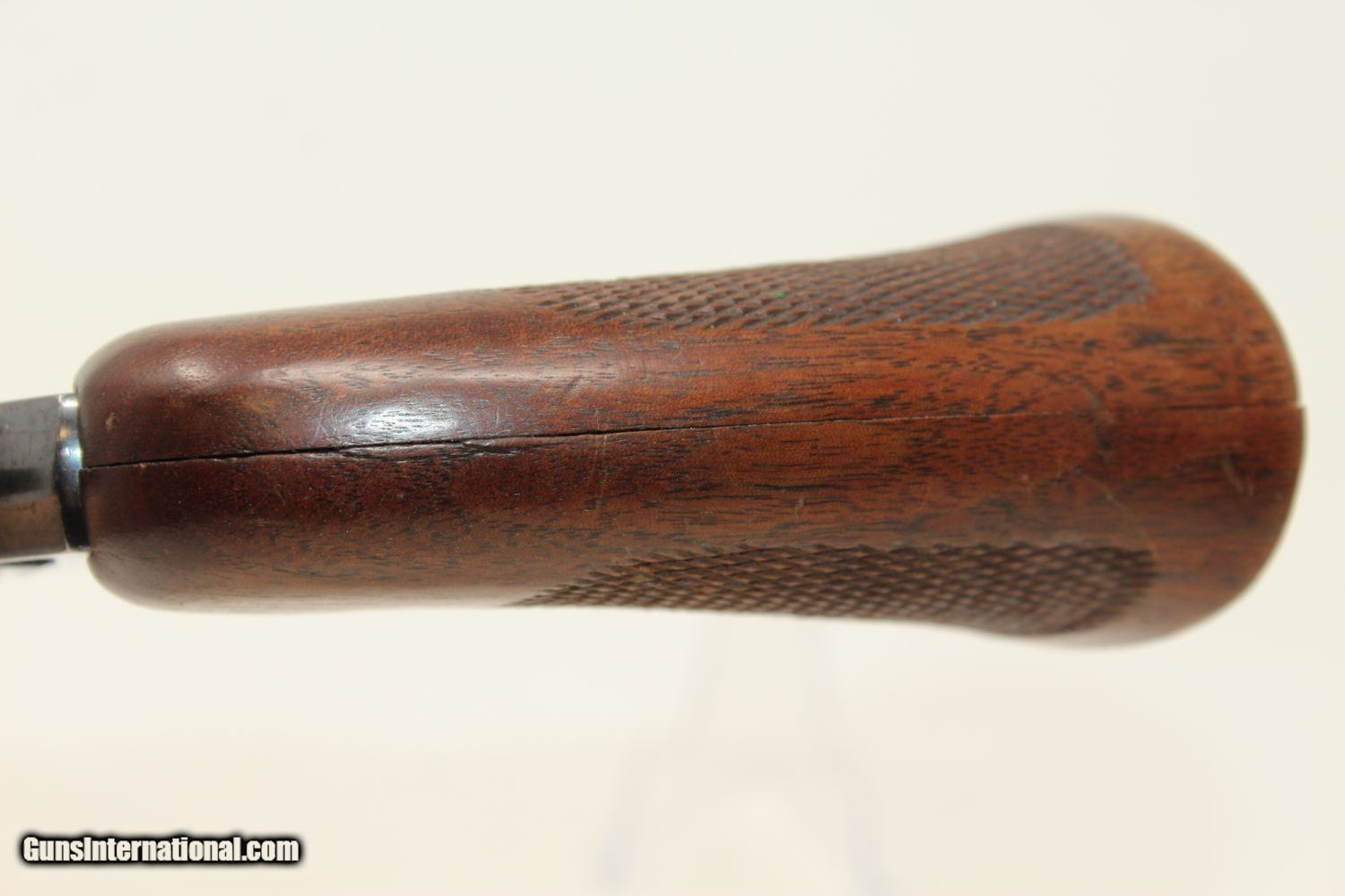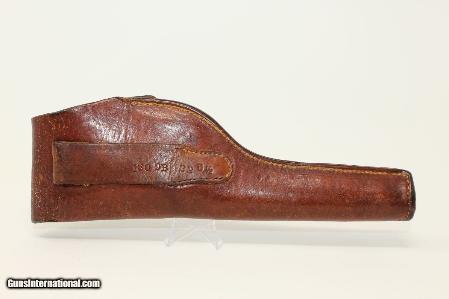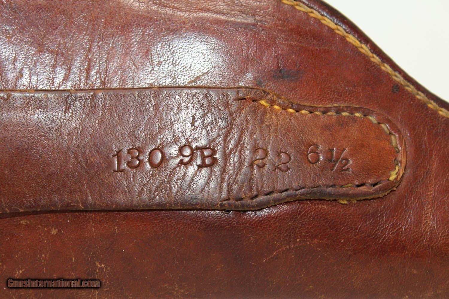 Description: TRAPPER MODEL .22LR Revolver EMBOSSED HOLSTER H&R Solid Frame Double Action .22 Long Rifle C&R Here we present a Harrington & Richardson Trapper Model Double Action Revolver in .22 Long Rifle with its original Embossed Leather Flap Holster, made circa 1924-30 in Worcester, Massachusetts. This rare little revolver holds 7 shots of .22 Long Rifle. It would have been used for going afield and “Plinking” in the early 20th Century. In fact, period company advertisements read: “For Trappers and Campers. An accurate and reliable revolver shooting inexpensive ammunition for target practice and vacation use. Checked walnut grip.” The top strap is marked “TRAPPER MODEL.” and the barrel is marked “H&R ARMS COMPANY/WORCESTER MASS. U.S.A.” and “22 RIM FIRE”. It features the two piece, rounded walnut grip Overall condition is very fine. 95% of the original blue finish remains. The markings are clear. The walnut grip is in fine shape. The bore is bright with sharp rifling. The action is excellent, strong and crisp. The holster is also in fine condition. A very neat little gun from the 1920s! This firearm is classified as a Curio & Relic. Barrel is 6 inches. Caliber: .22 LR, L, S Overall condition as seen in photos. Very Fast. Very Safe. FREE SHIPPING. Will need to be sent to your local FFL or C&R licensee. Guaranteed AUTHENTIC & Includes CERTIFICATE OF AUTHENTICITY. ancestryguns $595 #190218 SOLD Curio/Relic: Yes |
