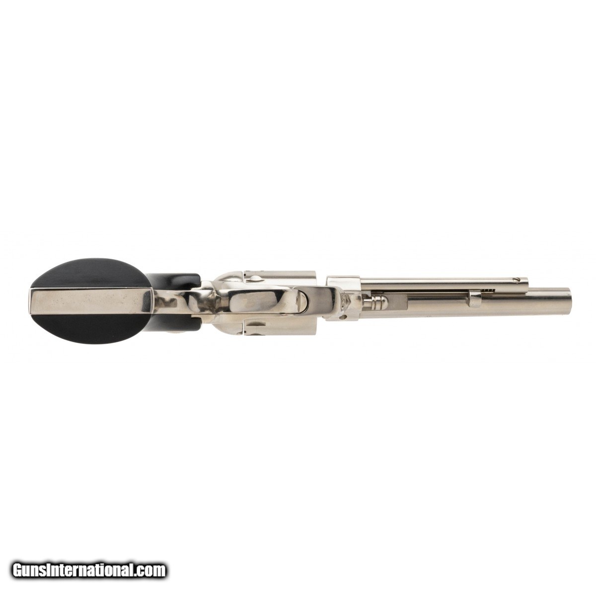 Description: " SN: 1396763. 1960's vintage .22LR with a 5.5"" barrel. 9-shot DA revolver made to look like a single action. Has nickel finish and black grips. Excellent condition with box. (CONSIGNMENT) SOLD |