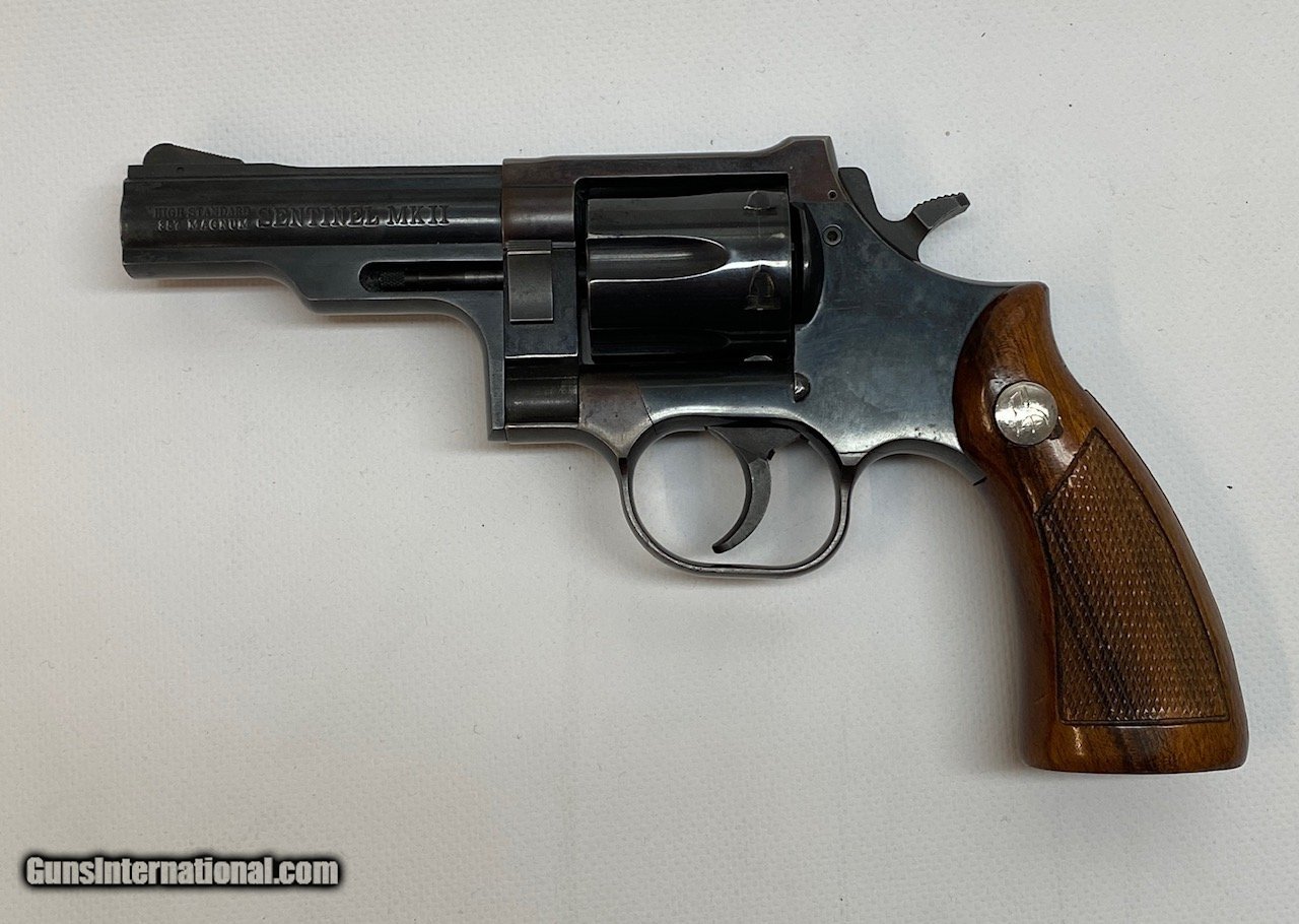 Description: Guns Listing ID: 1252495 Excellent condition High Standard Model Sentinel Mark II SA/DA revolver chambered in .357 Magnum (High Standard Catalog #9402). This revolver was manufactured by Dan Wesson for High Standard in 1974-75. It features a 4-inch barrel (technically about 3.85\"), 6-shot, swing-out cylinder with front-latch cylinder release, wood grips, short-throw hammer, blued finish, steel frame and fixed sights. The frame has a very nice patina to it. SOLD Manufacturer: HI-STANDARD Model: SENTINEL MKII Caliber Info: .357 MAG Condition: Used - Non-Certified Barrels: 4 BARREL Finish: BLUED |