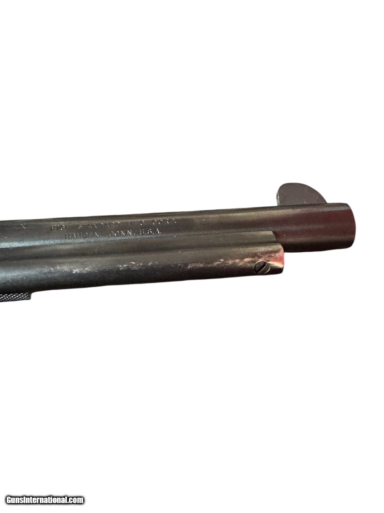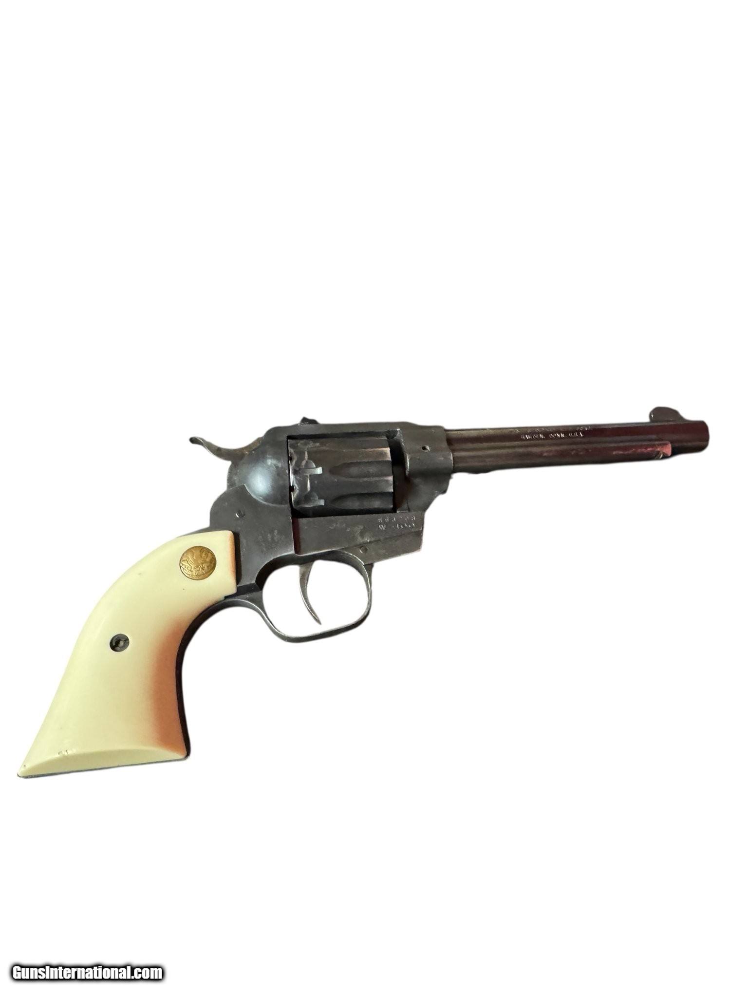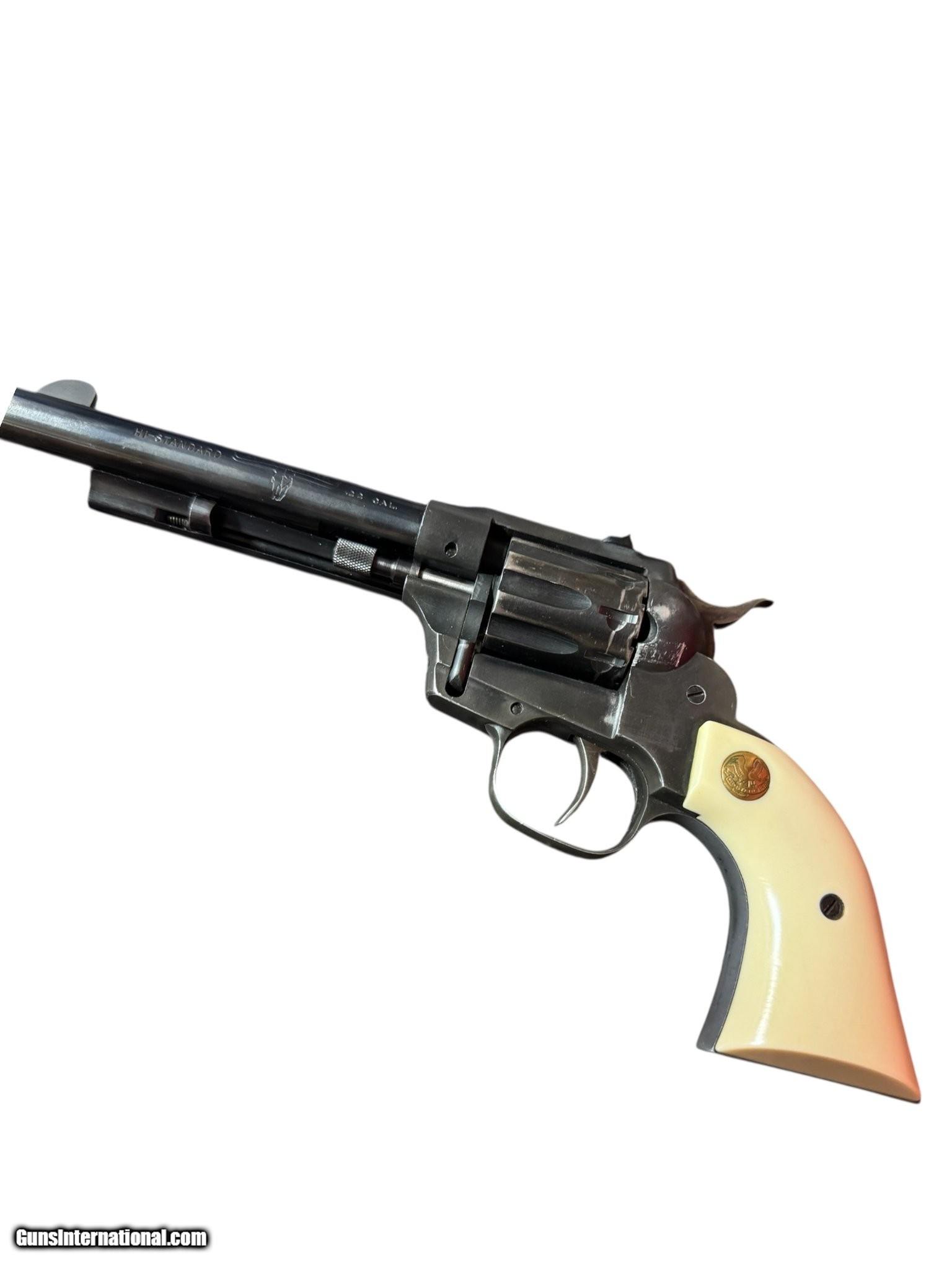 Description: Guns Listing ID: 580478 The High Standard Double-Nine is a double-action 9-shot Western style revolver, first introduced in 1958. It features an aluminum frame, rebounding hammer and 5.5\" barrel. Early Models made in 1958-1959 featured white or black plastic grips. Later Models, after 1960, featured fake stag grips. This Double-Nine Model W-100 was made in 1959 and is in good condition Finished in black and white, is in good condition, has some slight discoloration on cylinder and on hammer itself and under barrel. Manufacturer: HI-STANDARD Model: W-100 Caliber Info: .22 CAL Condition: Used - Non-Certified Barrels: 5" BARREL Action: REVOLVER Finish: BLACK AND WHITE Price: $300.99 Contact Seller |