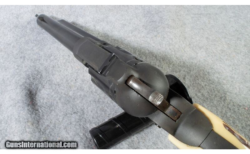 Description: High Standard Double Nine with Gray anodized frame, blued barrel and cylinder. Bright bore. Small crusty spot on front of barrel, see pics) Normal wear from age Plastic 'stag' grips .22 Long Rifle SOLD Chambers: 22 LR Metal Condition: Good Bore Condition: Bright Barrels: 6 Sights: Fixed Item Location: short pump |