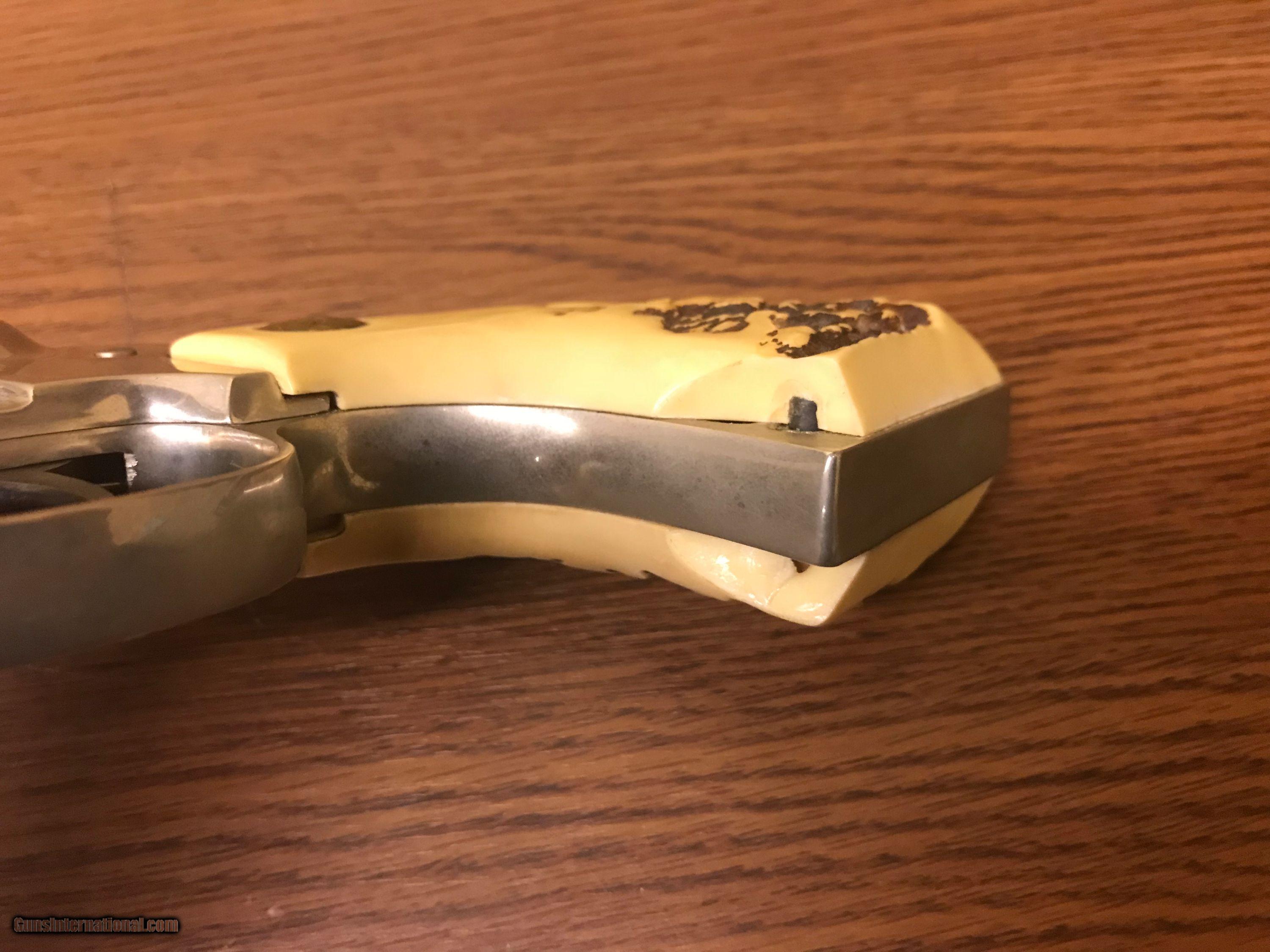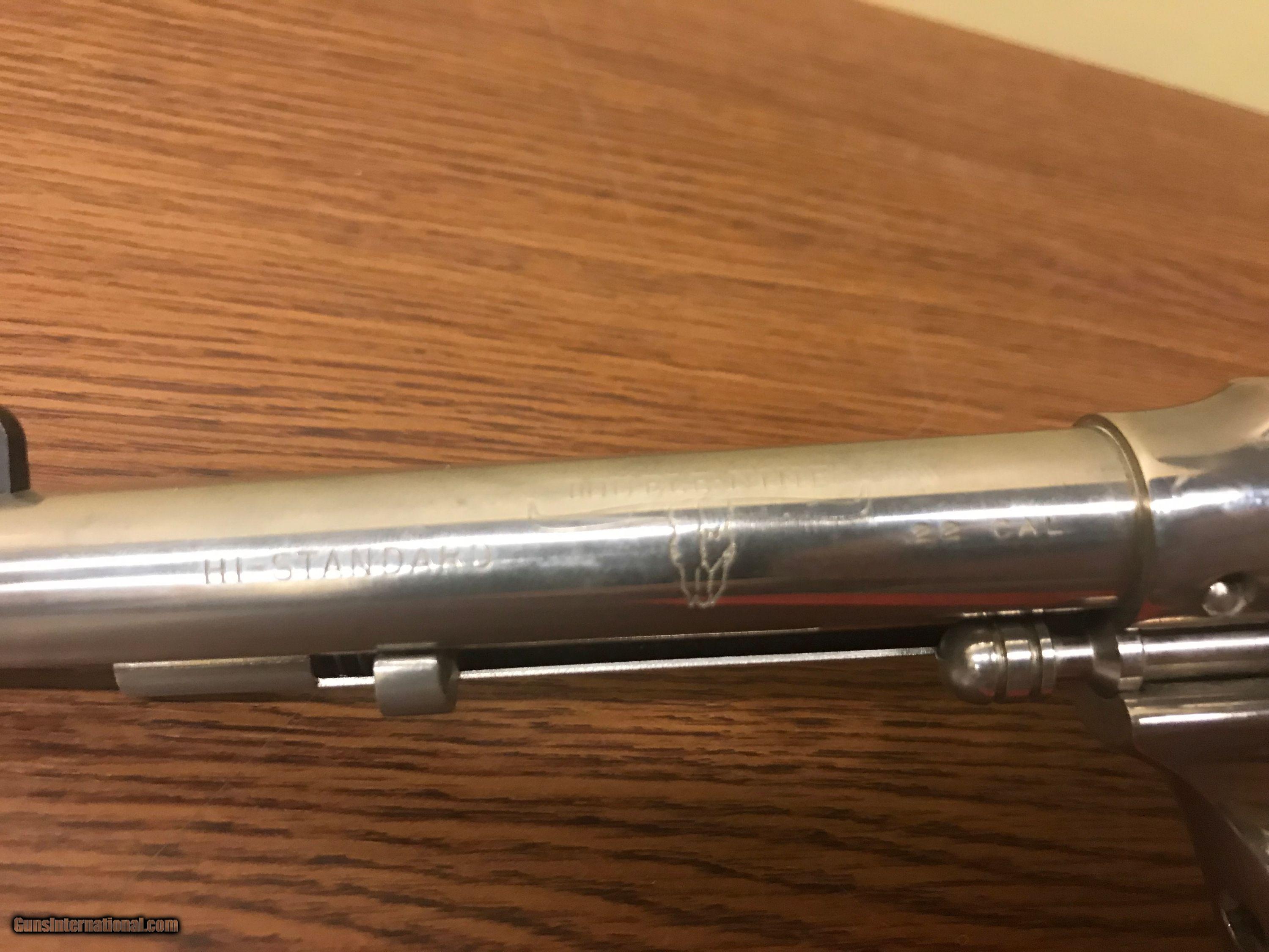 Description: USED, IN GOOD CONDITION HIGH STANDARD MODEL DOUBLE-NINE, 22LR, SS FINISIH, 5 3/4" BARREL, 9-ROUNDS SEE PICTURES FOR DETAILS. We also carry Bushnell, Nikon, Vortex, Leupold, Swarovski and Night Force Scopes. ****PLEASE CALL IN THE WITH THE SELLER’S INVENTORY NUMBER IF INQUIRING ABOUT A FIREARM****** WE DO NOT SHIP FIREARMS AND/OR FIREARMS’ PARTS OUT OF THE 50 UNITED STATES, SO DON’T ASK PRICE REFLECTS PAYMENT BY MONEY ORDER / CASHIERS CHECK. A 3% PREMIUM IS ADDED FOR CREDIT CARDS. WE DO ACCEPT PERSONAL OR BUSINESS CHECKS, BUT THERE IS A 10 DAY GRACE PERIOD ON THEM. Shipping is $40 for handgun and $30 for long gun. Shipping to Alaska and Hawaii will be more based on weight of firearm. WE DO OFFER A LAYAWAY PLAN. YOU CAN LAYAWAY FOR 30, 60, OR 90 DAYS. THERE IS A $5.00 CHARGE FOR EVERY 30 DAYS ITEM IS ON LAYAWAY. WE ALSO REQUIRE A 20% DOWN PAYMENT ON LAYAWAY ITEM. LAYAWAYS ARE NON REFUNDABLE. HERE IS HOW THIS PROCESS WORKS. YOU WOULD CALL US AT 540-337-9218 WITH LISTER # TO PURCHASE THE GUN. THEN ONCE I HAVE RECEIVED PAYMENT AND AN FFL (FEDERAL FIREARMS LICENSE) FROM A LICENSED DEALER IN YOUR AREA OF YOUR CHOICE. WE WILL THEN SHIP THE GUN TO THEM. YOU WOULD THEN PICK UP THE GUN AT YOUR LOCAL DEALER AND DO PAPER WORK THERE. Please have your FFL Dealers contact information when you call. DOMINION OUTDOORS 15 ANGELA COURT FISHERSVILLE ,VA 22939 540-337-9218 540-337-2422 fax M – F 9 to 6 ETZ Sat 9 – 4 ETZ ****PLEASE CALL IN WITH THE SELLER’S INVENTORY NUMBER**** ***PLANO HARD CASES AVAIABLE FOR PURCHASE $19.99 WITH THE PURCHASE OF A FIREARM.** SOLD |