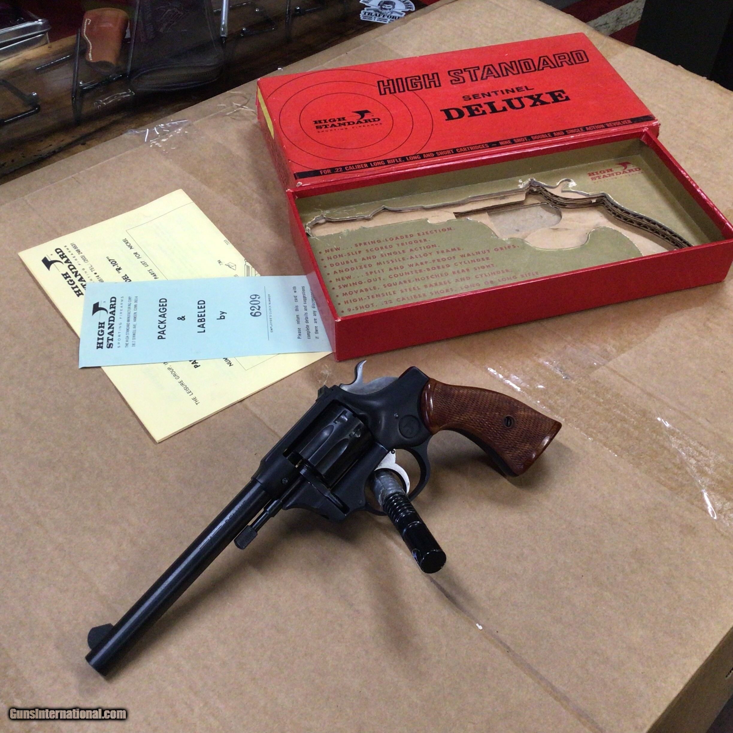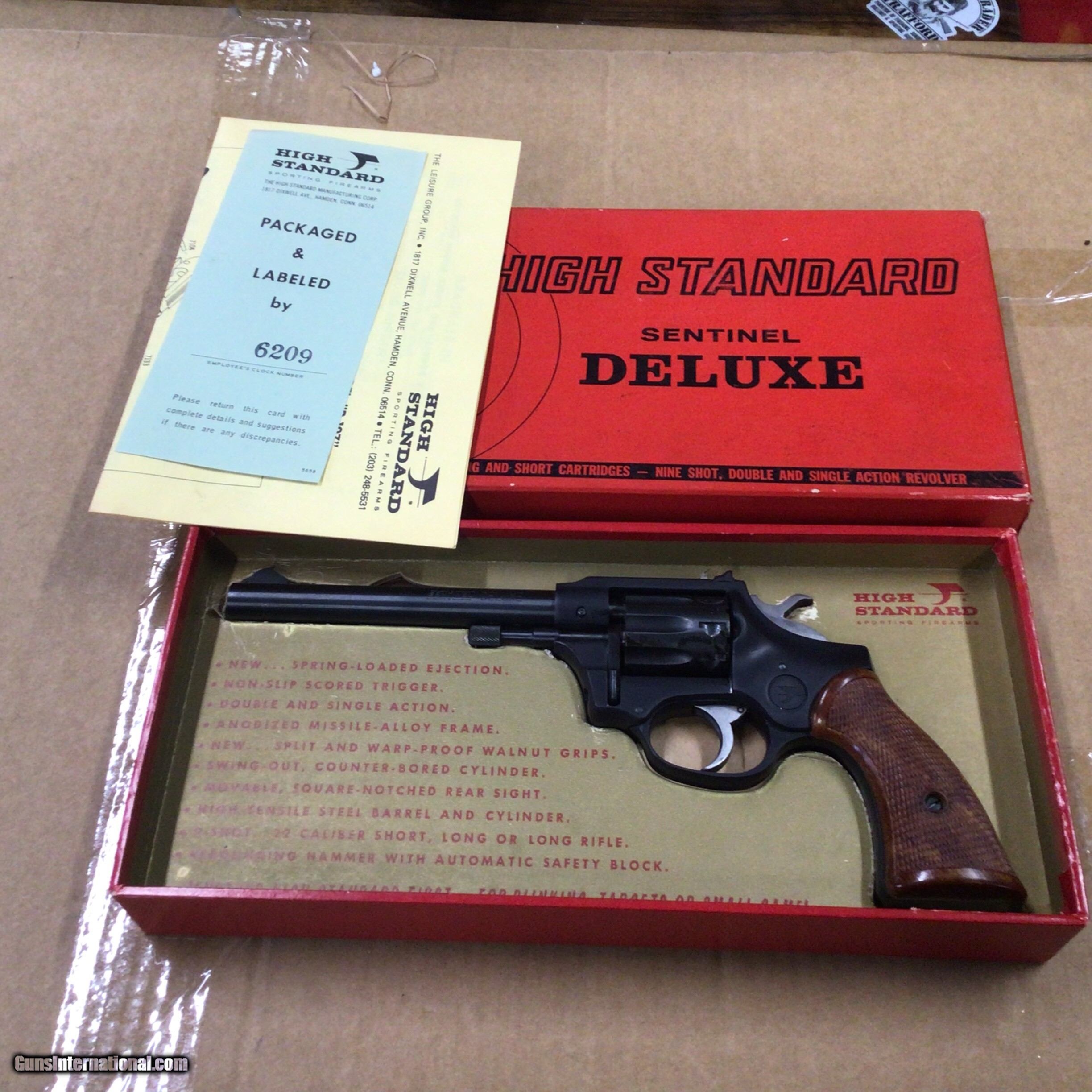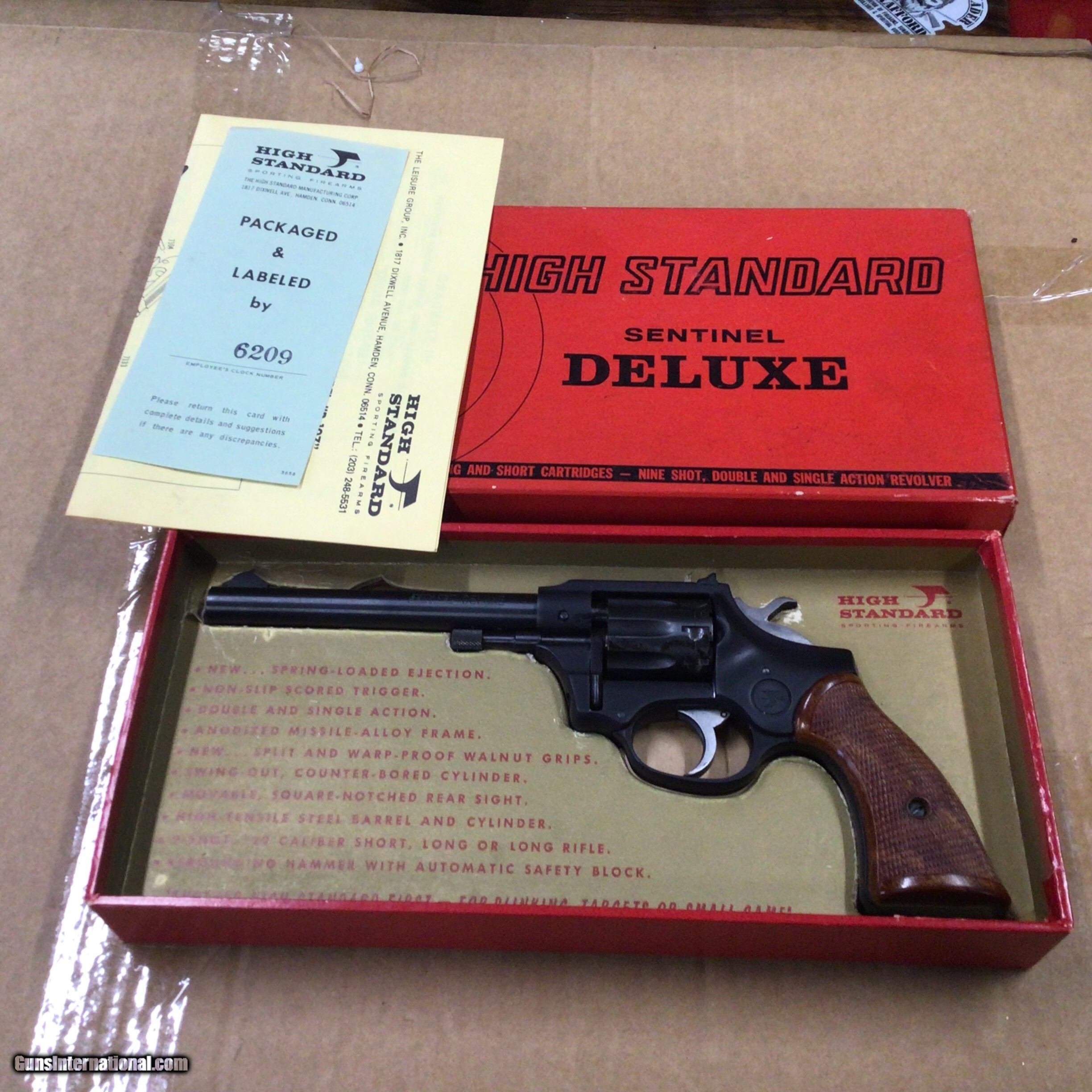 Description: For sale we have a High Standard Sentinel Deluxe 22LR. It remains unfired in the original box with papers. For more info give us a call 412-554-7891. SOLD |