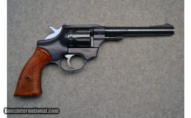 Description: High Standard Sentinel Imperial .22 Cal. 9-Shot Revolver. High Standard introduced their Sentinel revolver line in 1955, at the request of Sears Roebuck which was a major customer and owned quite a bit of High Standard stock. Sears wanted a low-cost kit gun or "tackle box" revolver to sell under their J.C. Higgins brand. It was sold by Sears as the J.C. Higgins Model 88. The J.C. Higgins guns were given distinctive grips, cylinder flutes, and cylinder release pins. Private label versions of the Sentinel were later made for Western Auto (the Revelation Model 99) and Armamex (Colonel Rex Applegate's company in Mexiico). It was advertised to have an anodized aluminum frame, high-tensile carbon steel barrel and cylinder, single-stroke multiple ejection, a swing-out counterbored cylinder, a movable square-notched rear sight, a non- slip scored trigger, a diamond-checkered grip (though they didn't mention it was plastic), and target accuracy. .22 Long Rifle SOLD Barrels: 6 Weight: 2 lb Item Location: christiana |