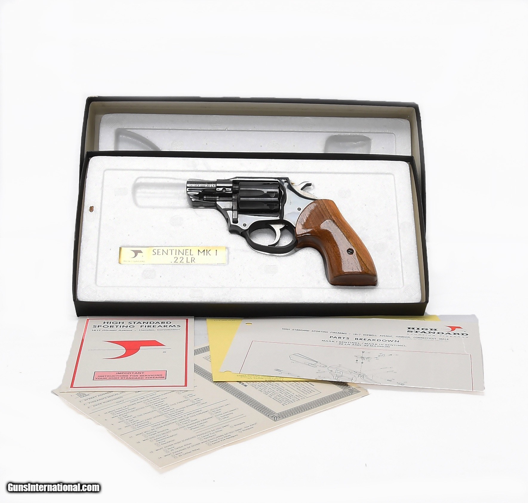 Description: High Standard Sentinel Mark I .22 lr double action revolver, 2" blue. This revolver appears to be NIB, but I'm pretty certain that it was at least test fired! Regardless the metal finish is 99%+. The box and paperwork is equally as minty as the revolver itself. SN: S12728 SOLD |