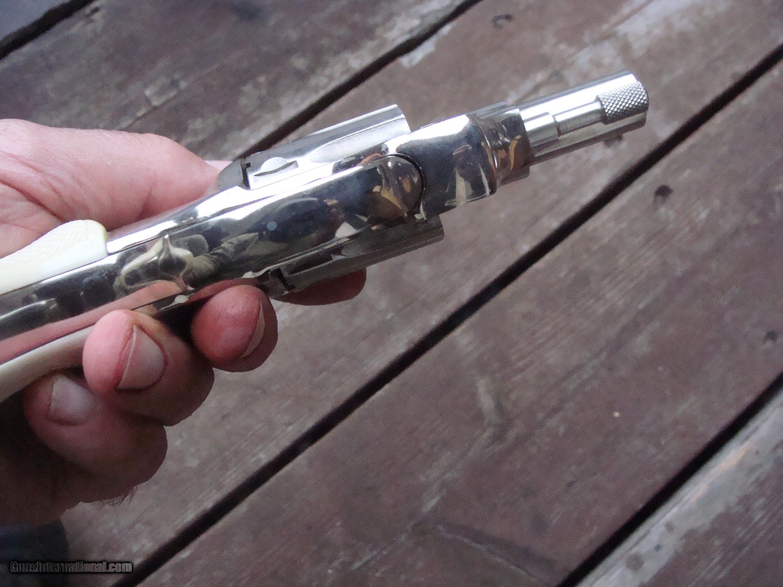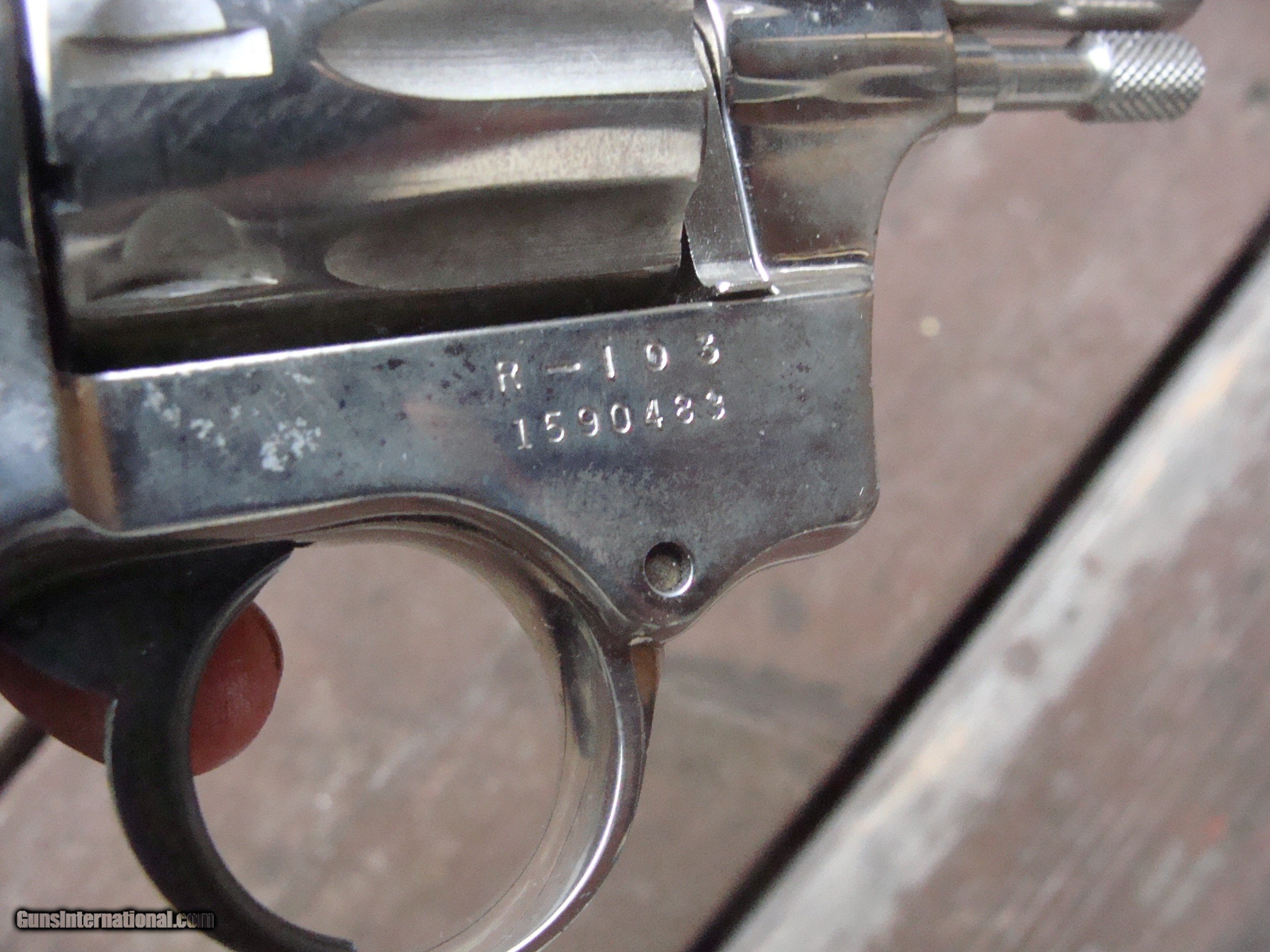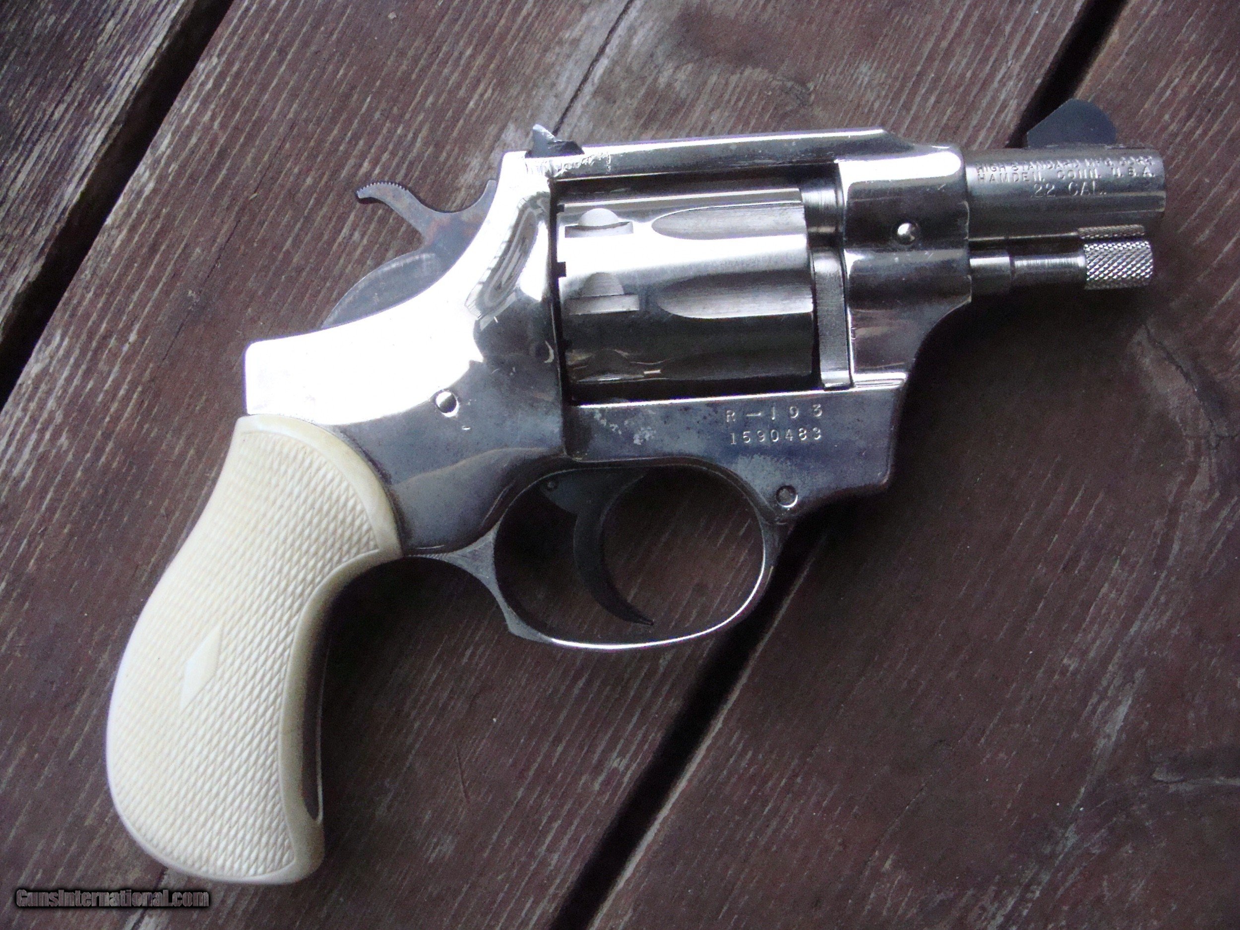 Description: Likely made in the 60's or possibly the early 70's There are minor wear marks and some imperfections in the nickel but this is still a very nice double action 22 9 shot revolver. Locks up tight. This is not a cheap gun, heavy and substantial. Chambered in 22LR (not 22 mag) Shipping is $ 25.00 PLEASE READ EVERYTHING BELOW IN BOLD: IF IT DOES NOT SAY NEXT TO THE PRICE..."SALE PENDING OR UNDER DEPOSIT"...IT IS AVAILABLE. WE DO NOT REPLY TO INQUIRIES THAT SAY "INTERESTED IN THIS GUN" OR "IS IT AVAILABLE" IF YOU WOULD LIKE TO BUY THIS OR ANY OF OUR GUNS WE SUGGEST YOU PHONE US; WE ARE OFTEN AVAIALABLE LONG HOURS. IF YOU ARE INTERSTED IN A GUN THAT IS UNDER DEPOSIT AND WOULD LIKE TO BE NOTIFIED IF A SIMILAR GUN COMES IN DROP US A LINE AND WE WILL MAKE EFFORTS TO CONTACT YOU WHEN ONE DOES COME IN. WE HAVE OVER 2000 SALES ON ALL SITES WITH AN A+ RATING ON ALL WE ALSO KEEP AN INVENTORY OF OLDER PERIOD CORRECT SCOPES; CALL WITH NEEDS WE MOSTLY PICK VERY CLEAN AND LIGHLTY USED GUNS. WE ARE HAPPY TO TAKE CONSIGNMENT GUNS AND COLLECTIONS OR WILL BUY YOURS OUTRIGHT. WE SOMETIMES ARE EMPLOYED FOR ESTATE PURPOSES AND VALUATIONS. CT RESIDENTS MUST CONTACT US TO UNDERSTAND OUR IN STATE TRANSFER POLICIES. PAYMENT USPS MONEY ORDER ONLY AT THIS TIME. ( WE CAN TAKE A DEPOSIT WITH A CARD BUT THE GUN MUST BE PAID WITH A USPS MONEY ORDER) IT IS THE BUYERS RESPONSIBILITY TO GET US A COPY OF YOUR RECEIVING FFL'S LIC AND A COPY OF YOUR PHOTO ID BEFORE THE GUN SHIPS YOU MUST CALL YOUR FFL.WE DO NOT CALL FOR YOU. LAYAWAY PURCHASES NOT COMPLETED OR ANY RETURNED ITEM UNLESS NOT AS DESCRIBED OR DAMAGED ARE SUBJECT TO A 10% RELISTING/RESTOCKING FEE AND MUST BE RETURNED WITH NO NEW MARKS OR SCRATCHES, SENT BACK INSURED, PRIORITY SIGNATURE REQUIRED. ALL INFORMATION CONTAINED HEREIN IS BELIEVED TO BE ACCURATE BUT IS NOT GUARANTEED. WITH ANY OLDER OR USED GUN IT SHOULD BE EXAMINED BY A GUNSMITH OR COMPETENT EXPERT PRIOR TO USE) Welcome, Farmington River Trading Company Expiring Listings New Messages Add to FavoritesFree RegistrationTutorial VideosContestNew TodayNew This WeekArticlesGun AppraisalsAffiliate ProgramsFree TargetsFAQ's - Contact USGun Links