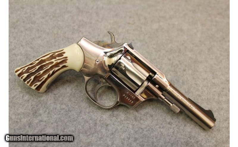 Description: This High Standard Sentinel R-101 features, hoax stag grip, case-hardened hammer and trigger, nickel finish, and an aluminum frame for weight reduction. .22 Long Rifle SOLD Metal Condition: Excellent Bore Condition: Bright Barrels: 4 Inches Weight: 1.4 lbs. Item Location: Hoffman Estates, IL |