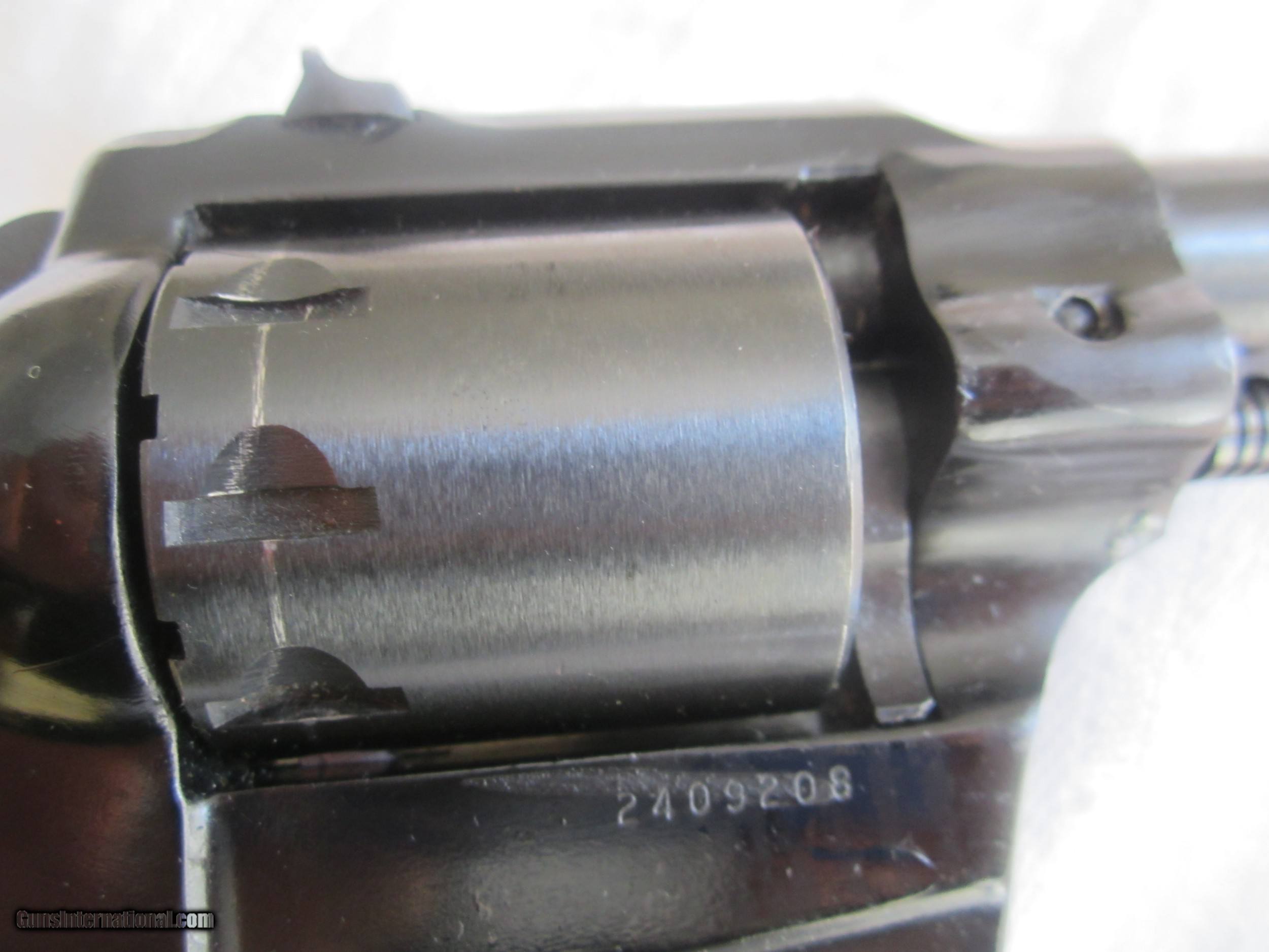 Description: Made in 1973 and in about 98+% condition as to the dark blue/black finish. It holds 9 .22LR cartridges, fires double action, has a 5 & 1/2' barrel with fixed sights.The grips are handsome imitation Staghorn with emblems in both grips. . Included is the original black cardboard box in very good condition along with the warranty card, and parts/instruction sheets. It has seen little use. A handsome looking revolver made in the desired Hamden factory and very collectable. A NO interest payment plan is available See more High Standards and others at "ROMSEY". SOLD Manufacturer: High Standard Mfg. Corp., Hamden, Conn. USA Model: THE MARSHAL REVOLVER Serial Number: 2409208 Barrel Length: 5 & 1/2 Caliber Info: .22LR Bore: rifled Chambers: 9 Condition: 98 +% Metal Condition: 98% Wood Condition: grips -excellent Bore Condition: bright/shiney Barrels: one Barrel Type: round Action: double action Triggers: one Stock: imitation staghorn Finish: blue/black Sights: fixed Manufacture Date: 1973 Engraving: none Extras: box & papers Item Location: San Diego, California |