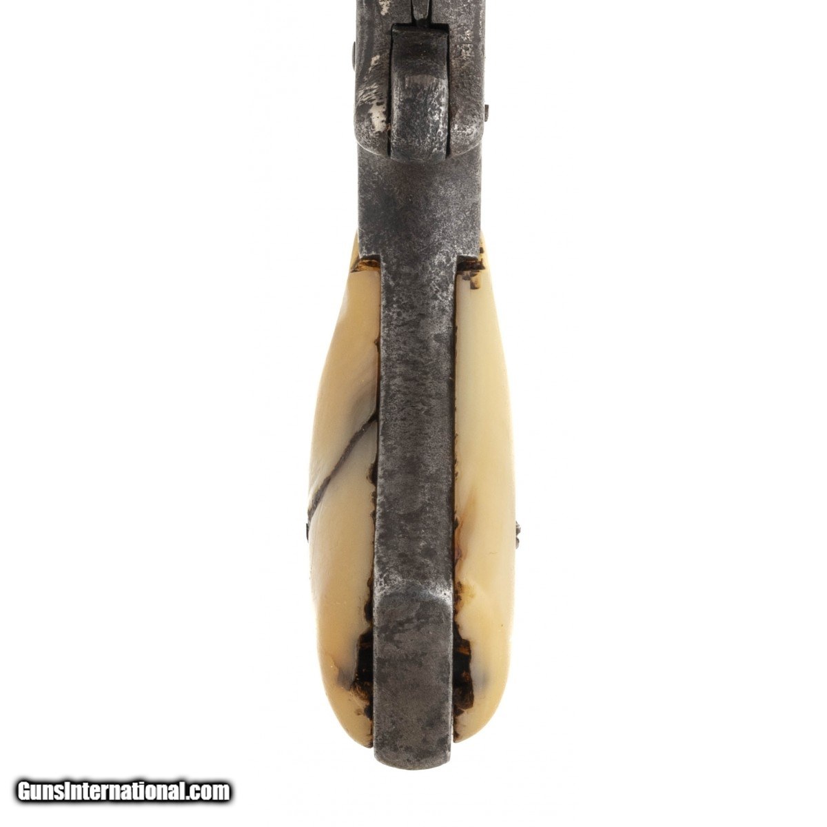 Description: " Serial Number NSN. Made circa 1880s to 1890s. 32 S&W caliber with a 3 ½" barrel, This gun still has some original nickel finish, but is worn overall. Grips are two piece pearls with the right hand side cracked. This gun comes with a great slim jim style holster with flap. SOLD Antique: Yes |
