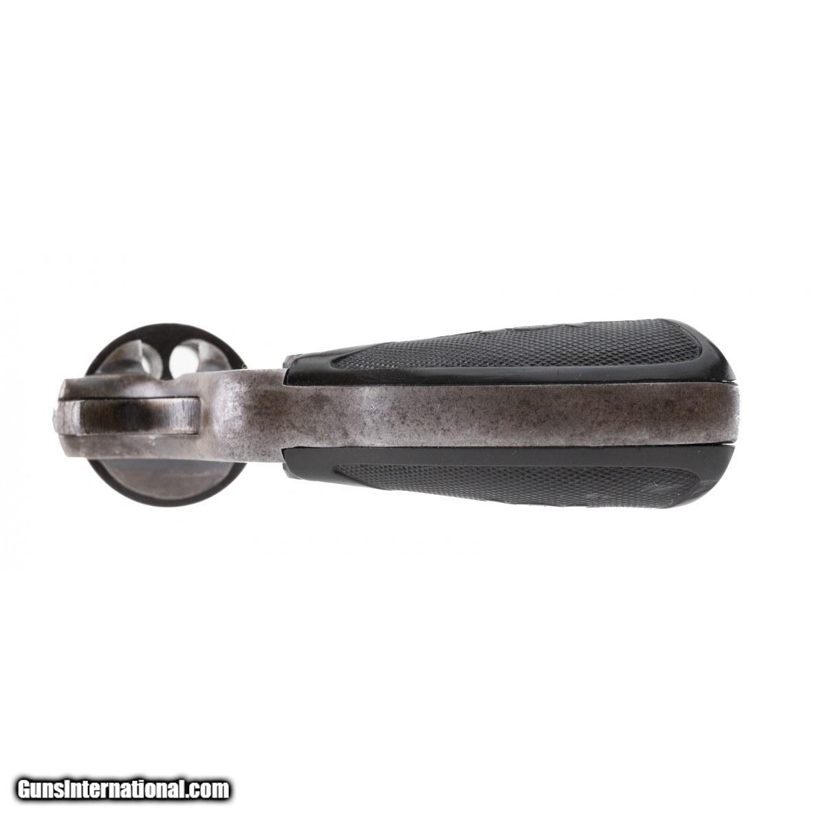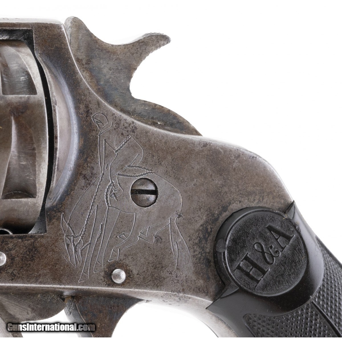 Manufactured in the 1890's. Barrel is 6"". Metal has a brown and gray patina. Bore is excellent. Action works properly. Grips are very good, no chips or cracks. Good overall condition. Left side of frame has an engraved scene.